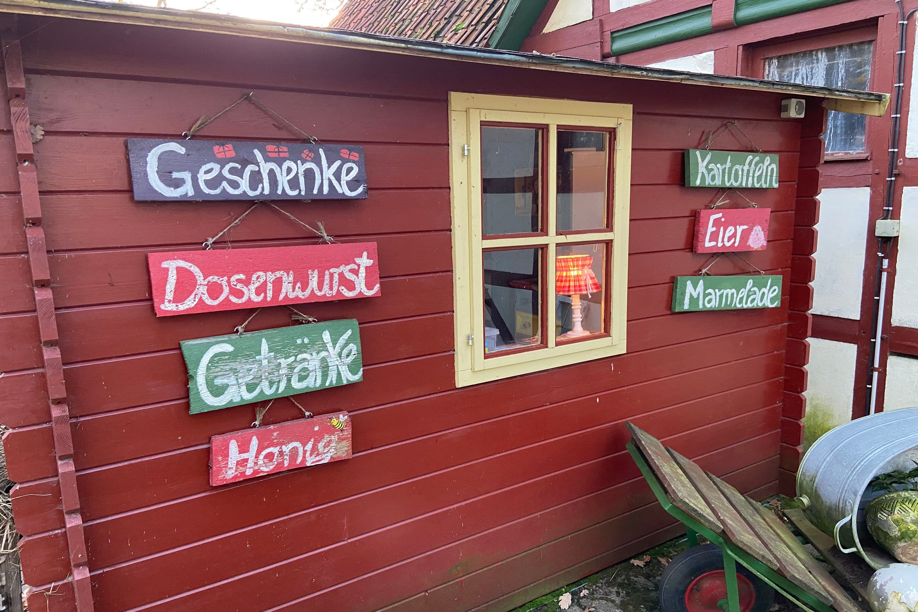 einen kleinen Selbstbedienungsladen zu eröffnen, in dem Heidegäste, die z.B. auf dem Heidschnucken Wanderweg bei uns vorbeikommen oder unsere Feriengäste sich möglichst mit regionalen Produkten versorgen können.