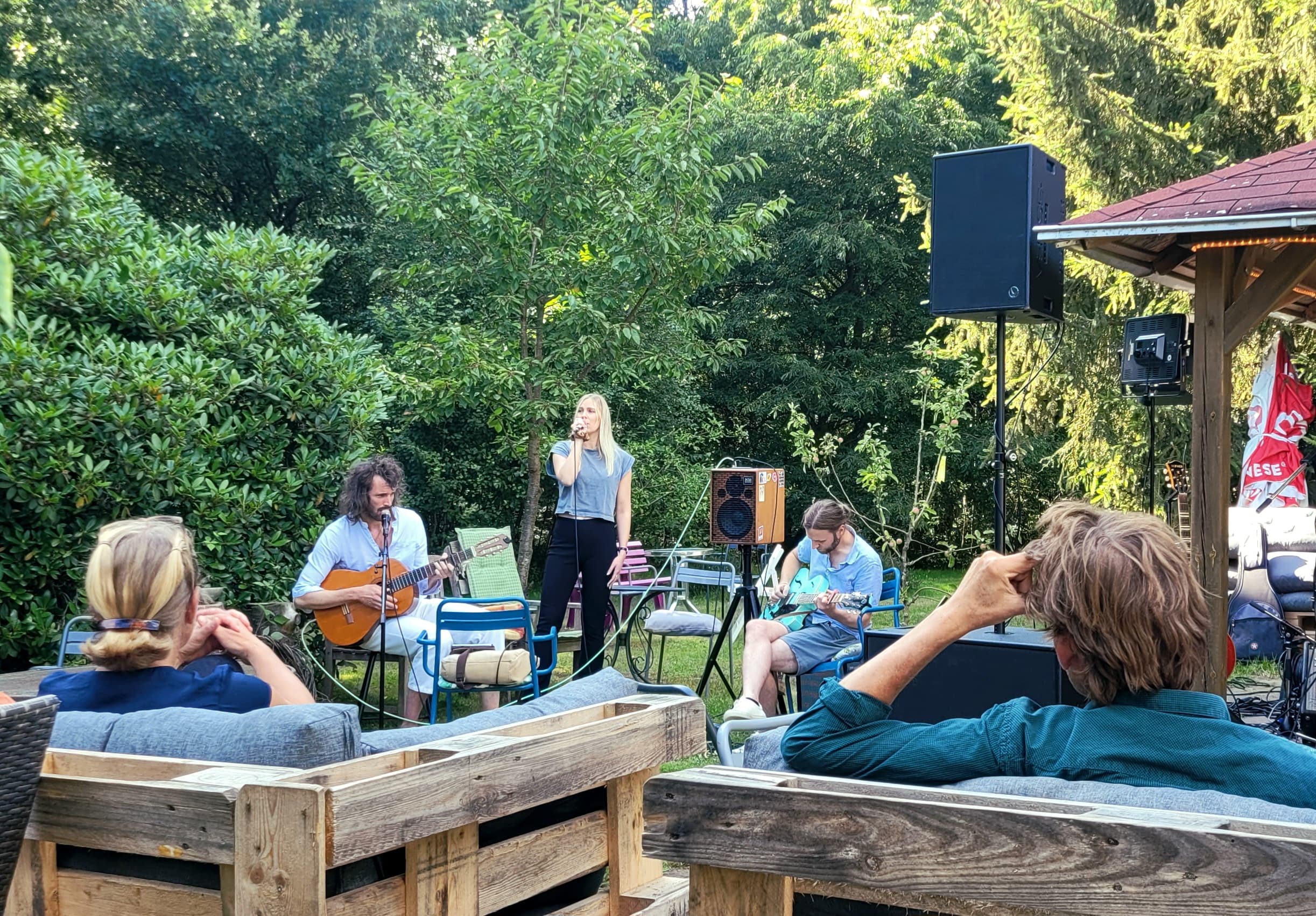 Für den reibungslosen und einfachen Ablauf bauen wir gerade unseren Tresen im Garten für den Selfservice
