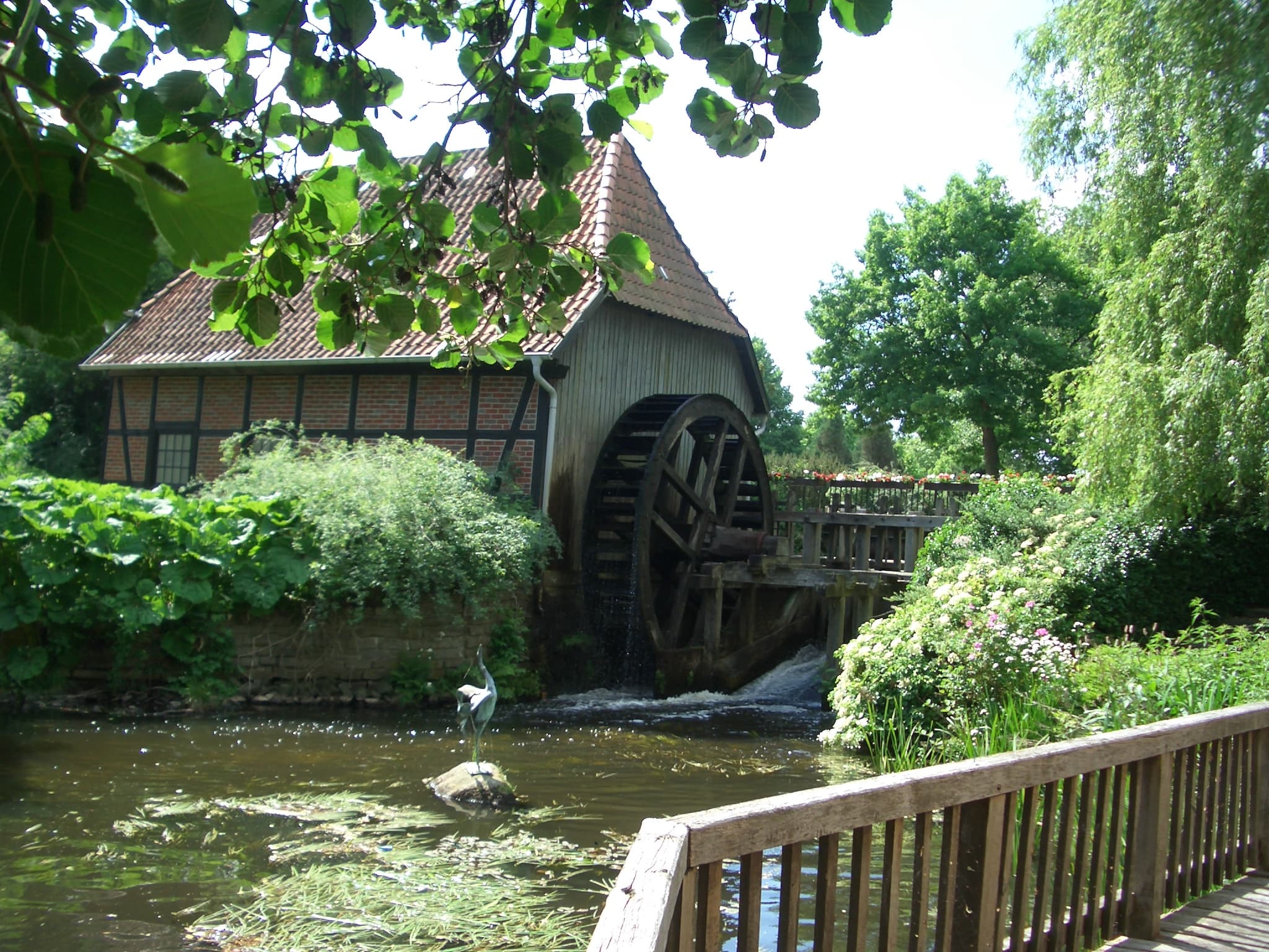 Zu der Anlage gehört außerdem noch die historische Wassermühle. Sie ist eine der drei in Niedersachsen existierenden Mühlen, die unterschlächtig angetrieben werden. Unsere Mühle stammt aus dem 16. Jahrhundert und ist noch voll funktionsfähig.