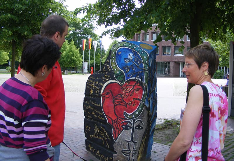 Für die Stadt Uelzen ist die Zusammenarbeit mit Dagmar Glemme ein besonderer Glücksfall. Die Malerin und Bildhauerin ist in Uelzen zur Schule gegangen. Durch private Verbindungen kam sie wieder in Kontakt mit ihrer früheren Heimatstadt, der sie den "Weg der Steine" zum Geschenk machte.