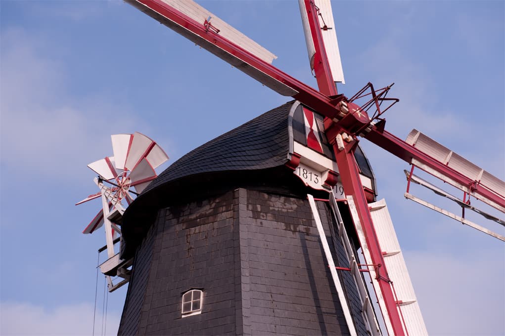 Heute treibt das neue Flügelwerk einen Schrotgang an, ein 20 KW - Generator verwandelt die Windenergie in elektrischen Strom, der für den Antrieb der E-Motoren der übrigen Mahlwerke benutzt wird. Von besonderem technischen Interesse sind die Flügel der Mühle. Die sogenannten Ten-Have-Flügel mit Fokwieken und Remklappen sind eine holländische Variante der bekannten Ventikantenflügel, die der deutsche Fliegermajor Bilau in den 20er Jahren erfunden hat. Die technische Reife dieser Flügelkonzeption verleiht der Bardowicker Windmühle eine hohe Windausbeute und eine sichere Flügelsteuerung. Die drehenden Flügel der alten Mühle mit den wuchtigen Türmen des Bardowicker Domes im Hintergrund bilden von der Bundesstraße 4 aus gesehen einen unvergleichlichen Anblick.