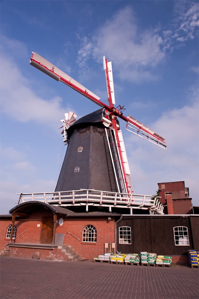Ein grünes Warenhaus mit einem Naturkostladen sind das zweite wirtschaftliche Standbein des Betriebes. Nachdem die Mühle seit den 1950er Jahren flügellos und mit einem Spitzdach versehen war, konnte sie 1994/95 mit Unterstützung durch den örtlichen Windmühlenverein in einer umfassenden Restaurierung ihr altes Erscheinungsbild wiedererhalten.