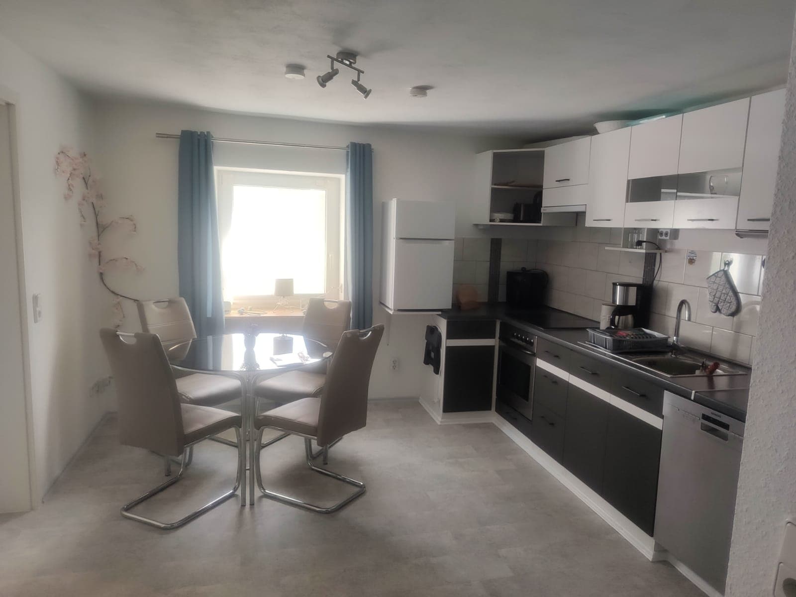 Wir haben eine voll ausgestattete Küche mit Herd, Wasserkocher, Kaffeemaschine, Toaster, Kühlschrank mit Gefrierfach, Spühlmaschine