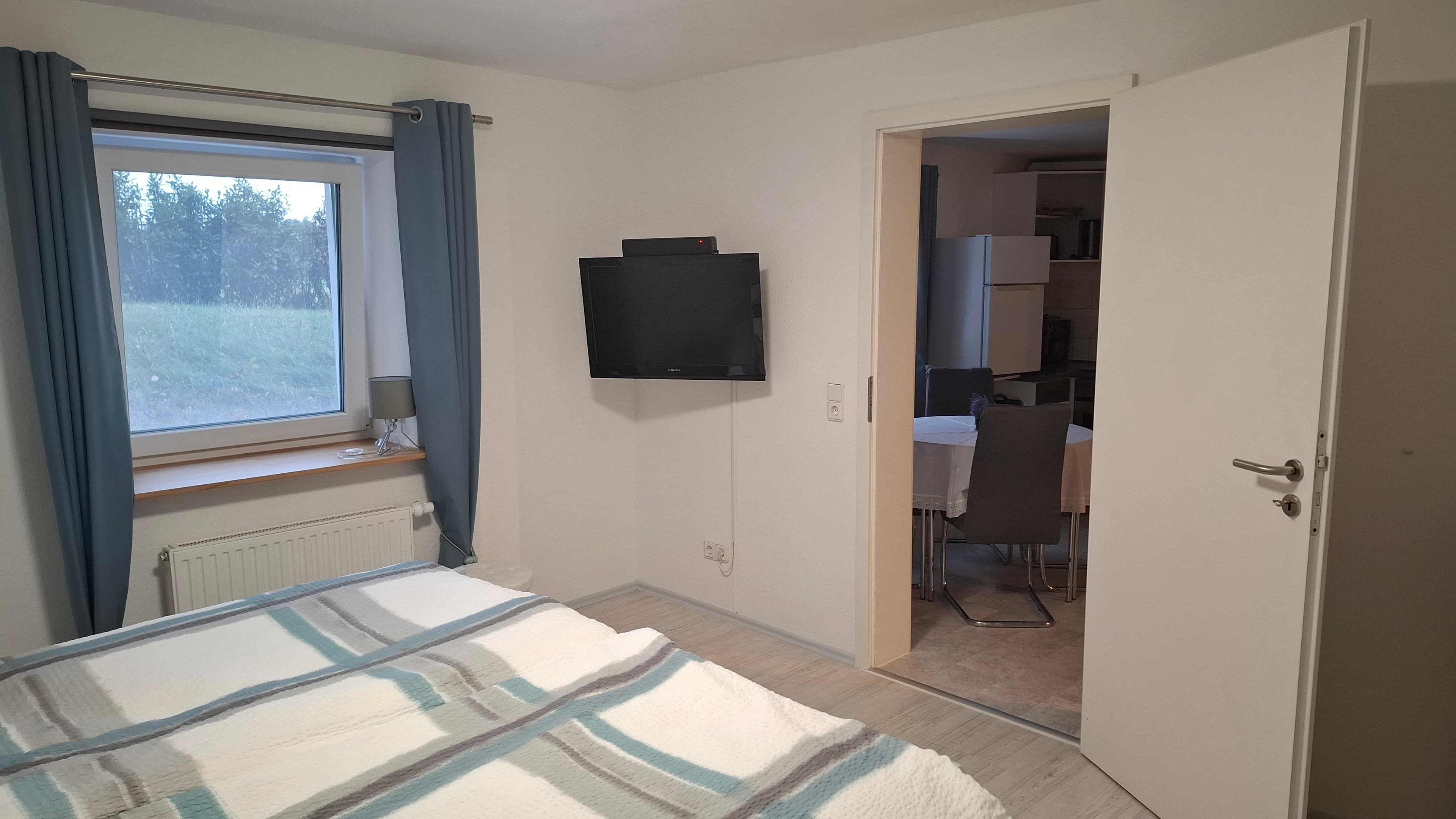 Das Schlafzimmer ist mit einem Doppelbett und einem Fernseher ausgestattet. Wenn es gewünscht ist kann ein Zustellbett dazu gestellt werden.