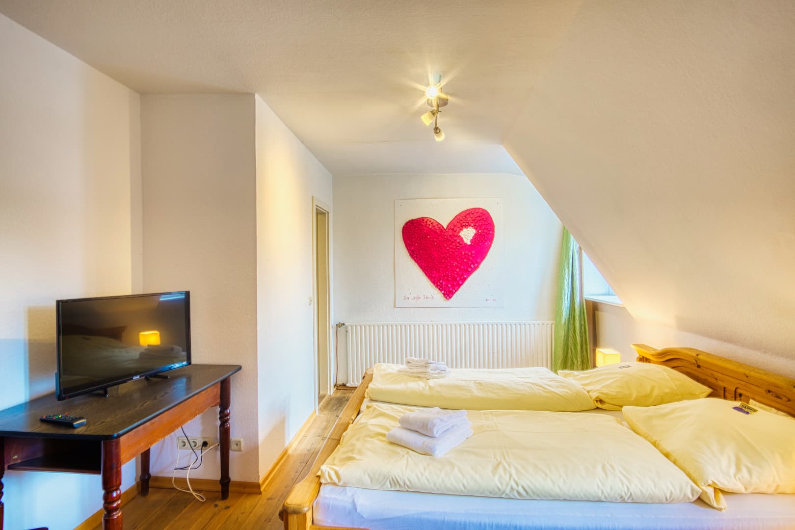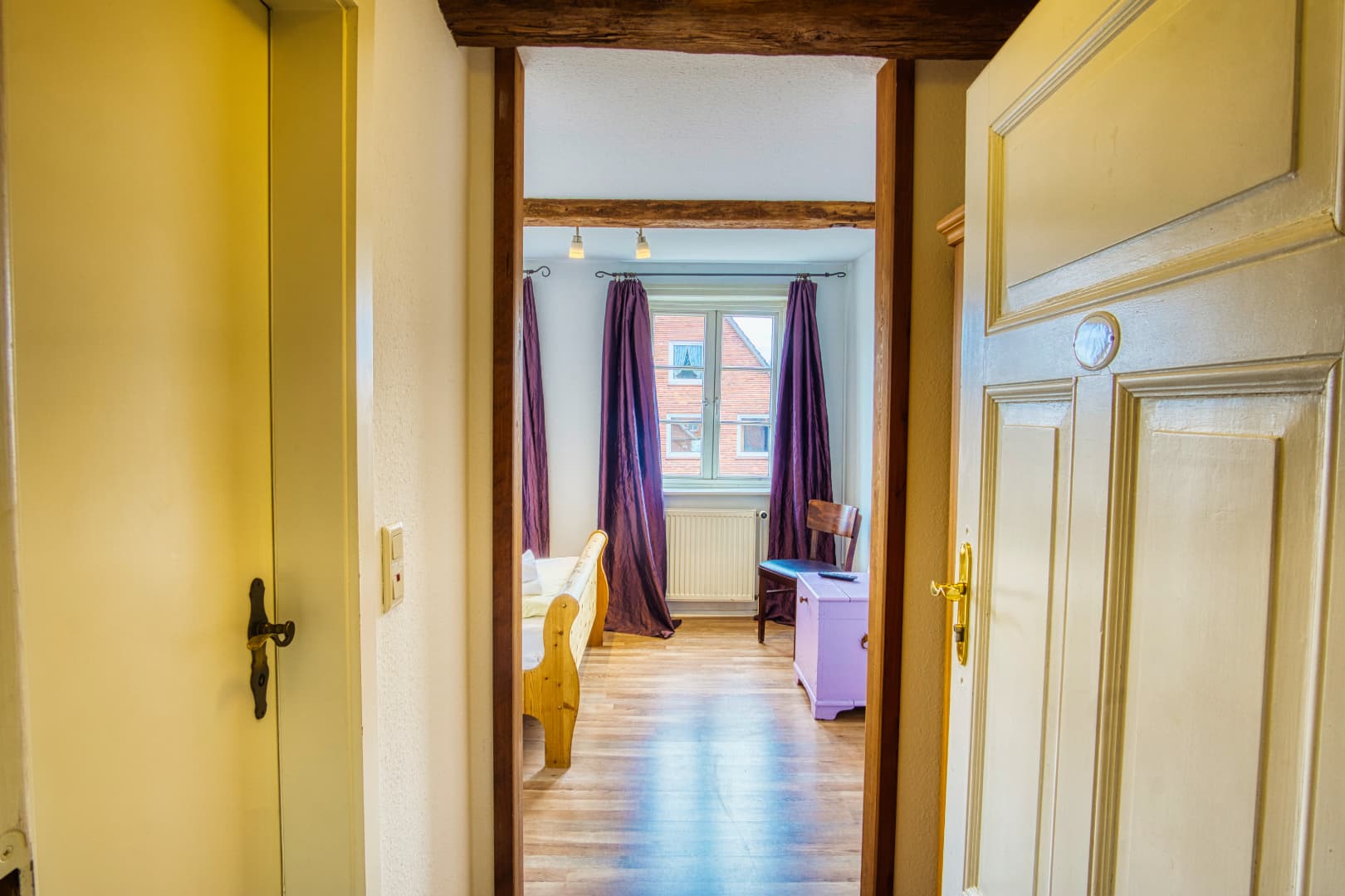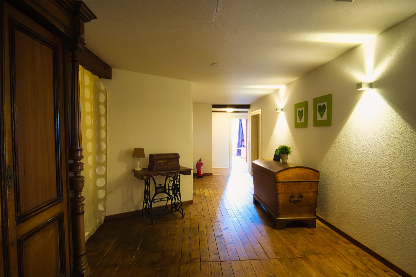 Die Zimmer des Hauses sind rustikal und gemütlich eingerichtet, mit alten Holzdielen und einem charmanten Blick in die Geschichte des Hauses. Wer hier übernachtet, spürt die besondere Atmosphäre eines Ortes, der viel erlebt hat und gleichzeitig voller Leben steckt.