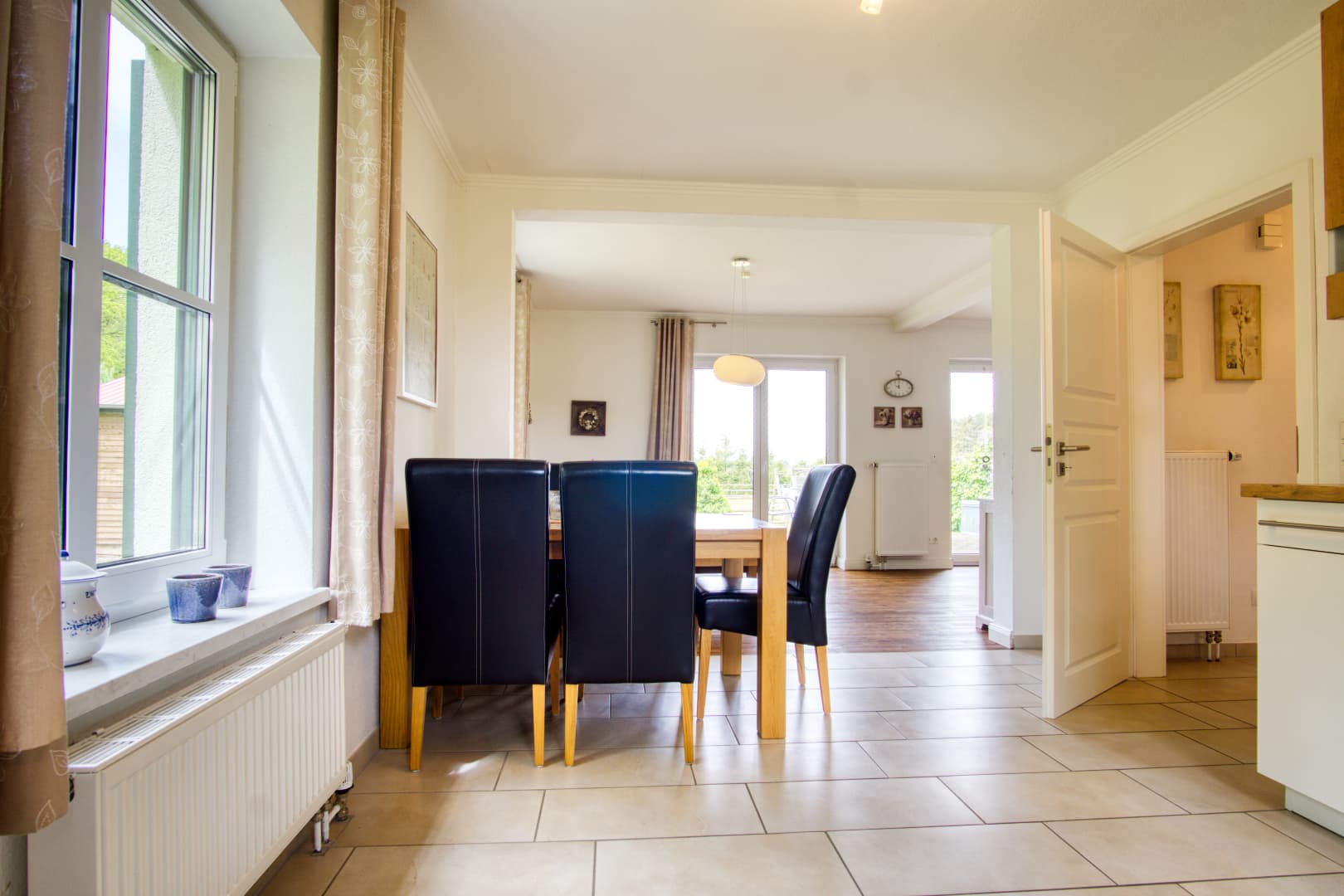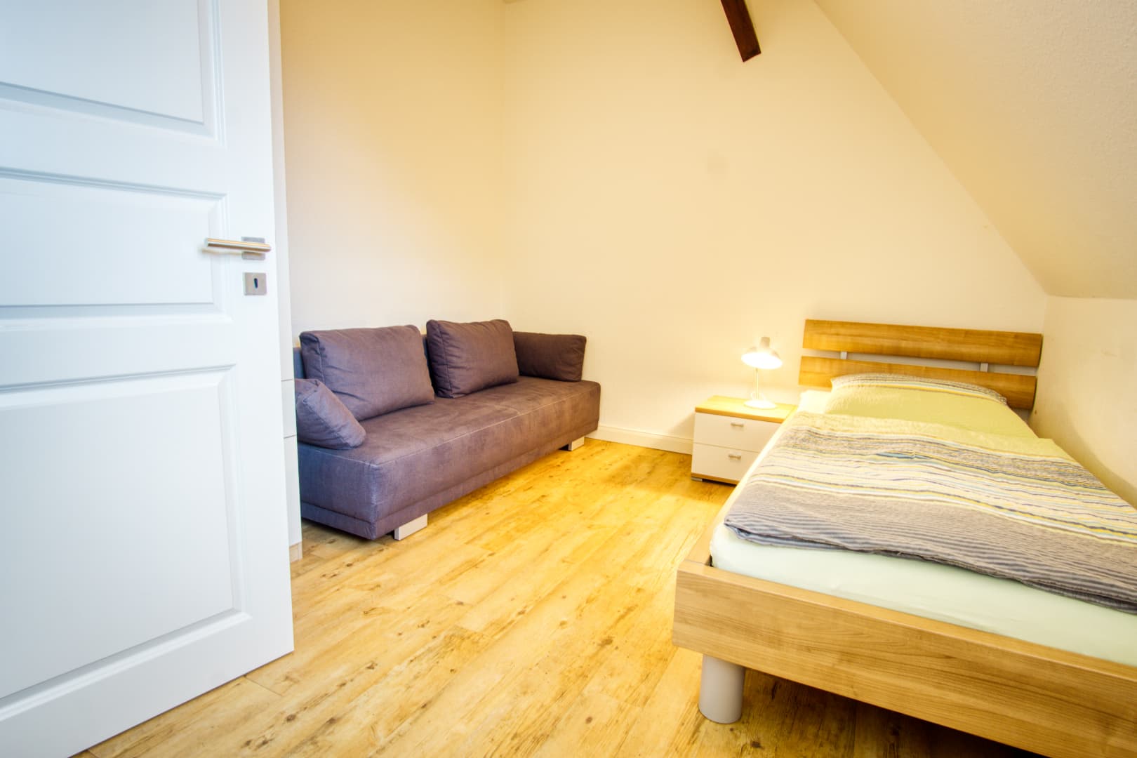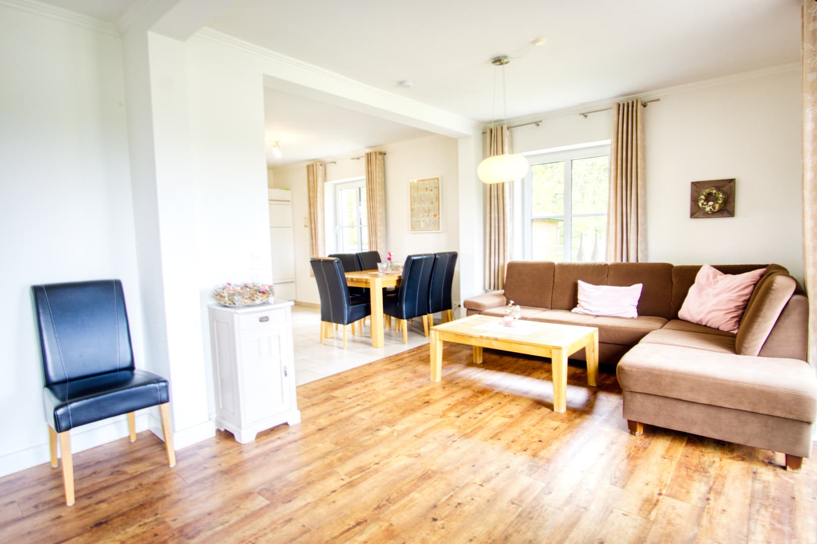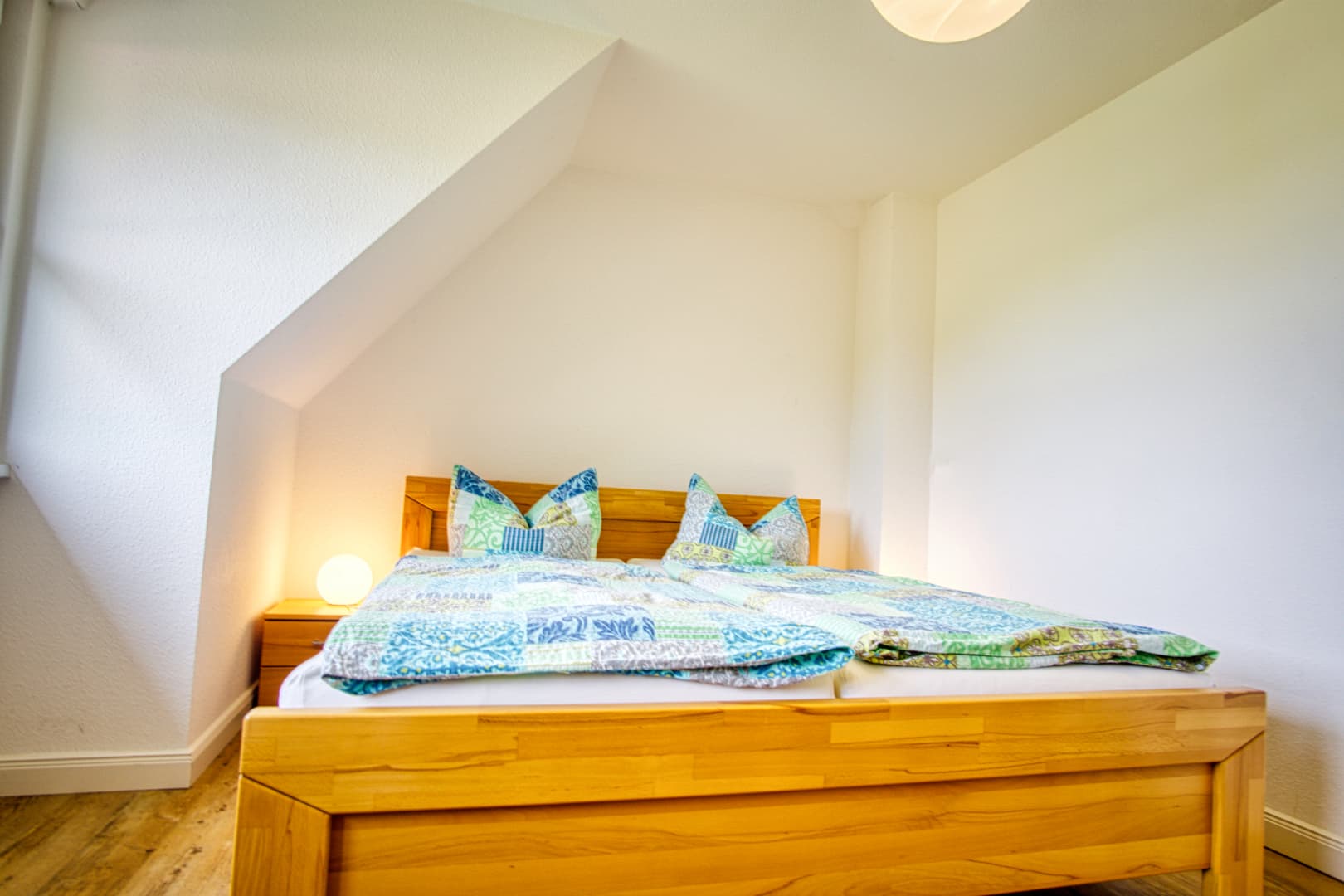 Wenn sich die Heide unter Frost legt und der Tag früher endet, bietet das Ferienhaus Schaepe wohltuende Ruhe und gemütlichen Wohnkomfort. Im Obergeschoss laden drei Schlafzimmer zum Entspannen ein – ideal auch für längere Aufenthalte zu zweit oder mit Familie. Das moderne Bad mit Wanne, Dusche und Fön sowie die zusätzliche Dusche im Erdgeschoss sorgen für Komfort an kalten Tagen.