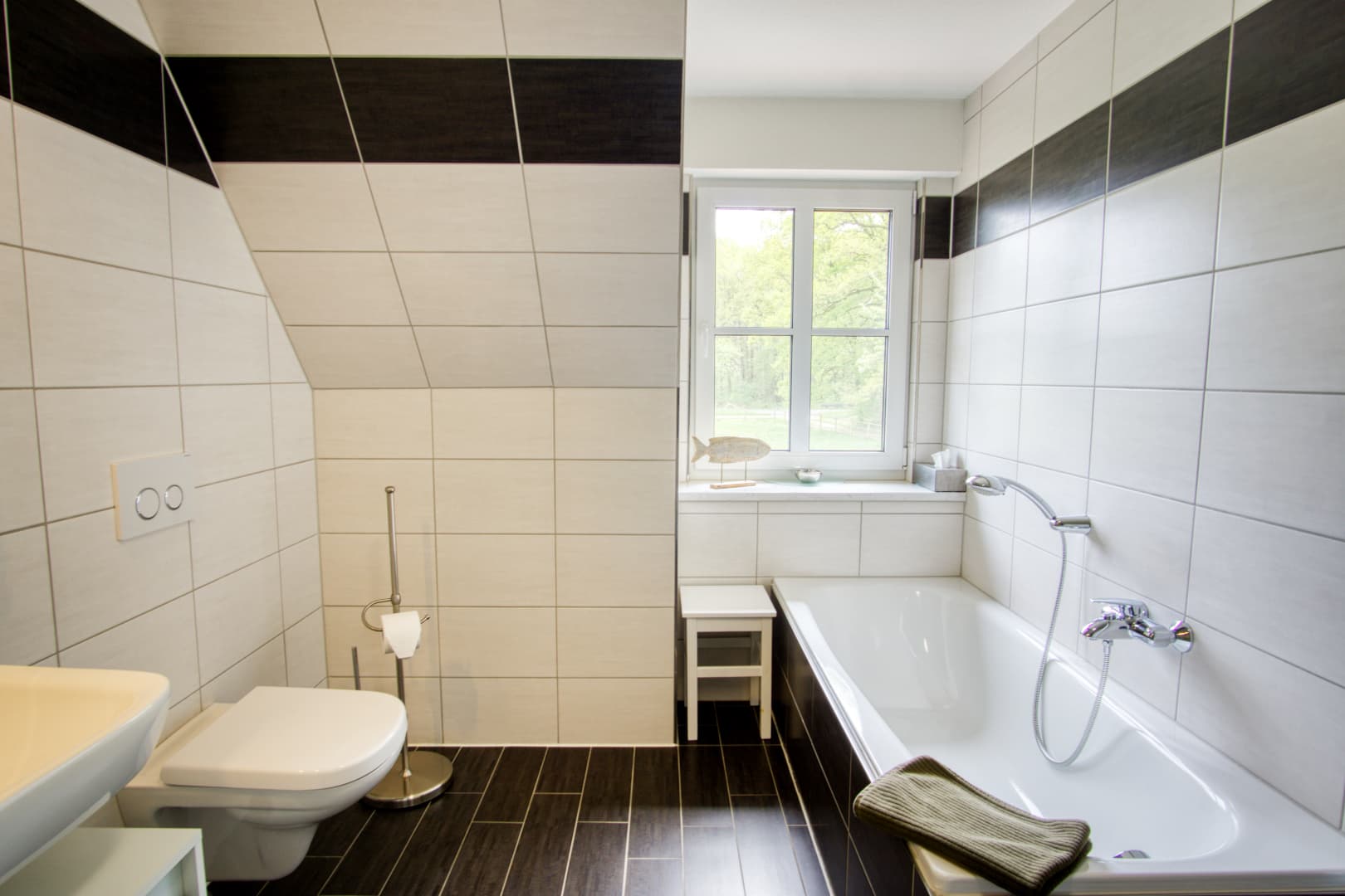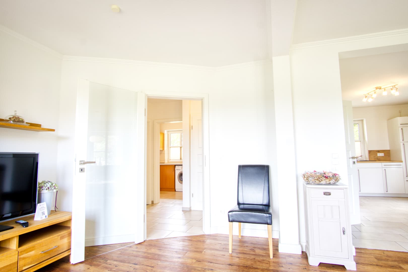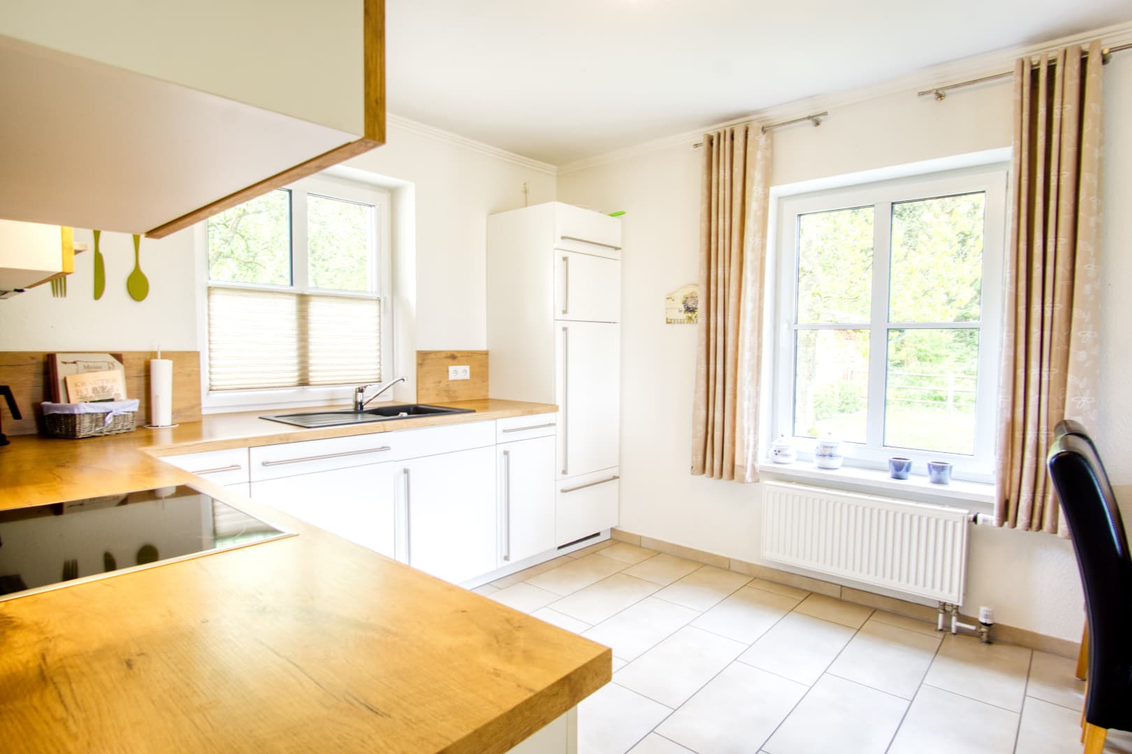Wenn sich die Heide unter Frost legt und der Tag früher endet, bietet das Ferienhaus Schaepe wohltuende Ruhe und gemütlichen Wohnkomfort. Im Obergeschoss laden drei Schlafzimmer zum Entspannen ein – ideal auch für längere Aufenthalte zu zweit oder mit Familie. Das moderne Bad mit Wanne, Dusche und Fön sowie die zusätzliche Dusche im Erdgeschoss sorgen für Komfort an kalten Tagen.
