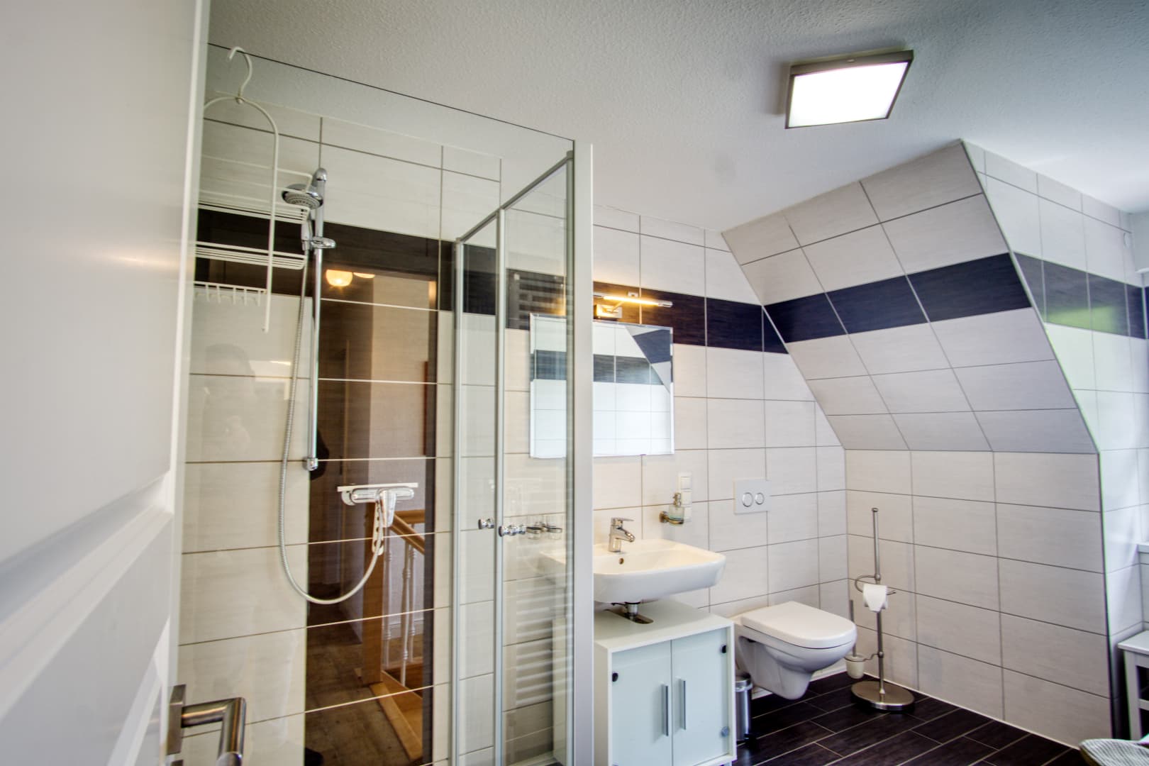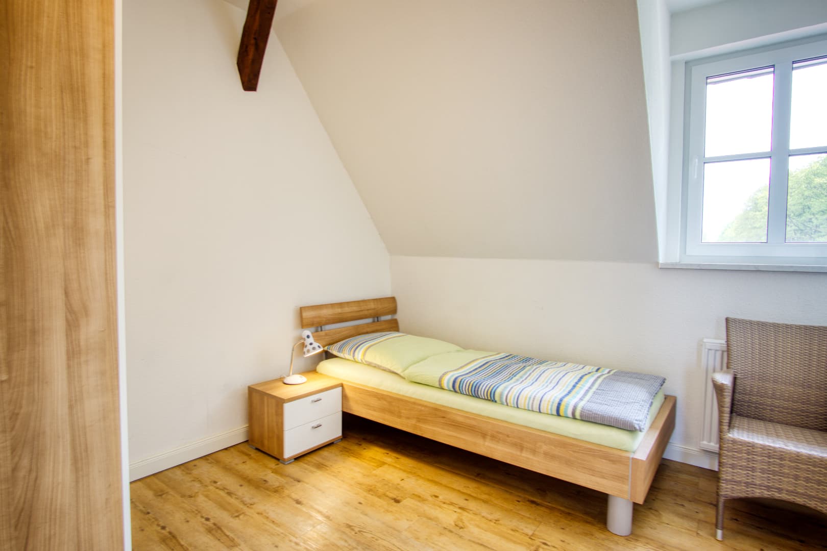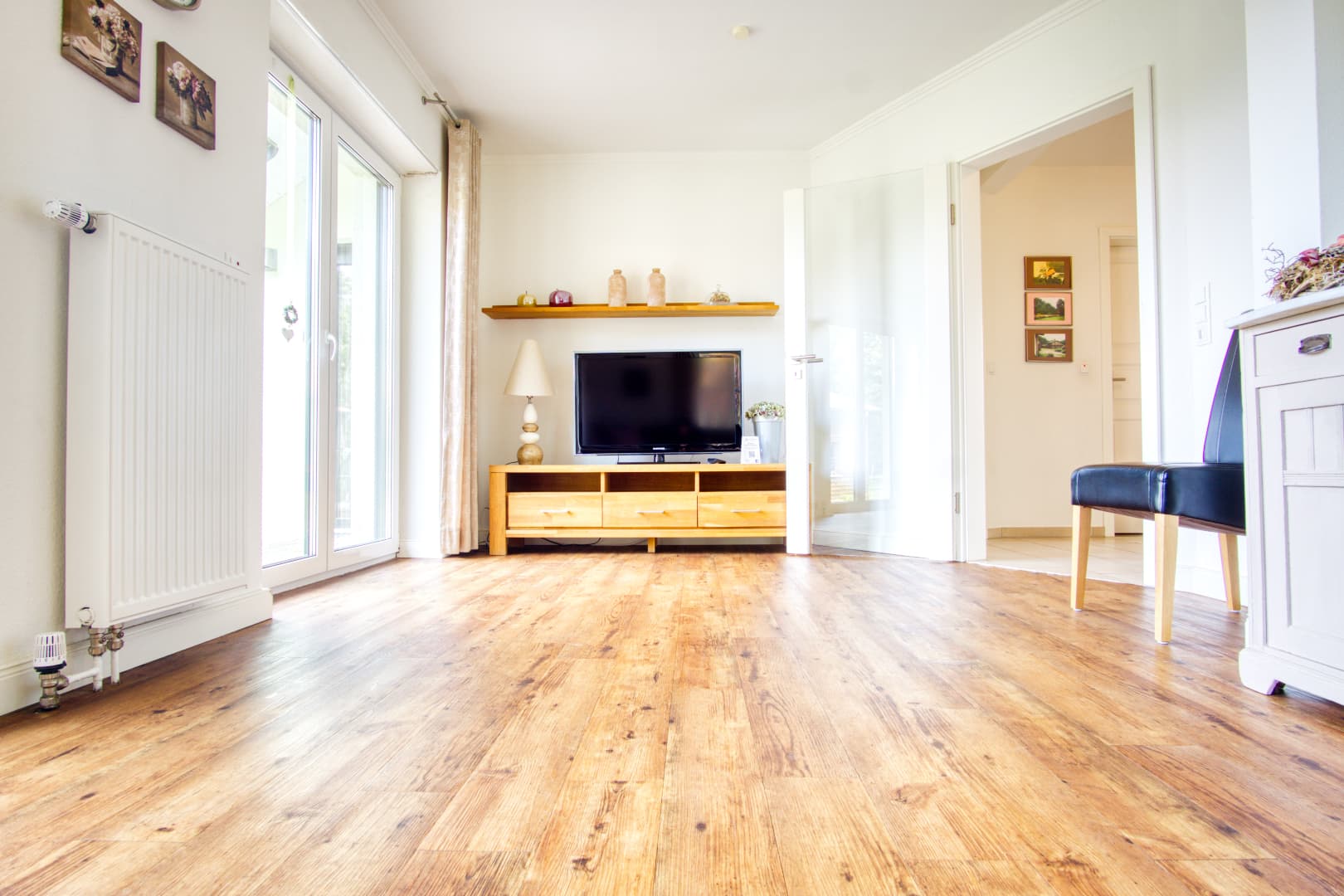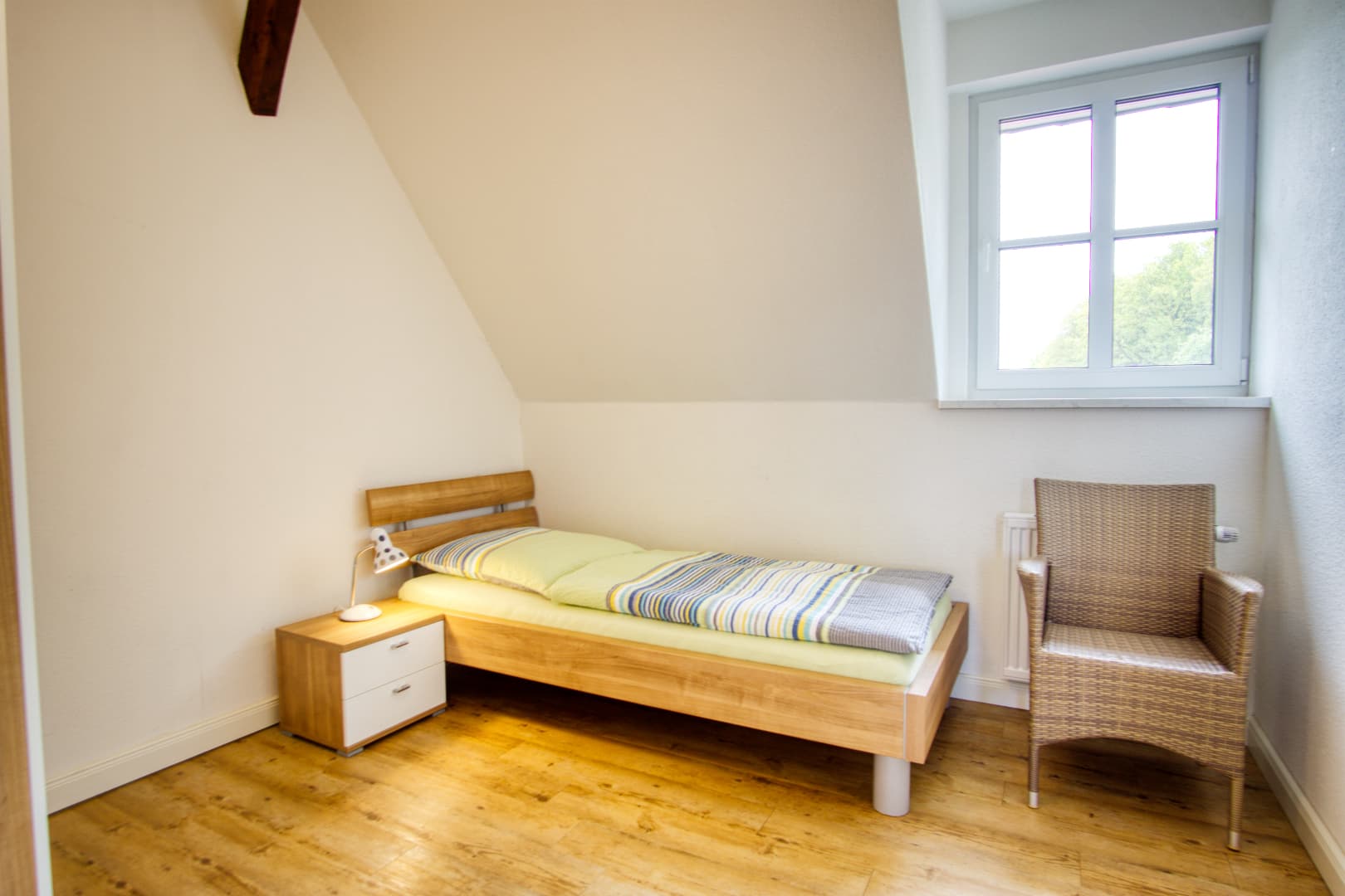 Wenn sich die Heide unter Frost legt und der Tag früher endet, bietet das Ferienhaus Schaepe wohltuende Ruhe und gemütlichen Wohnkomfort. Im Obergeschoss laden drei Schlafzimmer zum Entspannen ein – ideal auch für längere Aufenthalte zu zweit oder mit Familie. Das moderne Bad mit Wanne, Dusche und Fön sowie die zusätzliche Dusche im Erdgeschoss sorgen für Komfort an kalten Tagen.