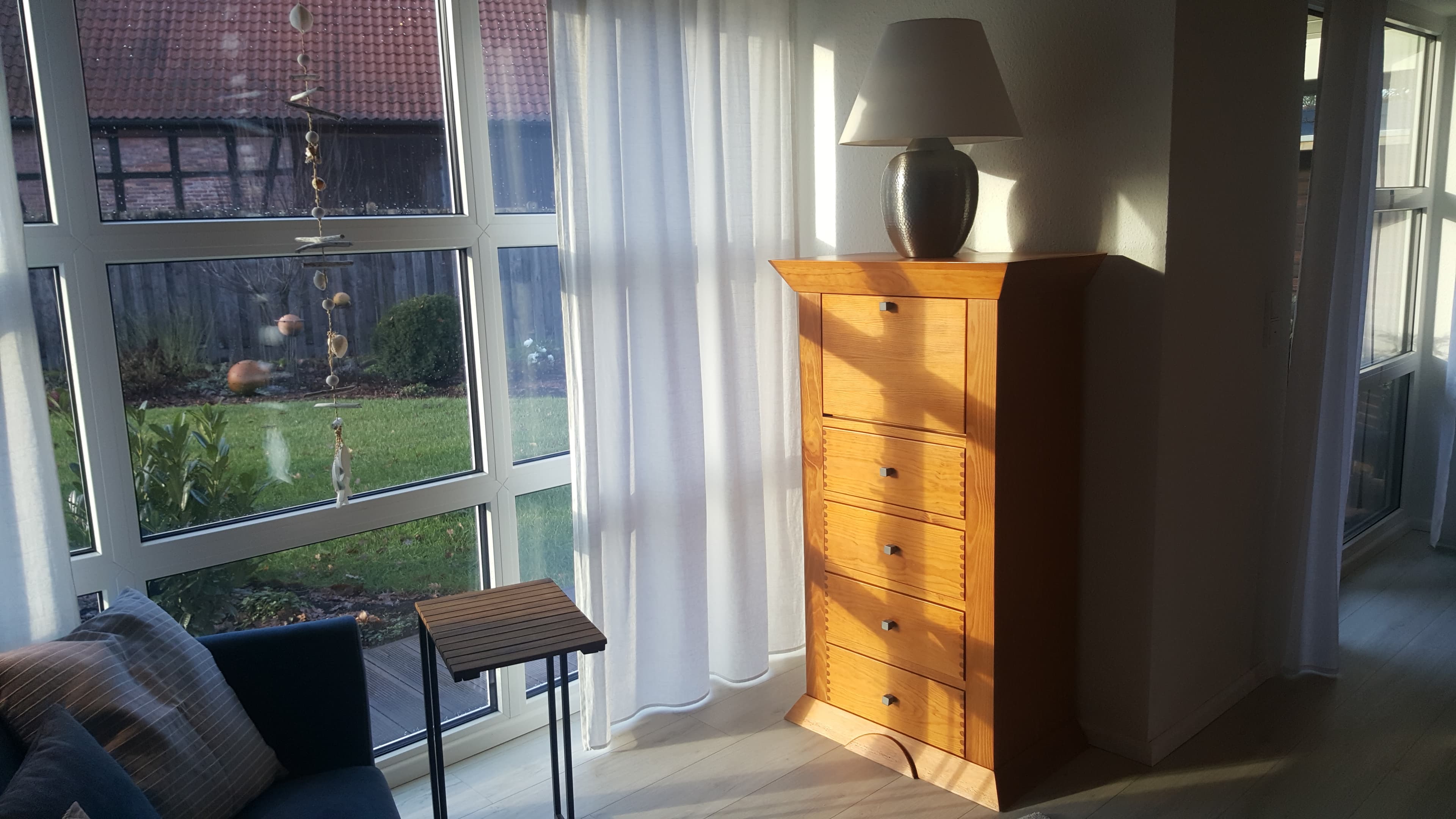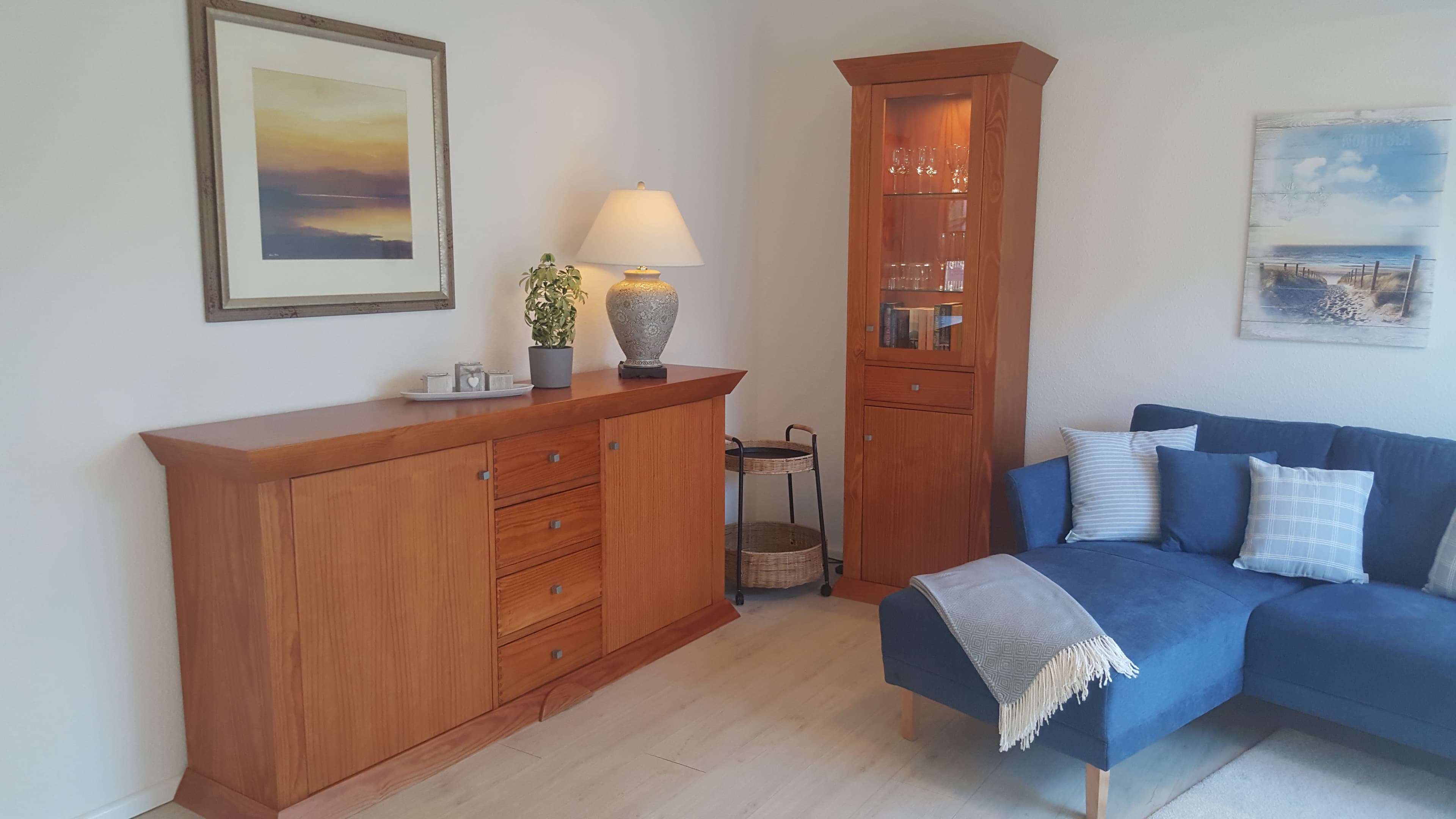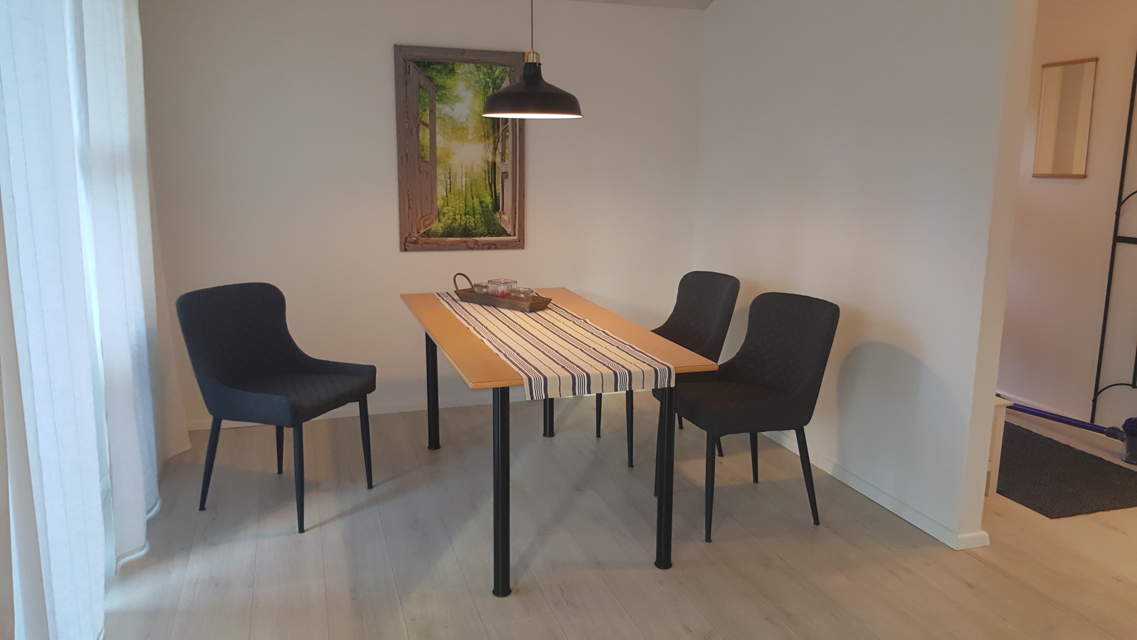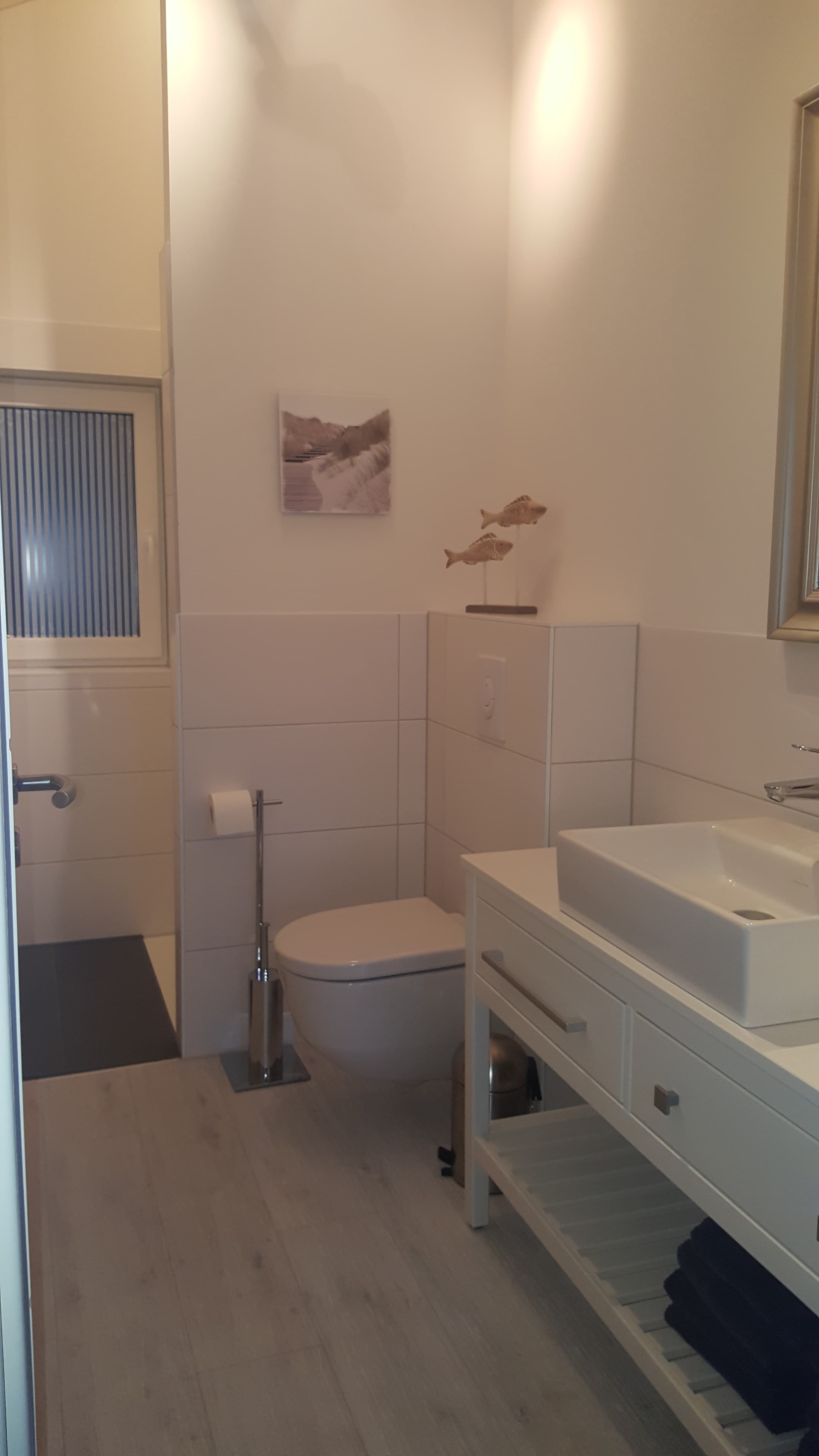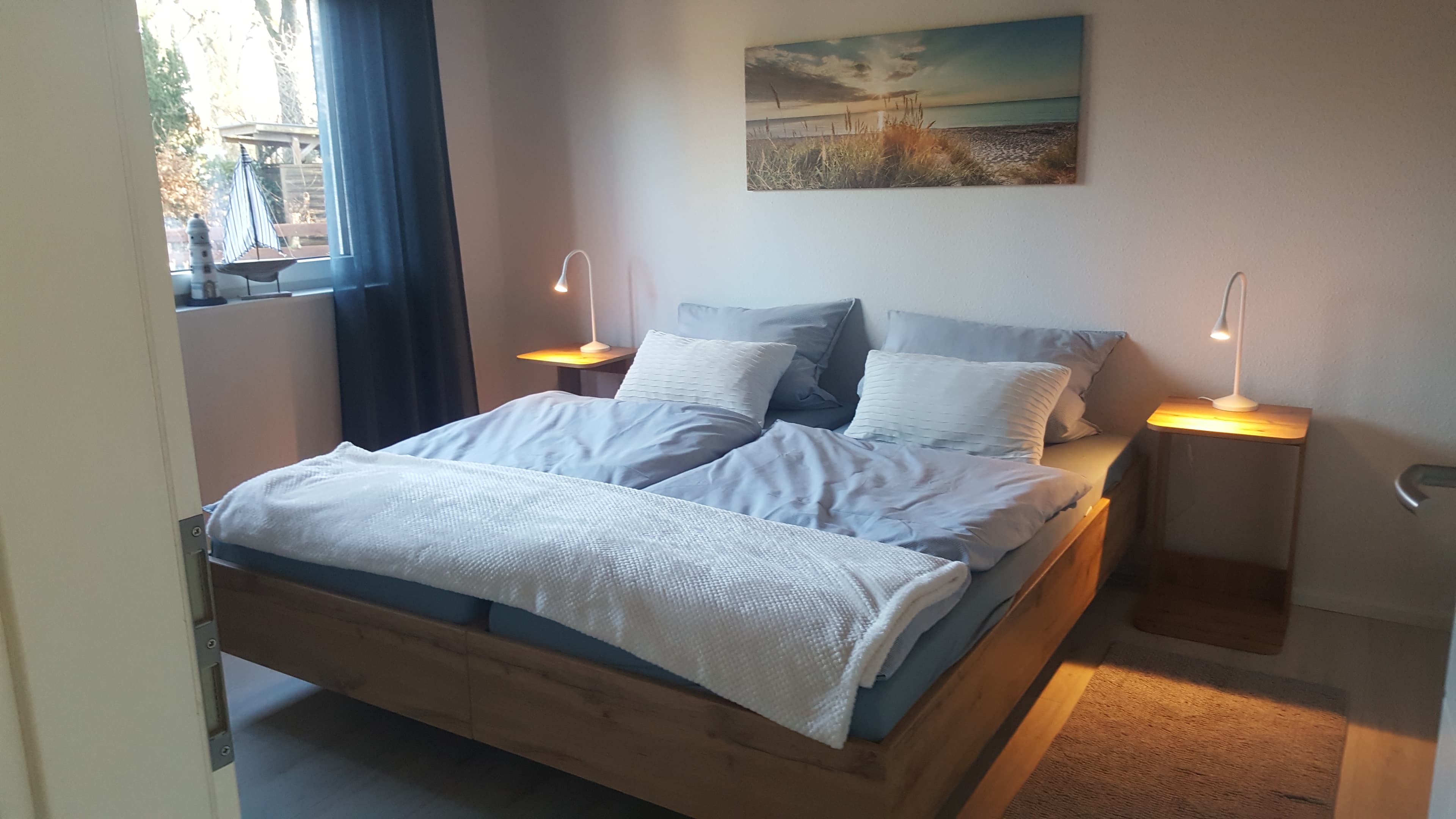 Das Haus hat einen offenen Wohnbereich , der sich über die Diele, den Wohn-Essbereich nebst Küche erstreckt. Zimmertüren haben das Schlafzimmer, das Bad mit Dusche und der HWR (mit Waschmaschine). TV und WLAN sind vorhanden.