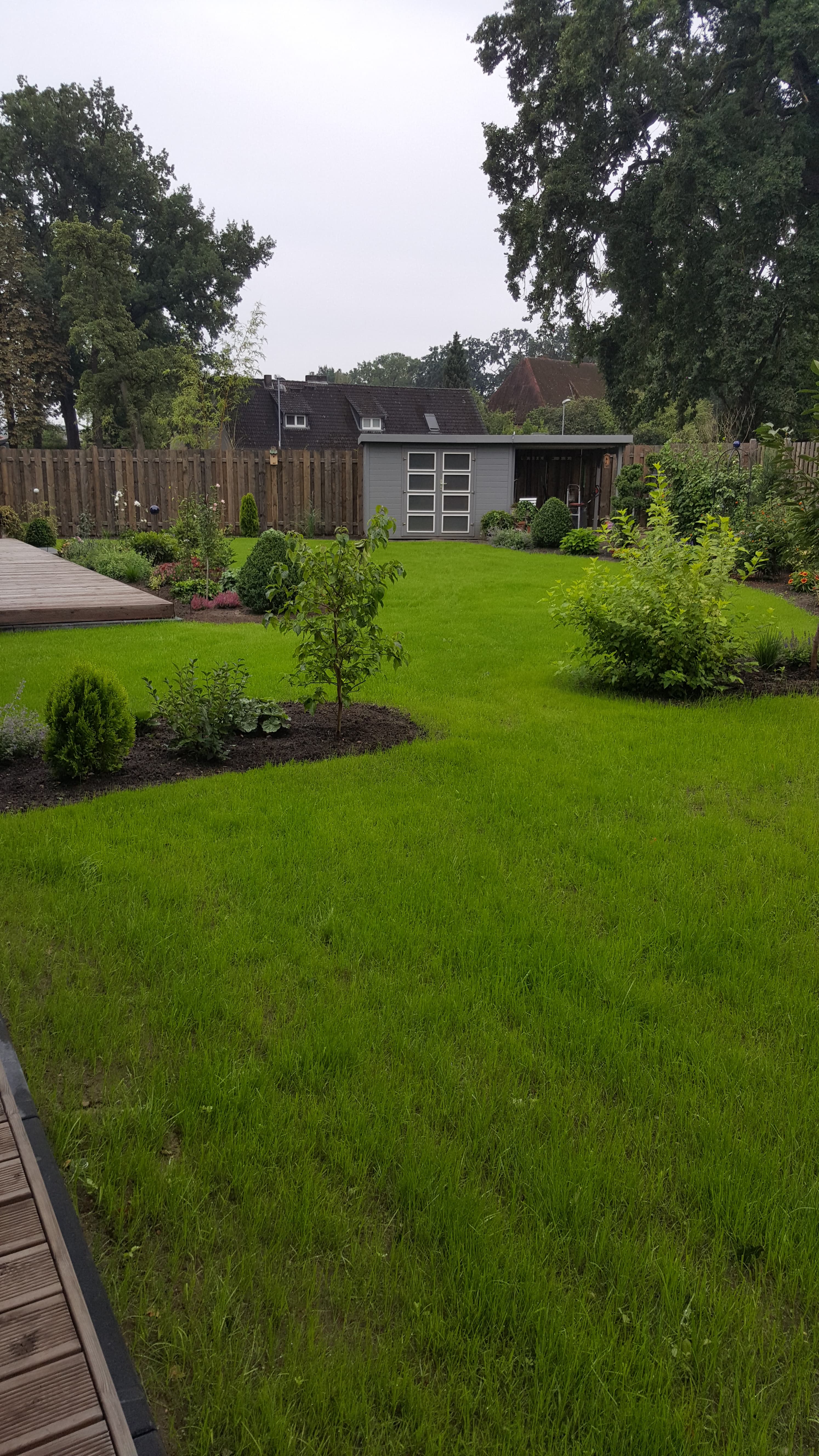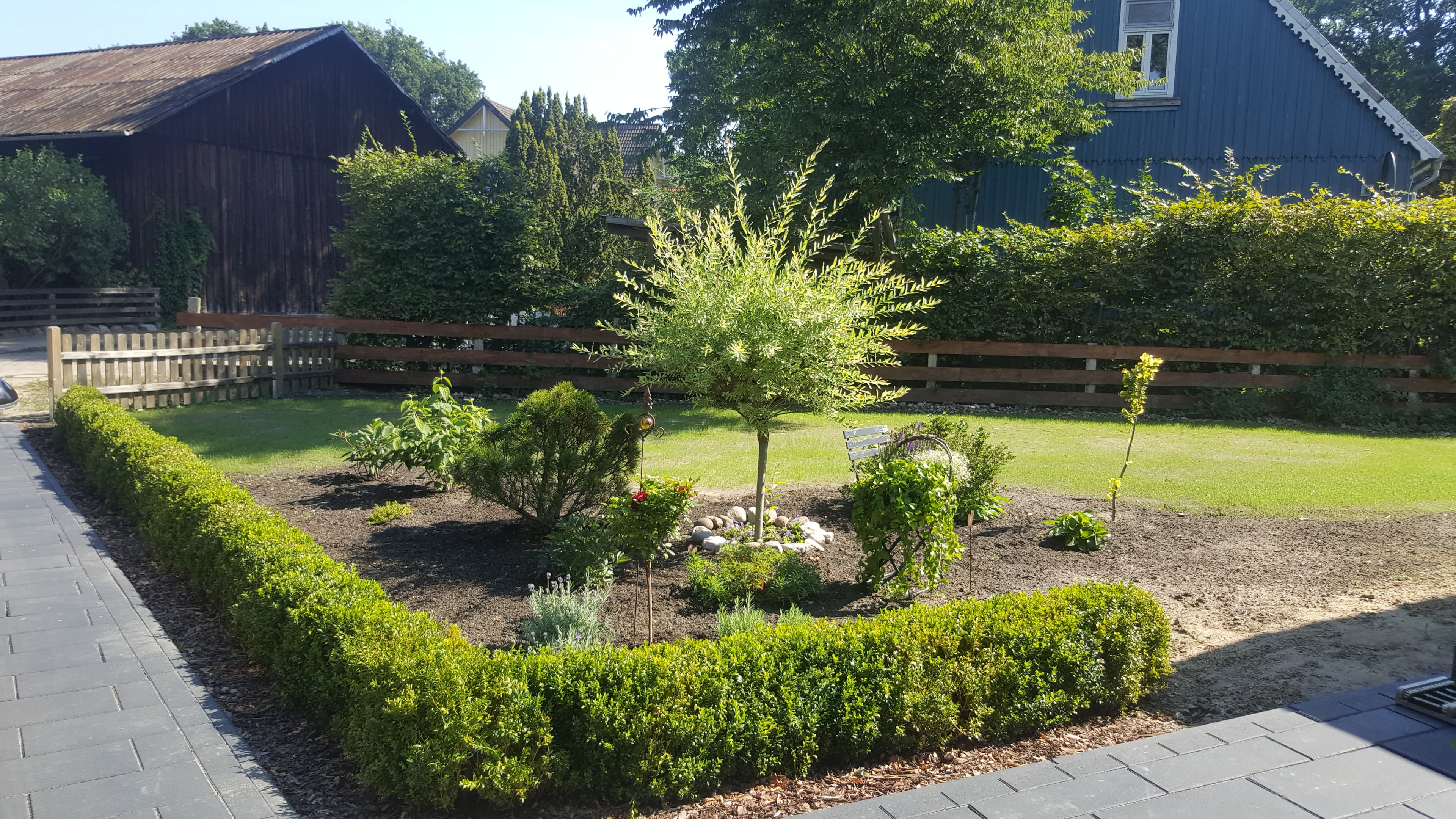 Im Eingangsbereich ist ein kleiner Vorgarten und zur Straße hin ein eigener PKW Parkplatz. Für mitgebrachte Fahrräder gibt es dort ein abschließbares Gartenhaus.
