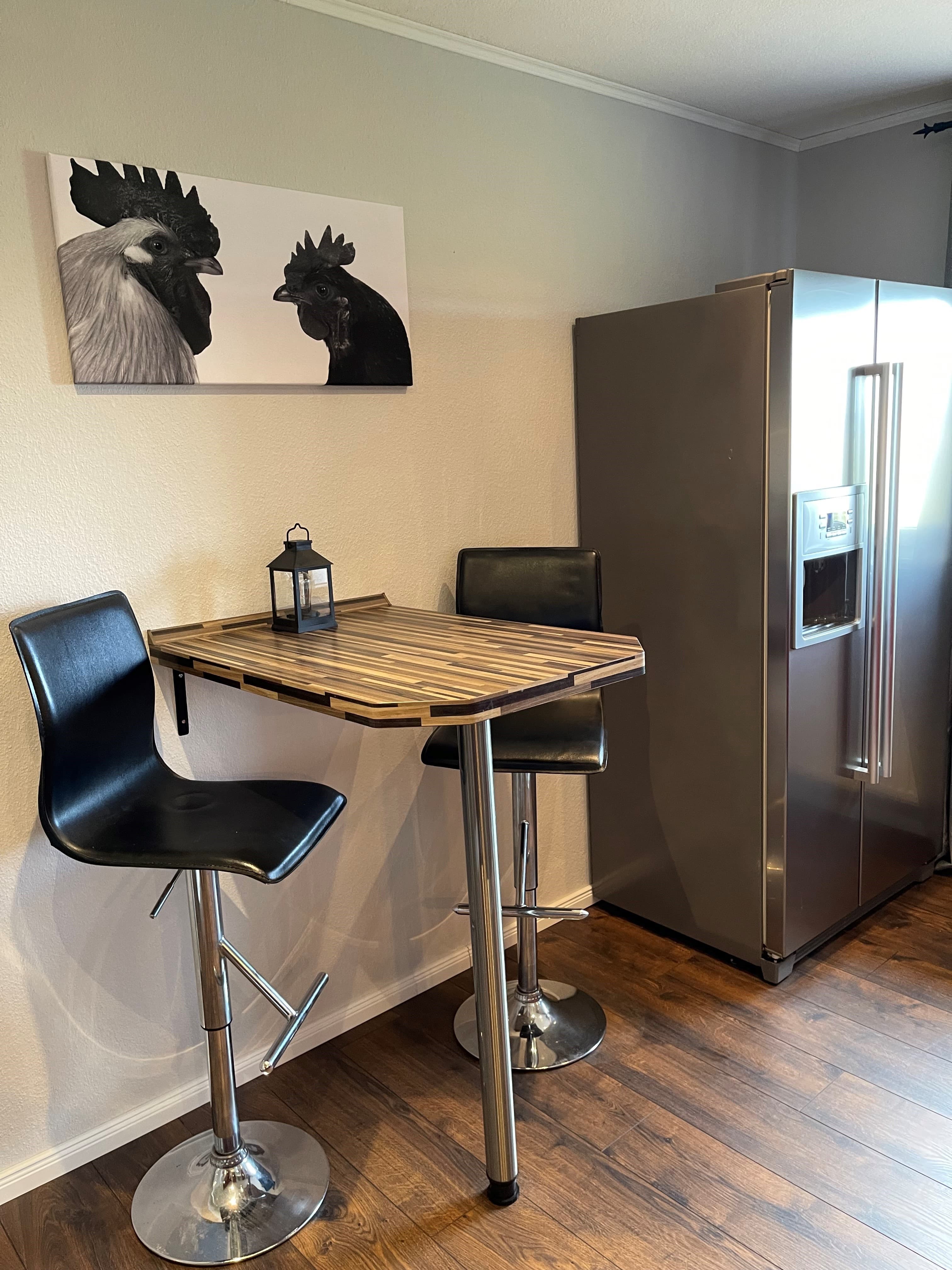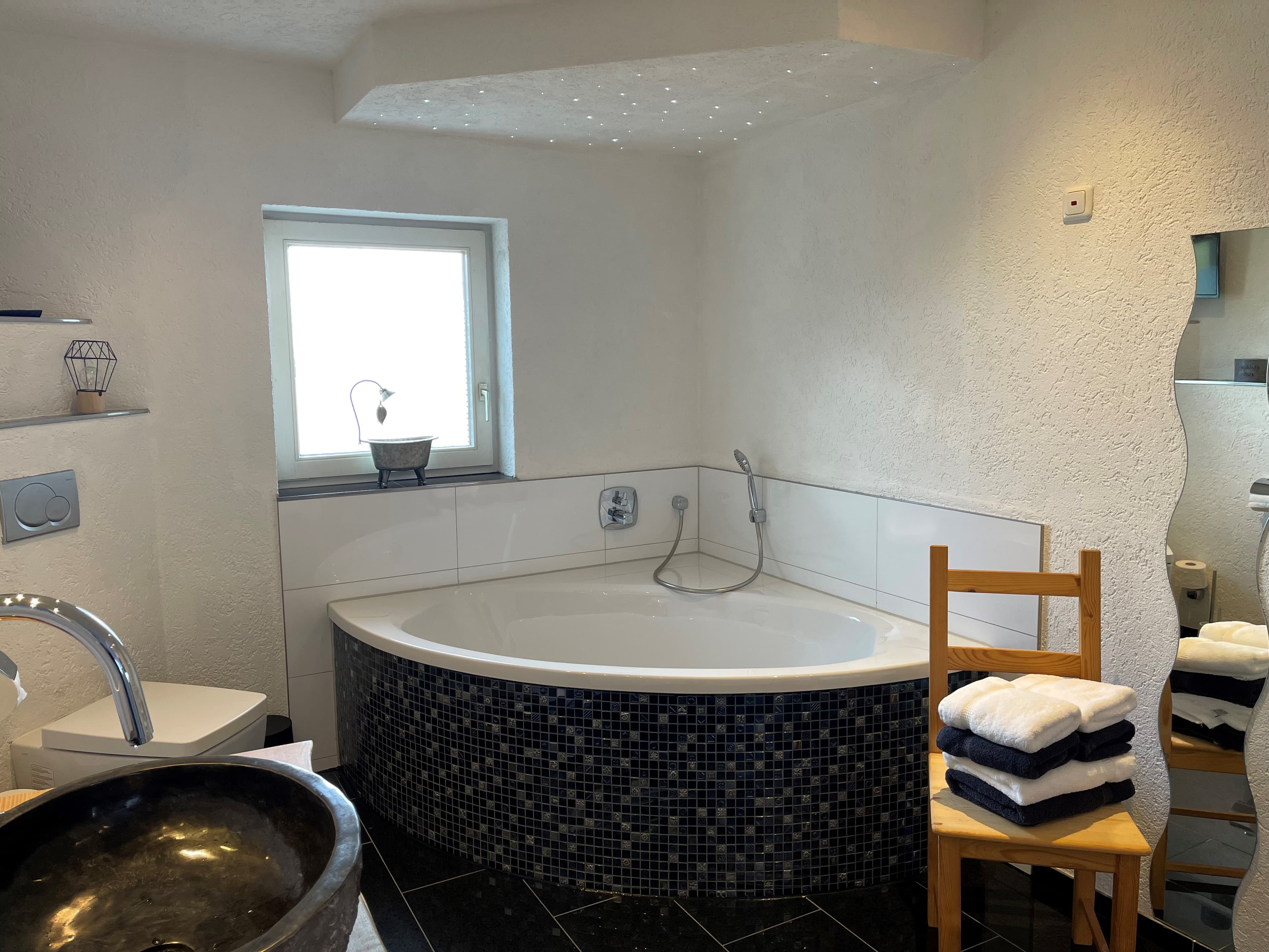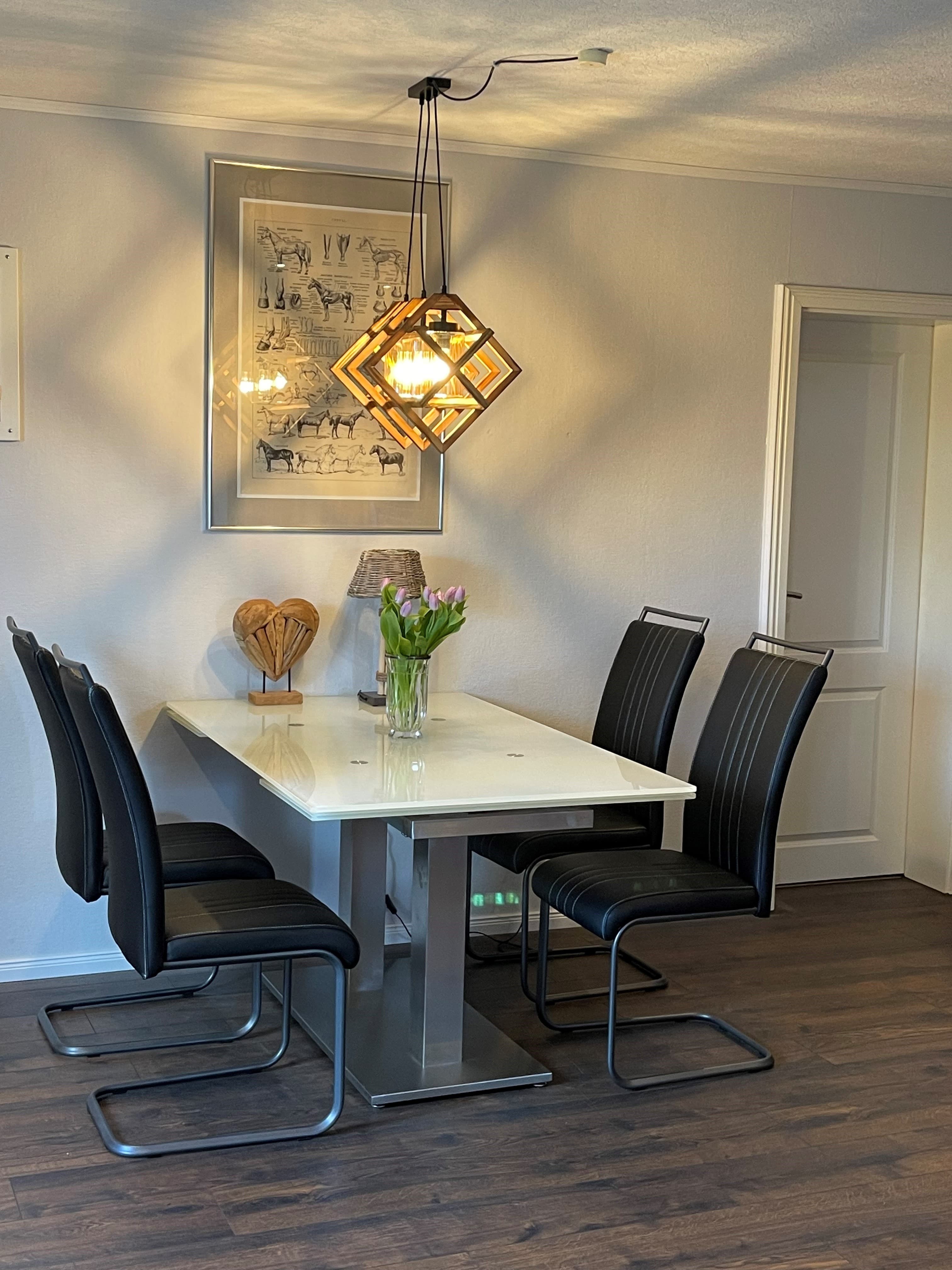 Komfortable Ferienwohnung, für 2 Persoen mit 5 Sternen klassifiziert. Ausgestattet ist sie komplett für 4 Personen, 1 DZ mit erhöhtem Boxspringbett und Ankleide, ein kombinierter Wohn-Schlafraum mit Schlafsofa, großzügiges Badezimmermit ebenerdiger Regendusche, Badewanne und TV, vollausgestattete Küche, großes Wohnzimmer, Klimaanlage. Gepflegte Hofanlage mit Gartenmöbeln im Freien, Grillmöglichkeit, einer rustikalen Blockhütte und Spielgeräten. Momentan haben wir 2 Kaninchen, verschiedene Hühner, eine Wachtelvoliere, 5 Pferde, eine Katze und einen Hund mit auf dem Hof. Wlan ist kostenlos inklusive.
