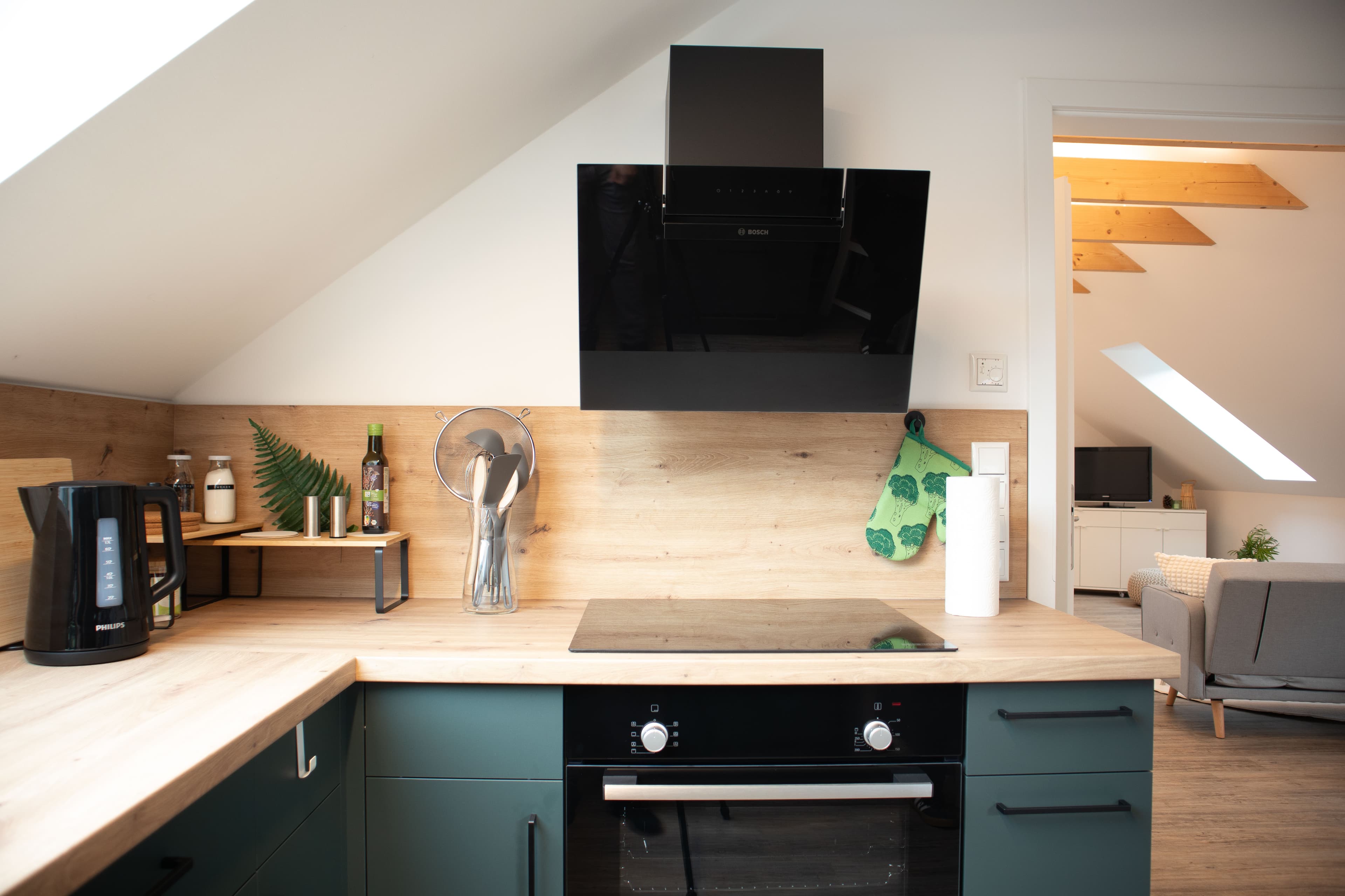 Das liebevoll eingerichtete Appartement für zwei Gäste lädt mit einem Doppelbett (180x200), Flachbild-TV, gratis WLan sowie einer gemütlichen Sofasitzgruppe zur Erholung ein. Das Duschbad ist ebenfalls neu und die hochmoderne Küche vollausgestattet mit Geschirrspülmaschine und ansprechendem Essplatz.