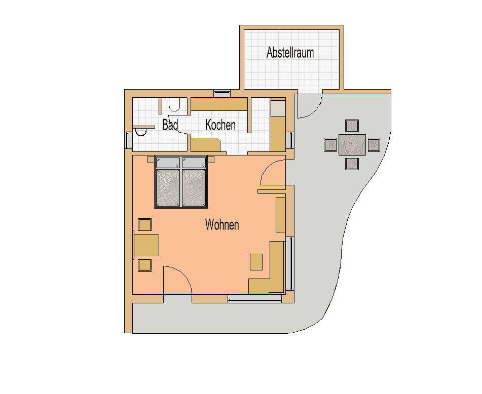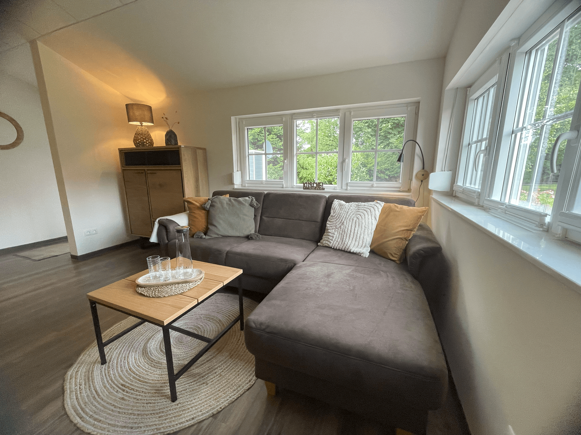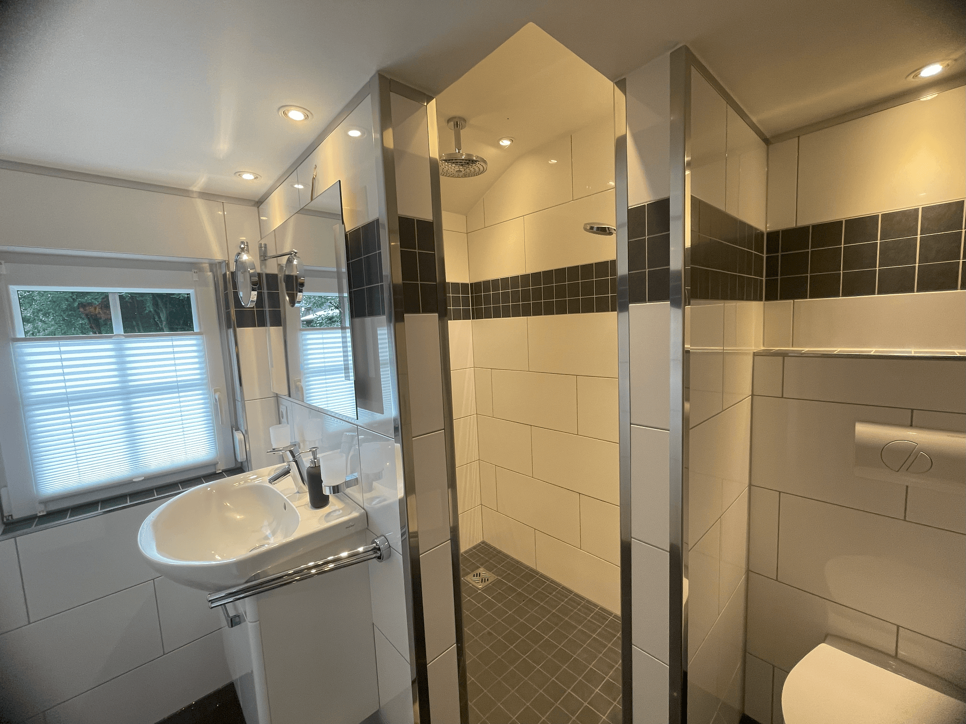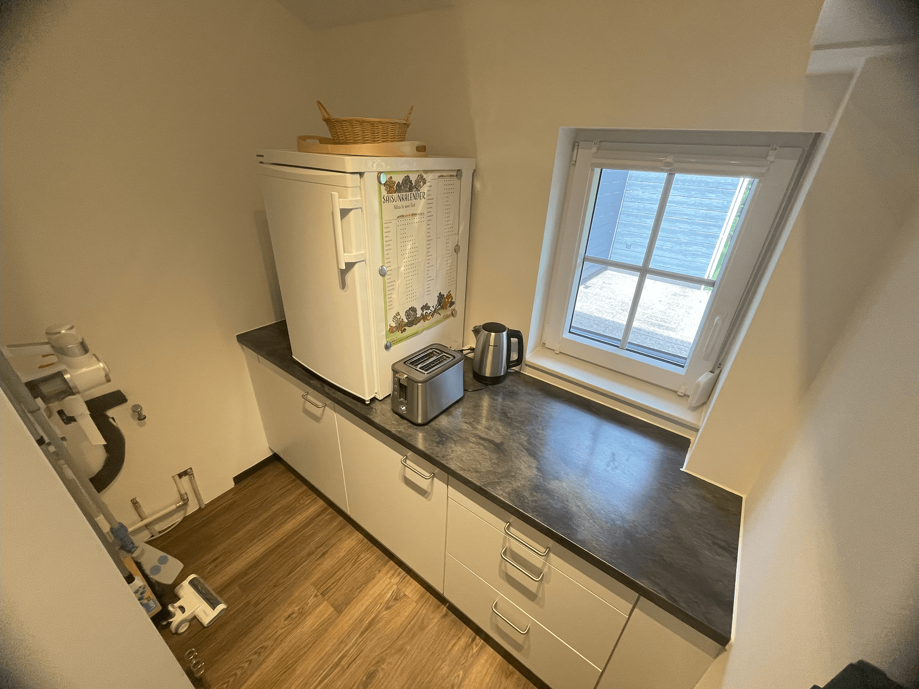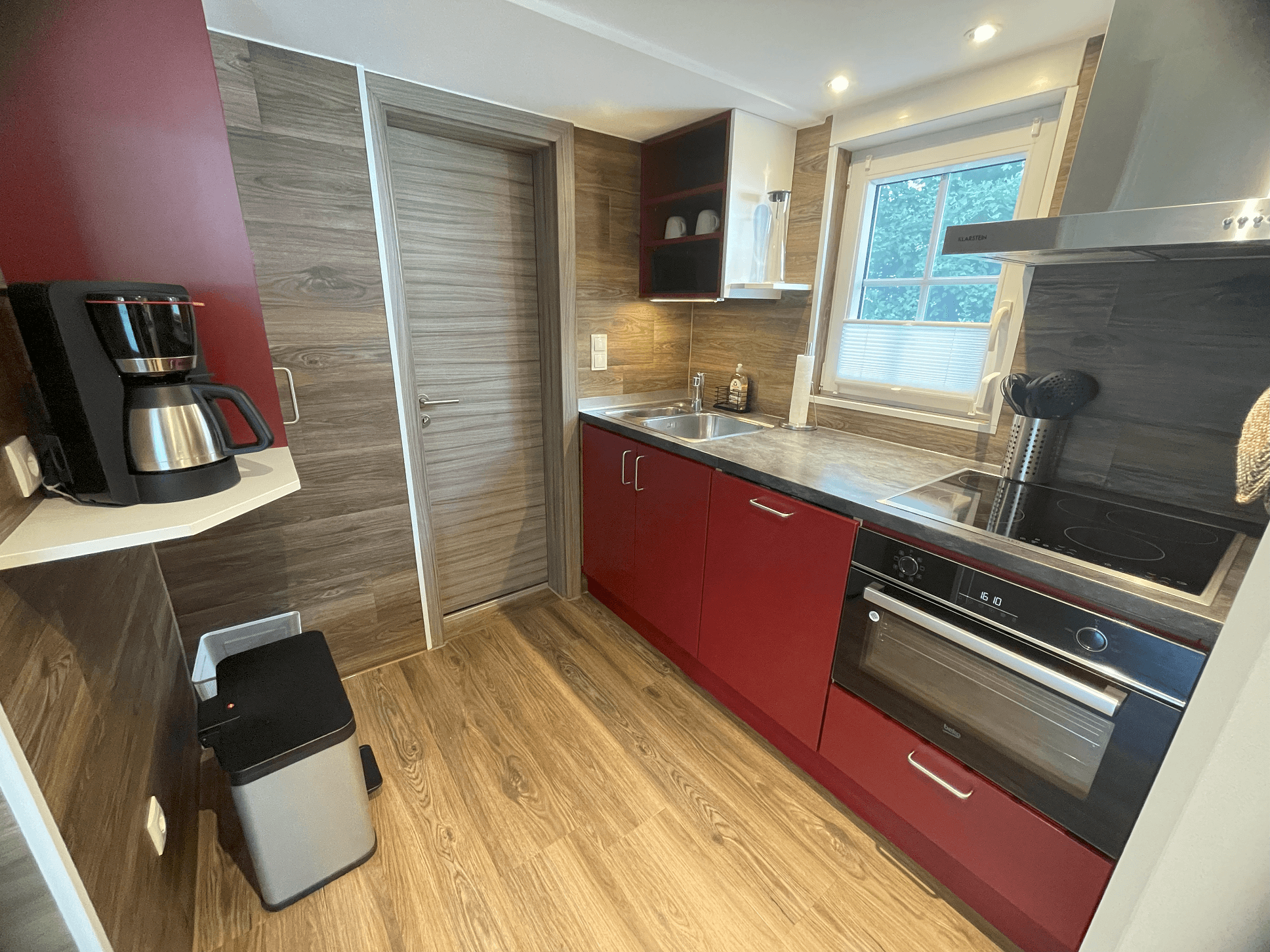 Die 45 m² große, ebenerdige Unterkunft verfügt über eine komplett ausgestatte, offene Einbauküche, ein komfortables Badezimmer mit Dusche/WC, sowie einen eigenen abschließbaren Abstellraum für Ihre Fahrräder.