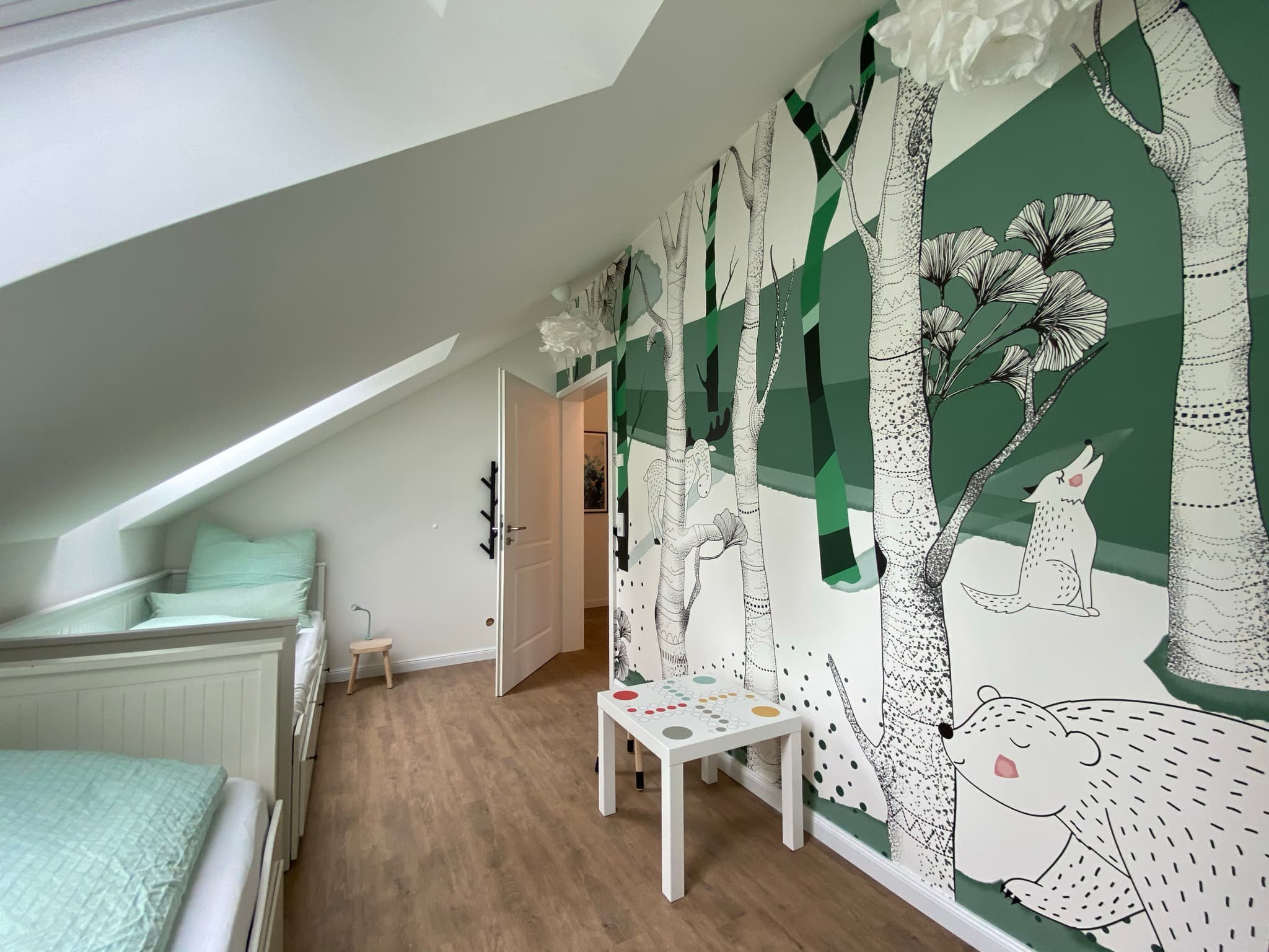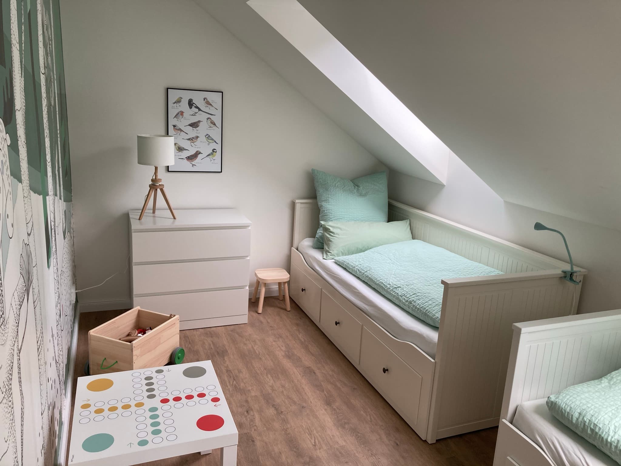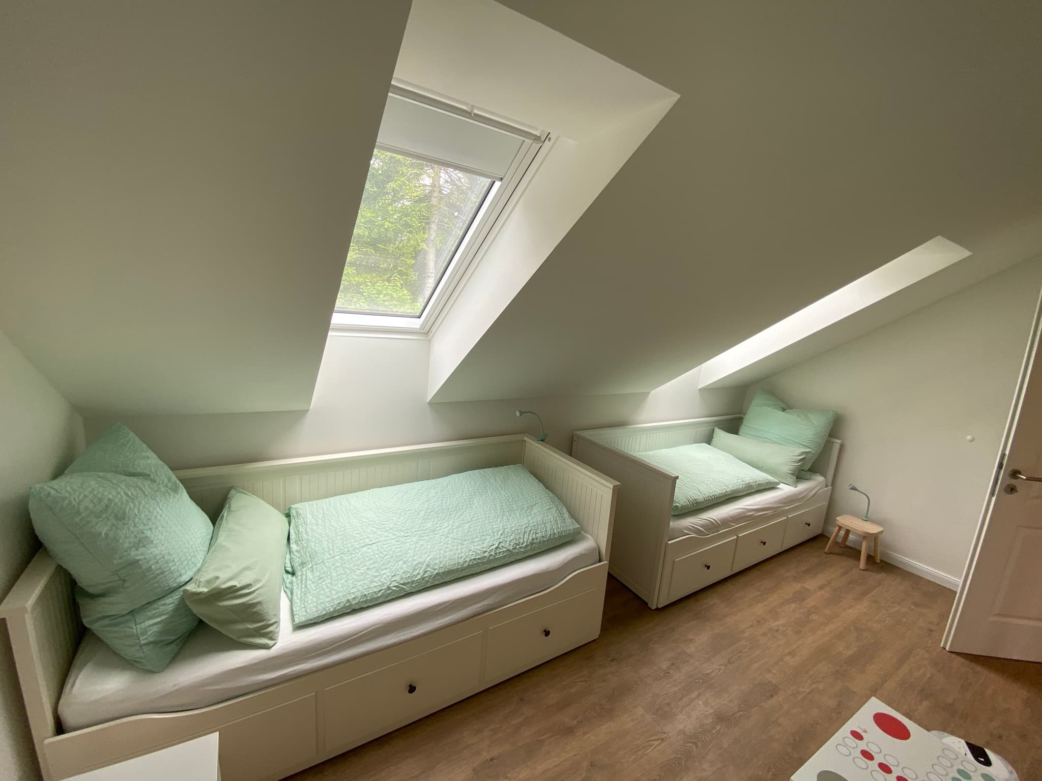 Die 2021 neu gebaute 5-Sterne* Ferienwohnung mit 102qm liegt im Obergeschoss. Der Wohn-, Ess- und Kochbereich ist mit seinen bis zu 4m hohen Decken sehr hell und großzügig. Die Wohnung bietet Ihnen 2 separate Schlafzimmer, mit einem großem Kingsize-Boxspringbett und 2 gemütlichen Einzelbetten. Auf der 21qm großen Süd-West-Dachterrasse mit umgebendem Gründach können Sie die Sonne beim Entspannen und Grillen genießen. Im eigenem Fahrradschuppen können Sie Ihre Fahrräder und e-Bikes sicher verschließen.