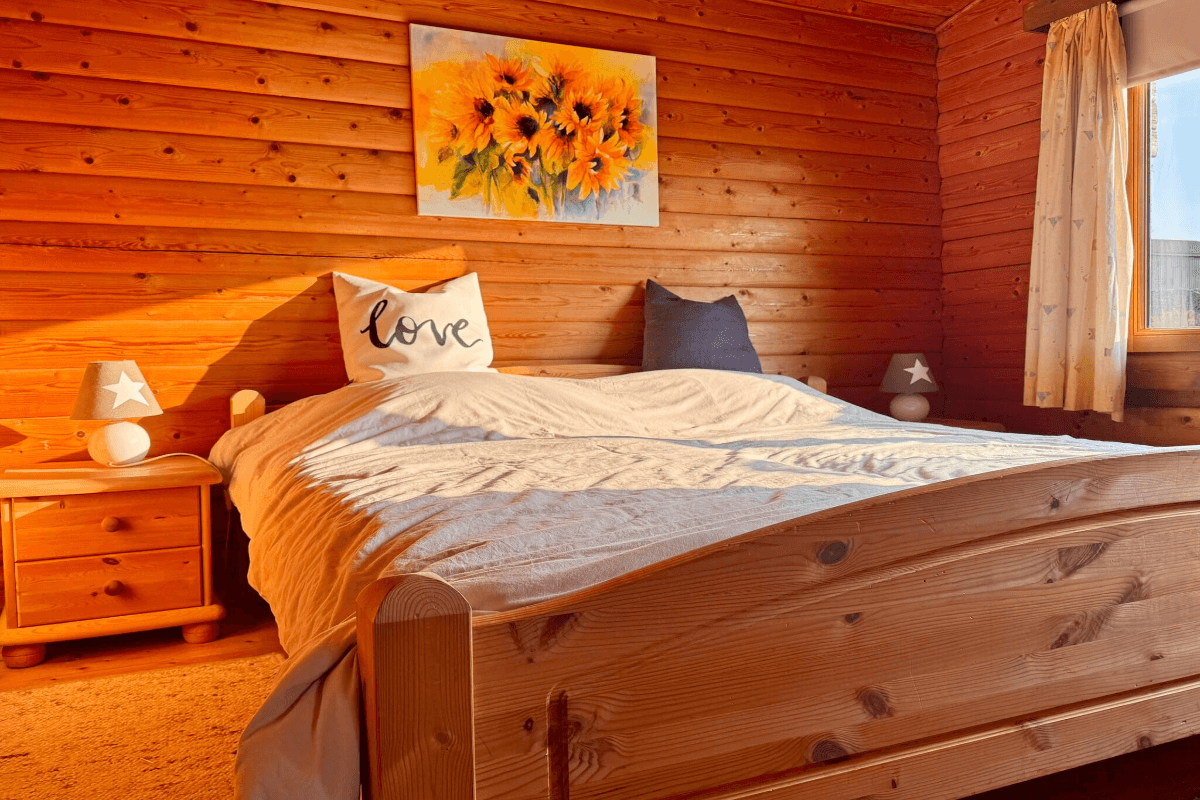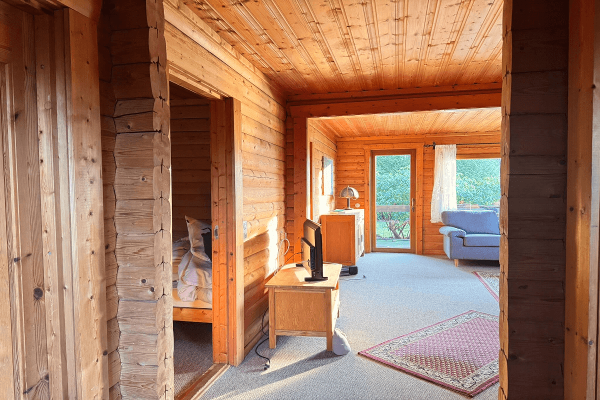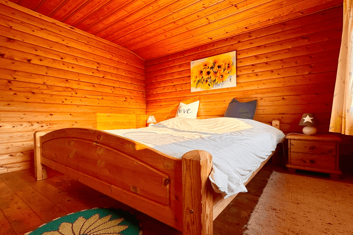 Unsere gemütlichen Blockhäuser bieten auf 65 m² Wohnfläche folgende Ausstattung: