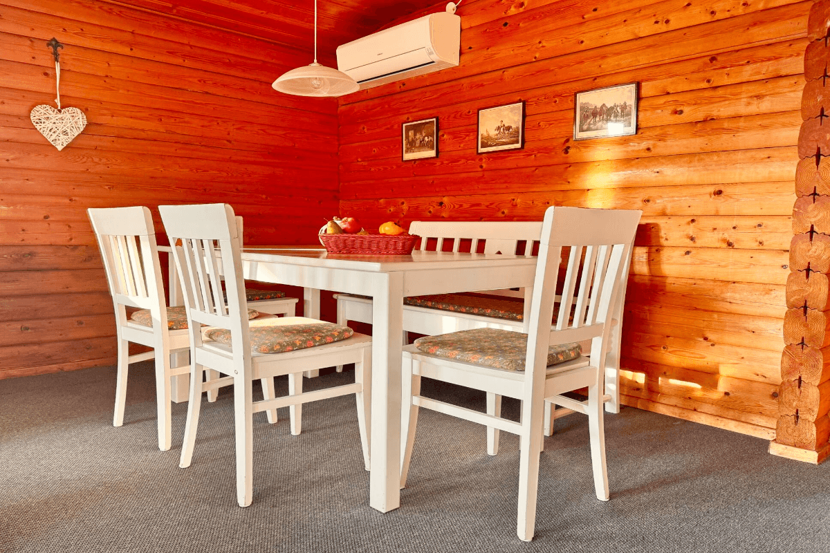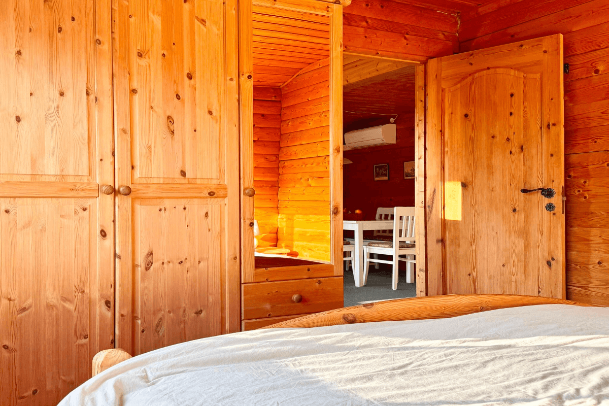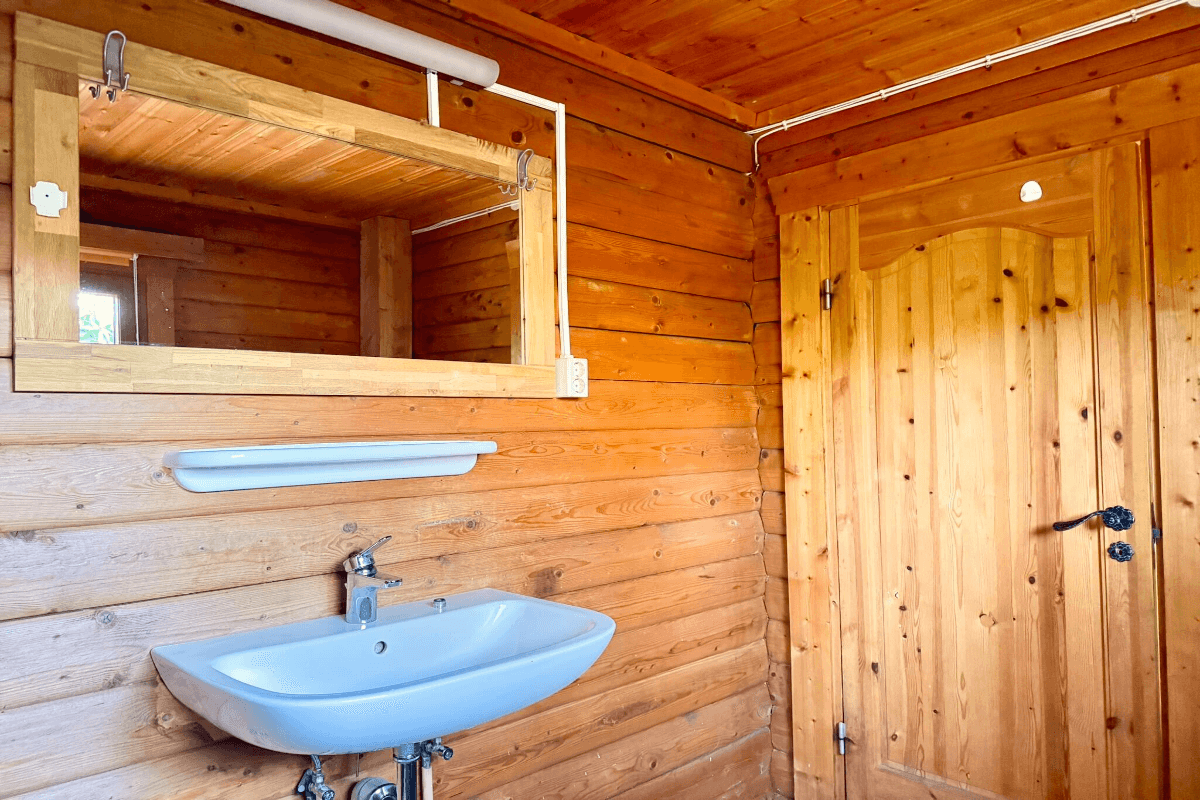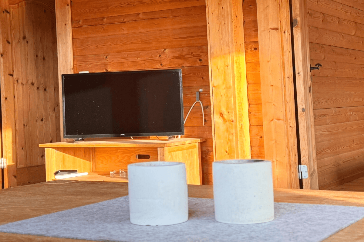Unsere gemütlichen Blockhäuser bieten auf 65 m² Wohnfläche folgende Ausstattung: