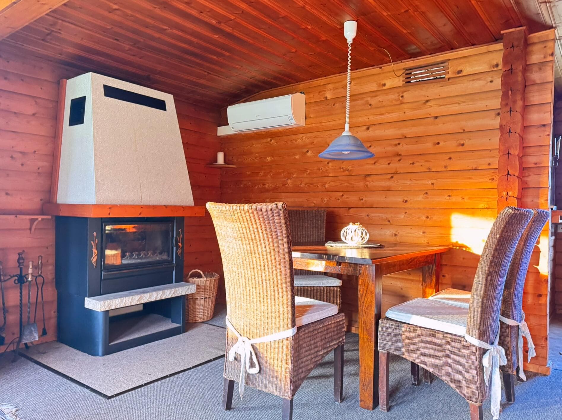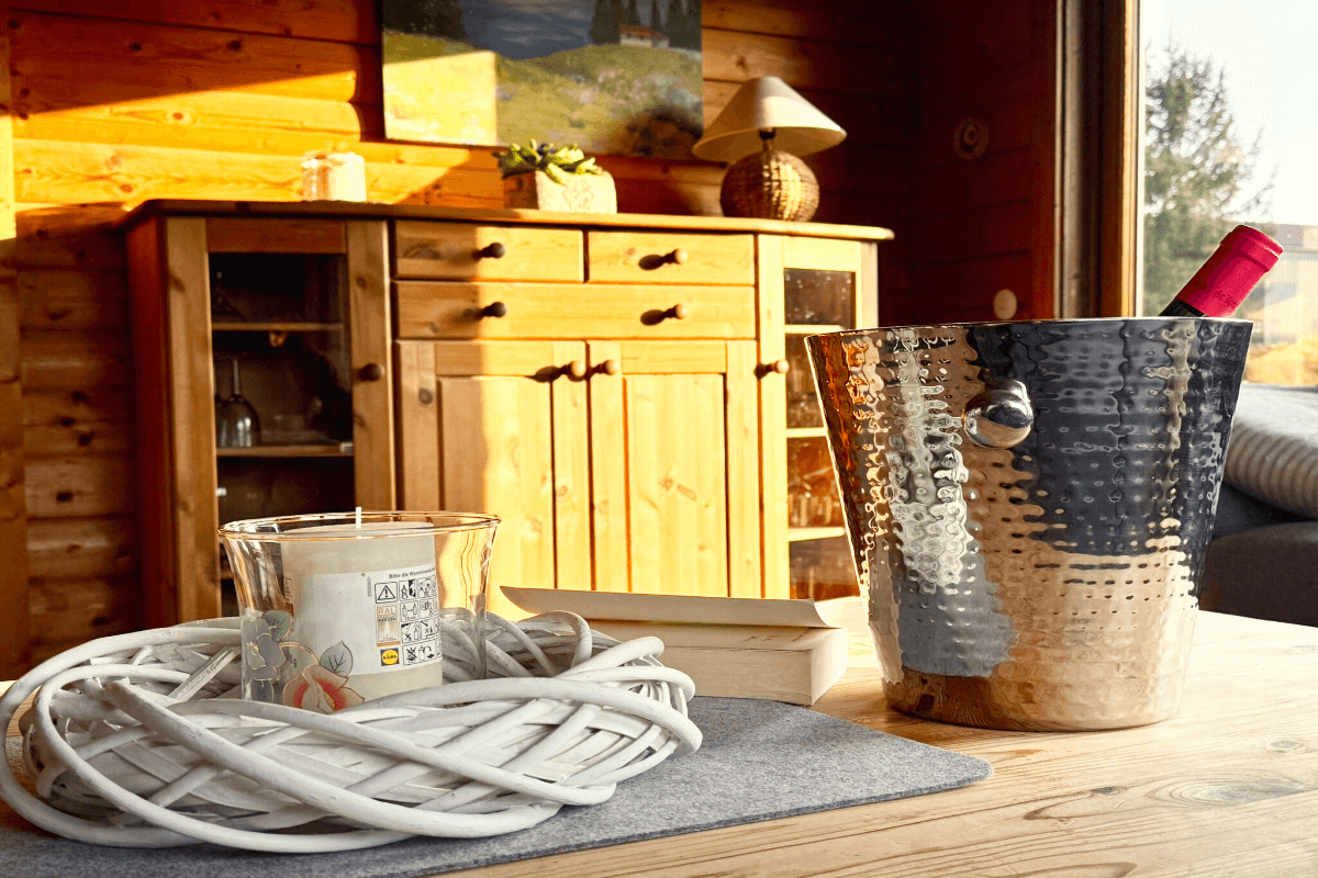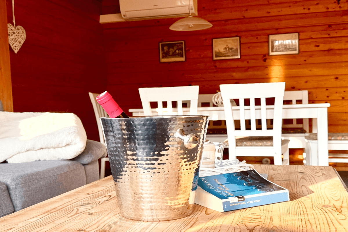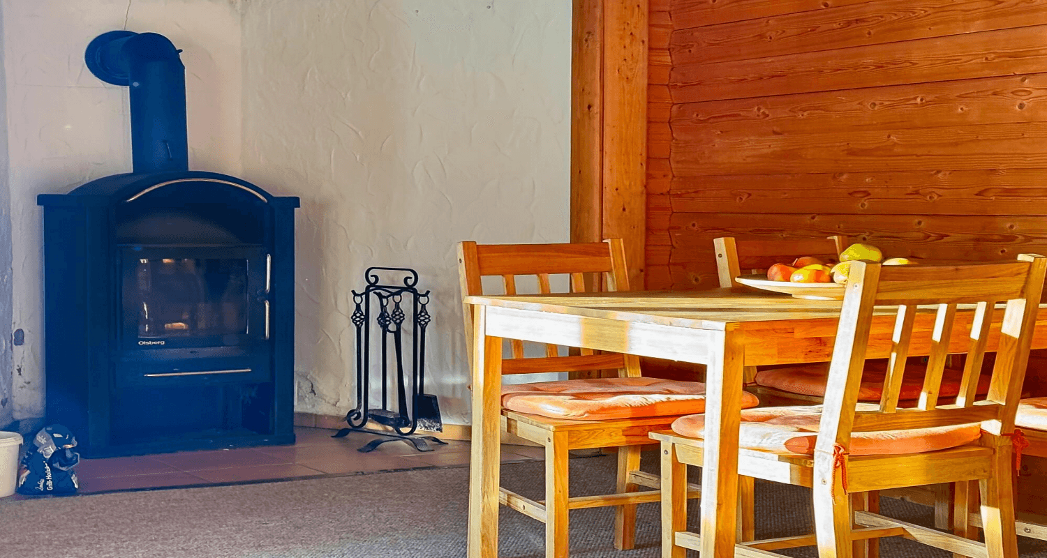 Nach einem aktiven Tag können Sie es sich vor dem Kamin im Ferienhaus gemütlich machen und die wohlige Wärme genießen. Alternativ bietet die teilüberdachte Veranda den idealen Ort, um bei Sonnenuntergang einen Sundowner zu erleben und die Farben des Abends zu bewundern. Unsere Blockhäuser sind hundefreundlich, sodass auch Ihre vierbeinigen Begleiter herzlich willkommen sind und gemeinsam mit Ihnen die Umgebung erkunden können.