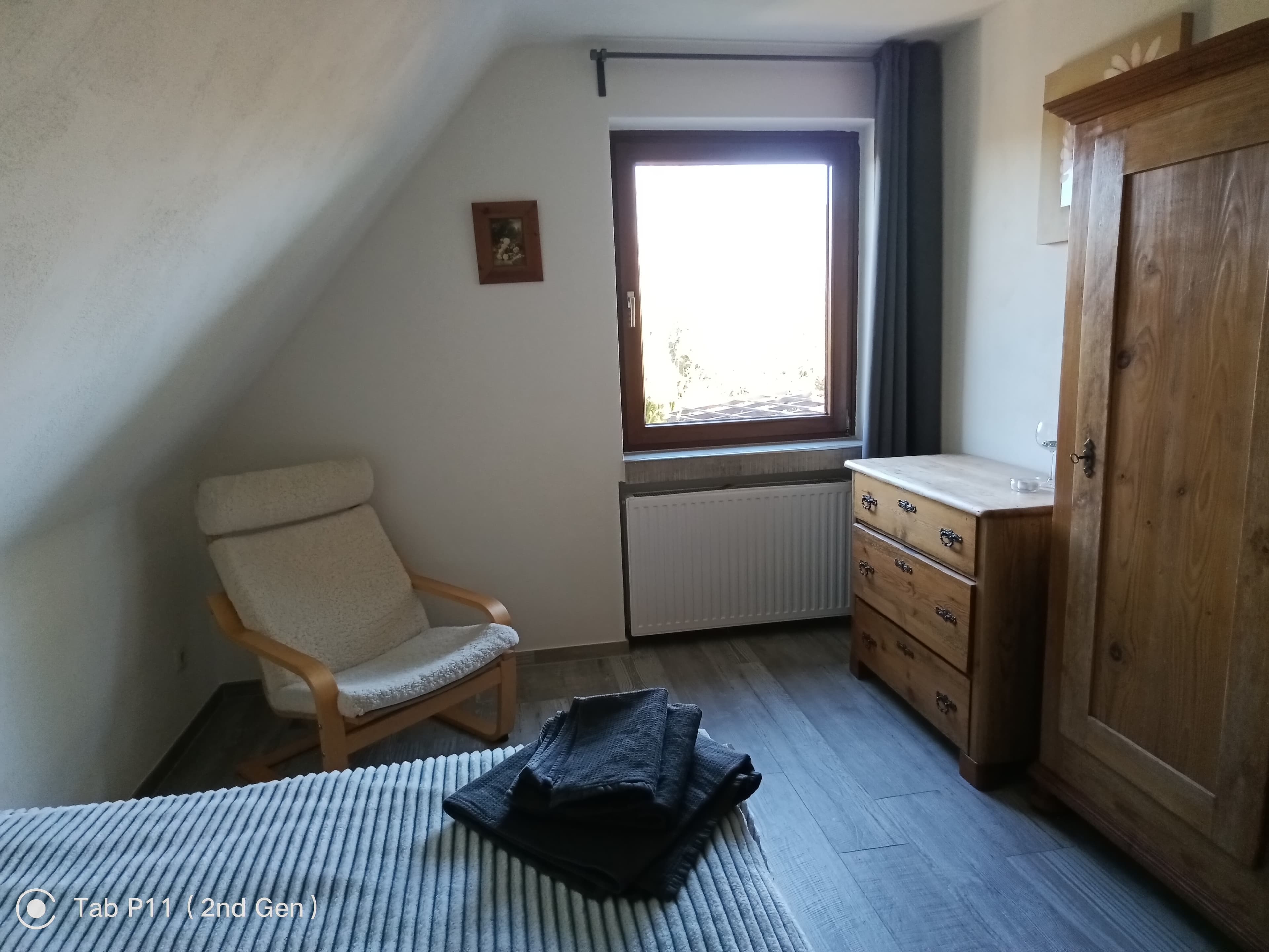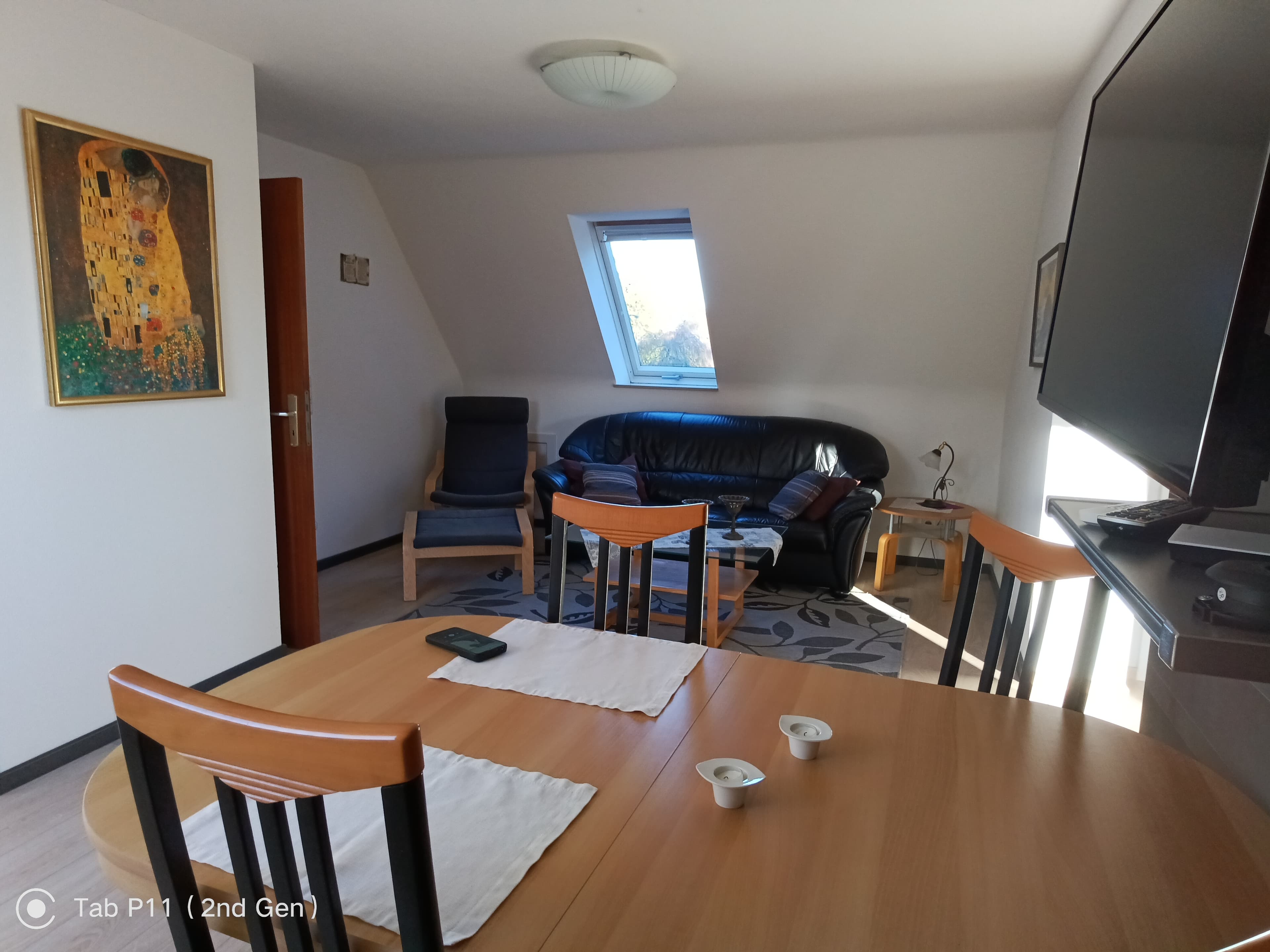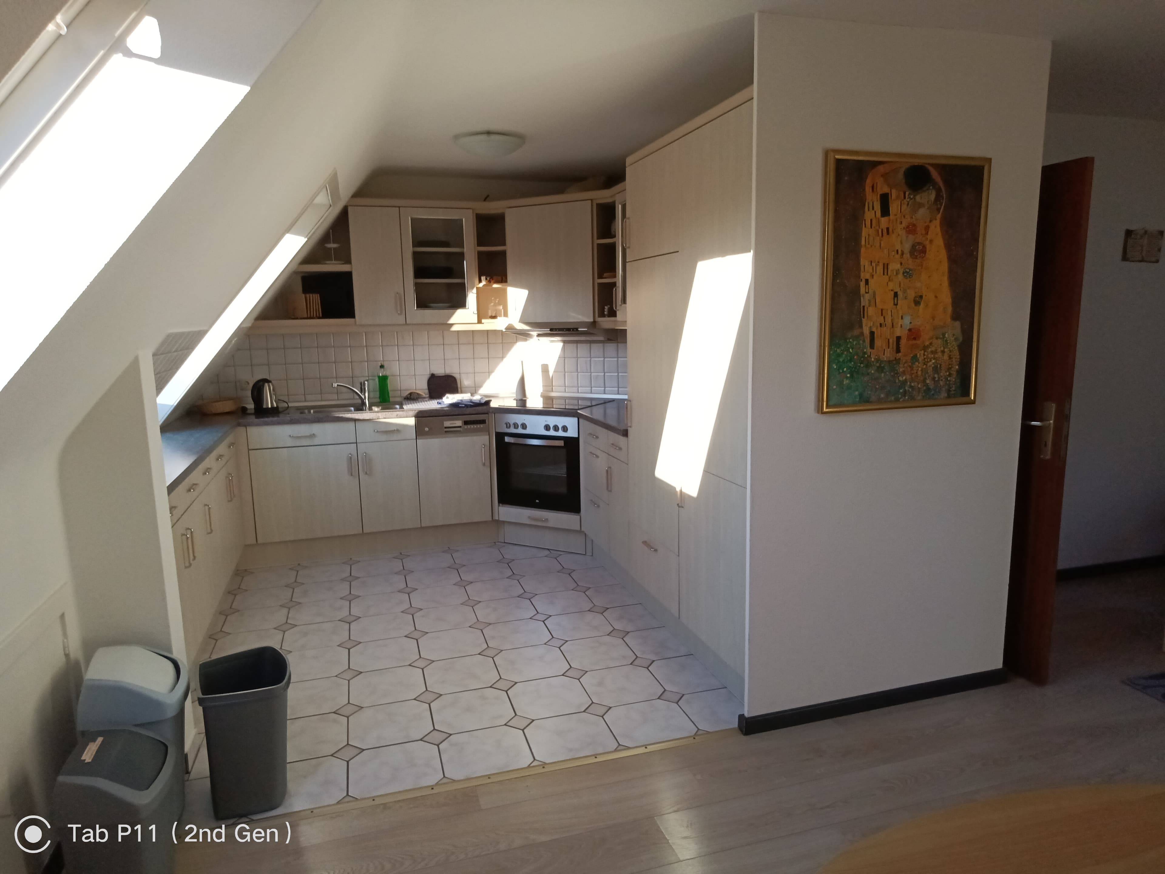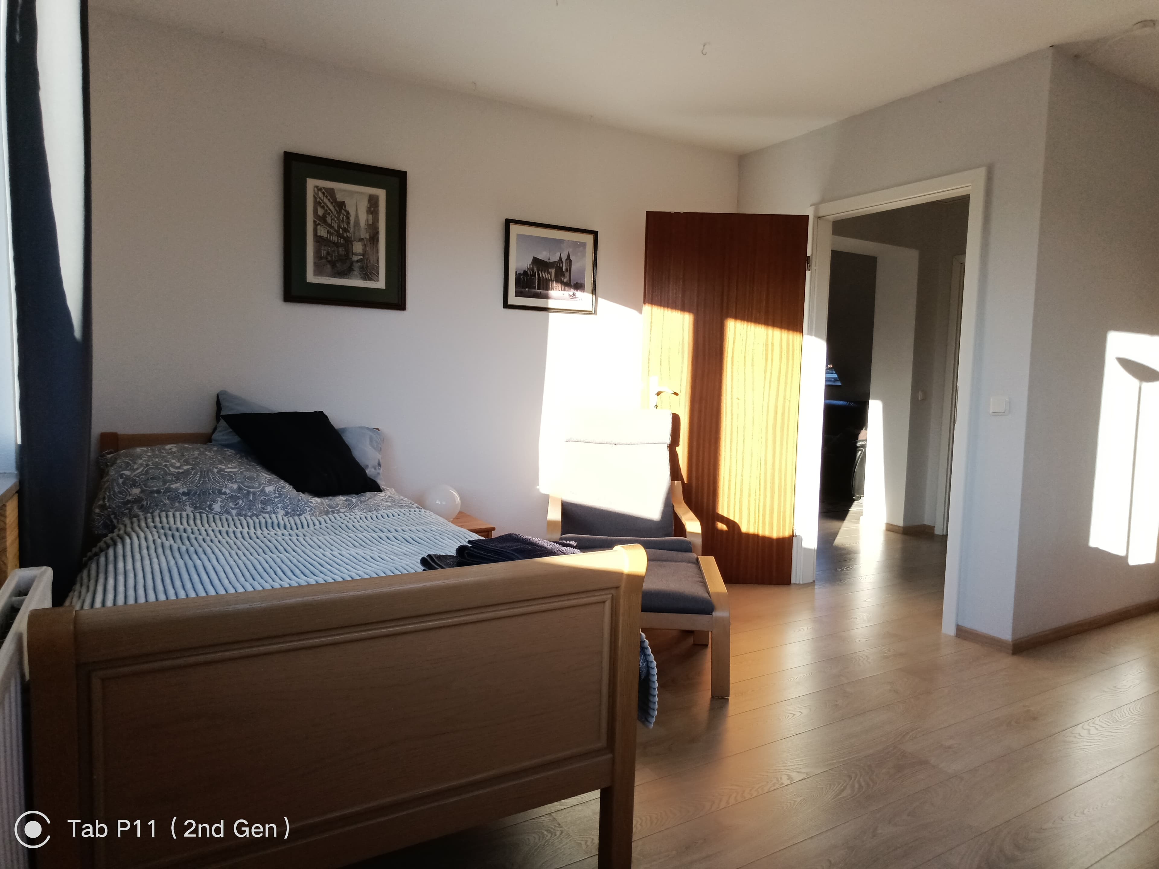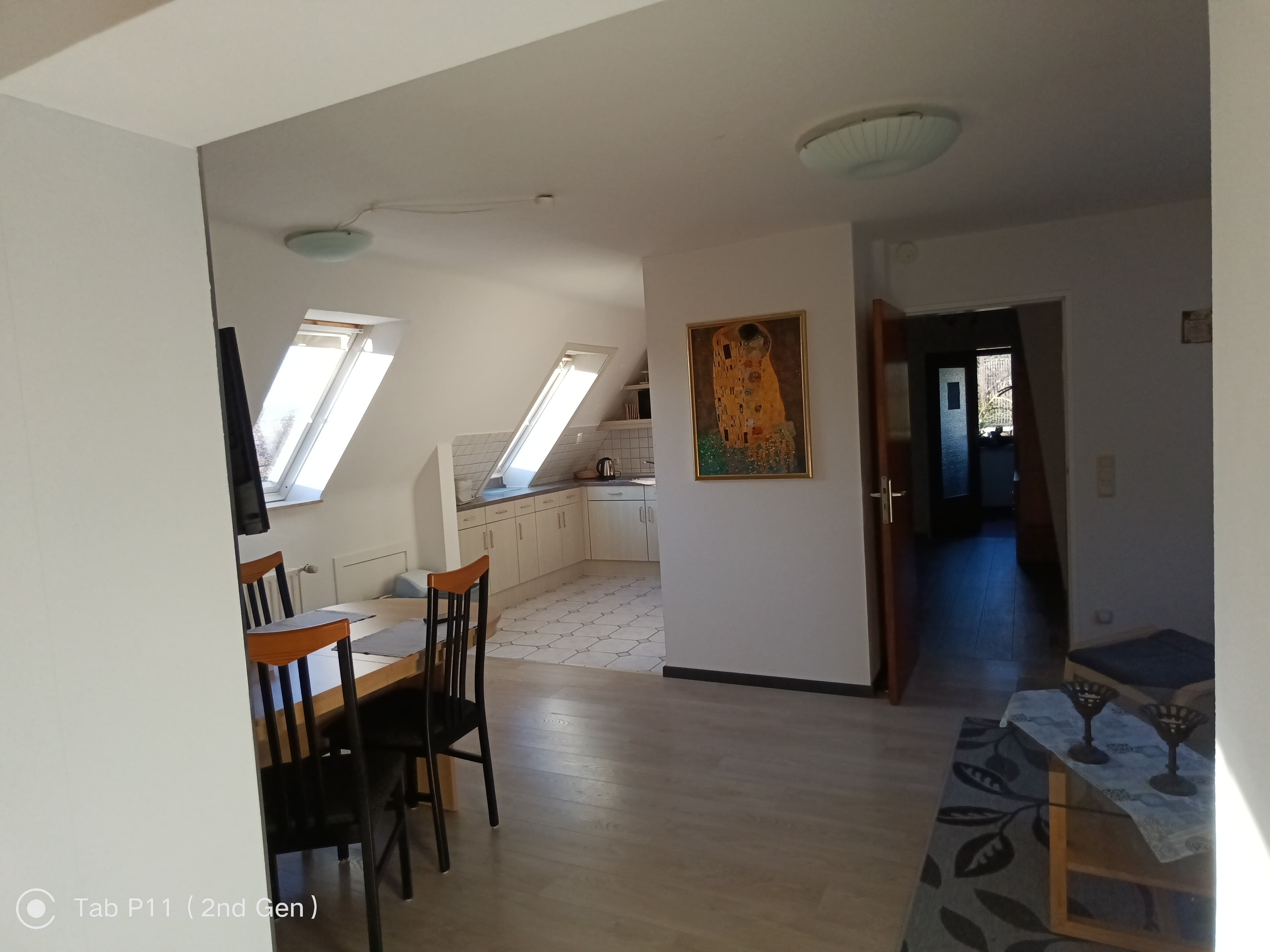 Über das Treppenhaus betreten Sie die 75 qm große Wohnung im ersten Stock. Vom Flur abgehend erreichen Sie auf der rechten Seite das erste Einzelschlafzimmer, auf der linken Seite das Badezimmer, beide mit Dachschrägen. Geradezu befindet sich der L-förmige Wohn-& Essbereich mit der offenen Küche. Hier erkennen Sie sofort noch einen kleinen Innenflur, davon abgehend betreten Sie die beiden letzten Schlafräume. Zur Straßenseite das zweite Einzelzimmer, dem gegenüber das Doppelzimmer mit zwei Einzelbetten.