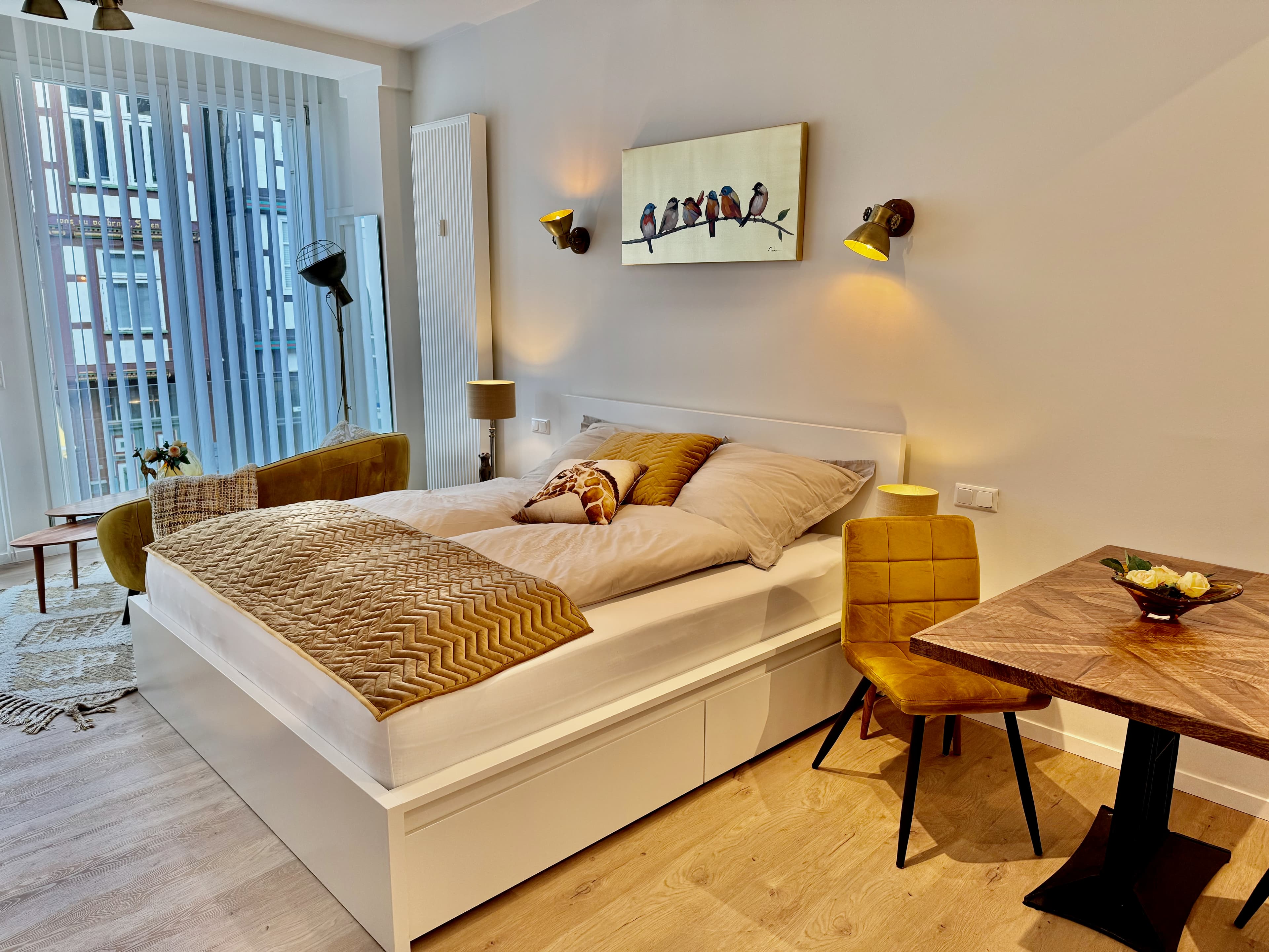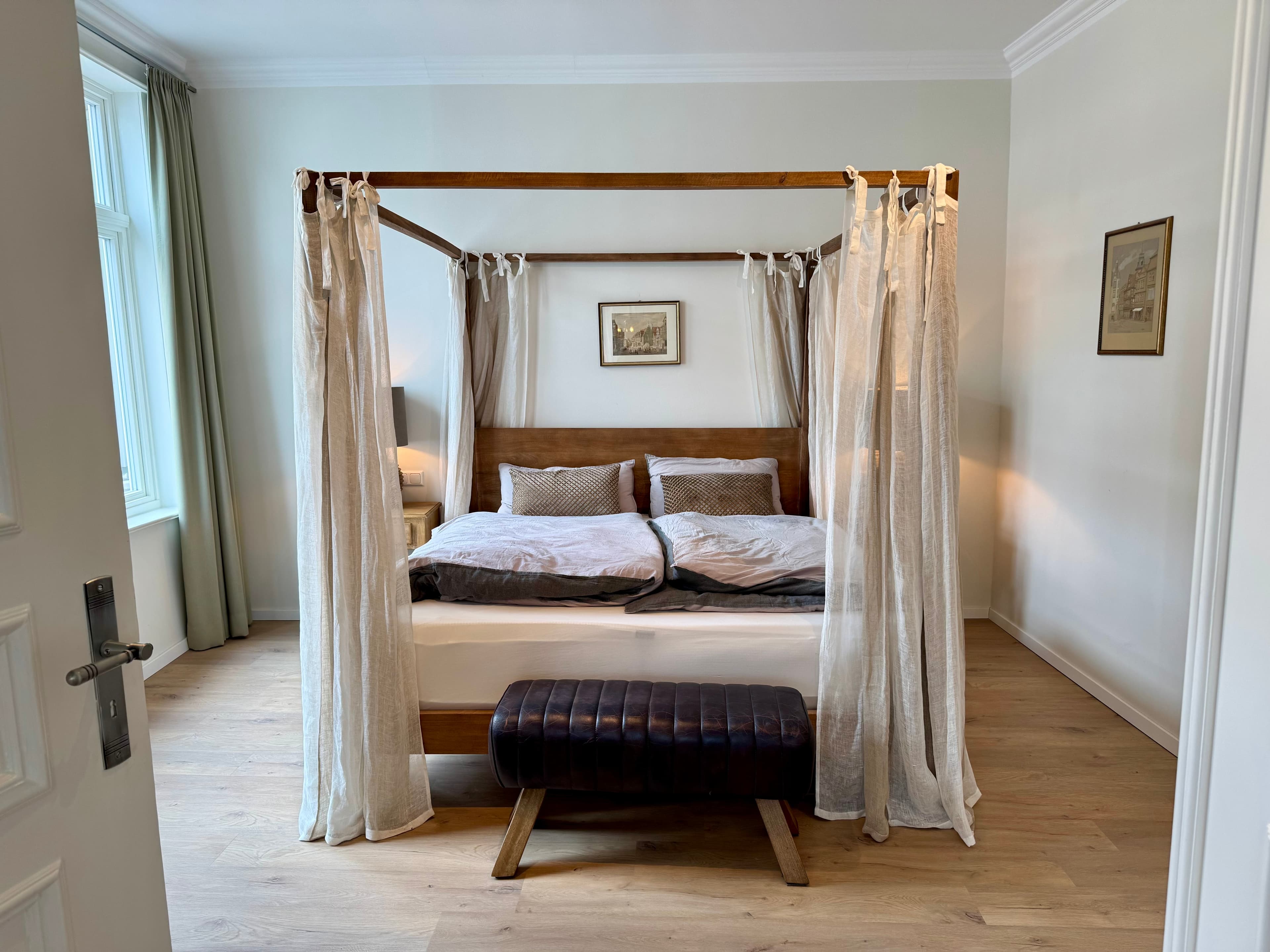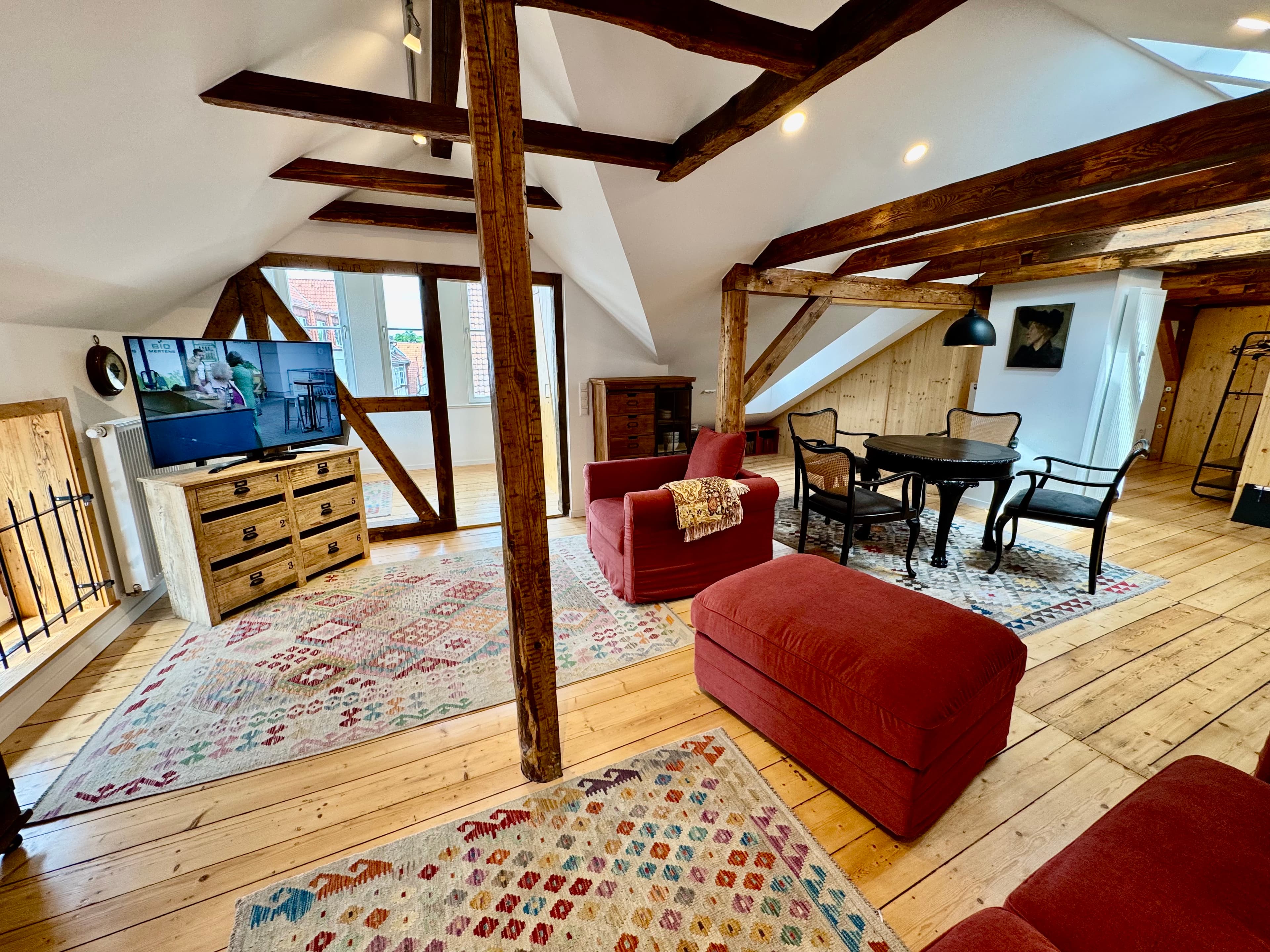Unsere sechs stilvoll eingerichteten Apartments erwarten dich mitten in der Celler Altstadt – direkt am Marktplatz mit Blick auf das barocke Rathaus und die berühmten Fachwerkfassaden. Das denkmalgeschützte Gebäude aus der Mitte des 19. Jahrhunderts wurde mit viel Liebe zum Detail modernisiert und beherbergt heute individuelle Ferienwohnungen mit hochwertiger Ausstattung, charmantem Ambiente und perfekter Lage für Stadterkundung und Erholung. Jede Wohnung ist einzigartig – vom "Turm-Apartment" mit freigelegtem Gebälk und Dachfenstern bis zur "Schloss-Suite" mit Himmelbett und großzügigem Wohnbereich. Die „Goldschmiede“ überzeugt mit Designmöbeln und Weitblick, während die „Uhrmacherei“ mit warmen Farben und eleganter Einrichtung moderne Behaglichkeit schafft. Alle Apartments sind voll ausgestattet mit Küche, Smart-TV, WLAN, komfortablen Betten und stilvollen Bädern mit Regendusche oder Badewanne. Teilweise verfügen die Unterkünfte über Arbeitsbereiche, Essplätze und historische Details wie Doppelflügeltüren oder Holzbalken. Du erreichst Cafés, Restaurants, Museen und das Celler Schloss in wenigen Minuten zu Fuß. Der Bahnhof ist ebenfalls nur rund 12 Gehminuten entfernt. Öffentliche Parkplätze stehen in direkter Umgebung zur Verfügung. Ob Kurzurlaub, Geschäftsreise oder längerer Aufenthalt – unsere Apartments verbinden historischen Charme mit modernem Komfort. Genieße deinen Aufenthalt in einem der schönsten Häuser der Altstadt – mit Service, Stil und Seele. Bitte beachte: Unsere Parkplätze befinden sich 5-10 Gehminuten entfernt und sind kostenpflichtig. Eine Reservierung ist erforderlich und nur bei Verfügbarkeit möglich.