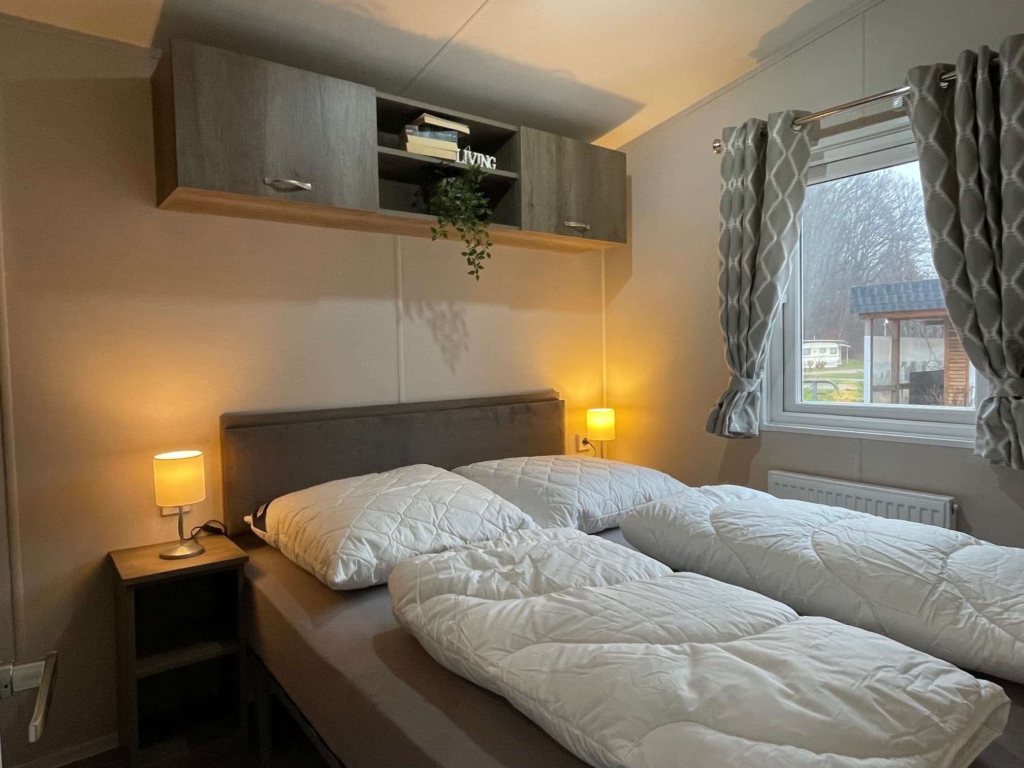 Die frei stehenden Chalets bieten Platz für 4 Personen + Kinderbett mit 2 Schlafzimmern. Sie sind komplett eingerichtet mit Küchengeschirr, Kühlschrank, Mikrowelle, Sat-TV und WLAN, Duschbad und separatem WC-Raum.