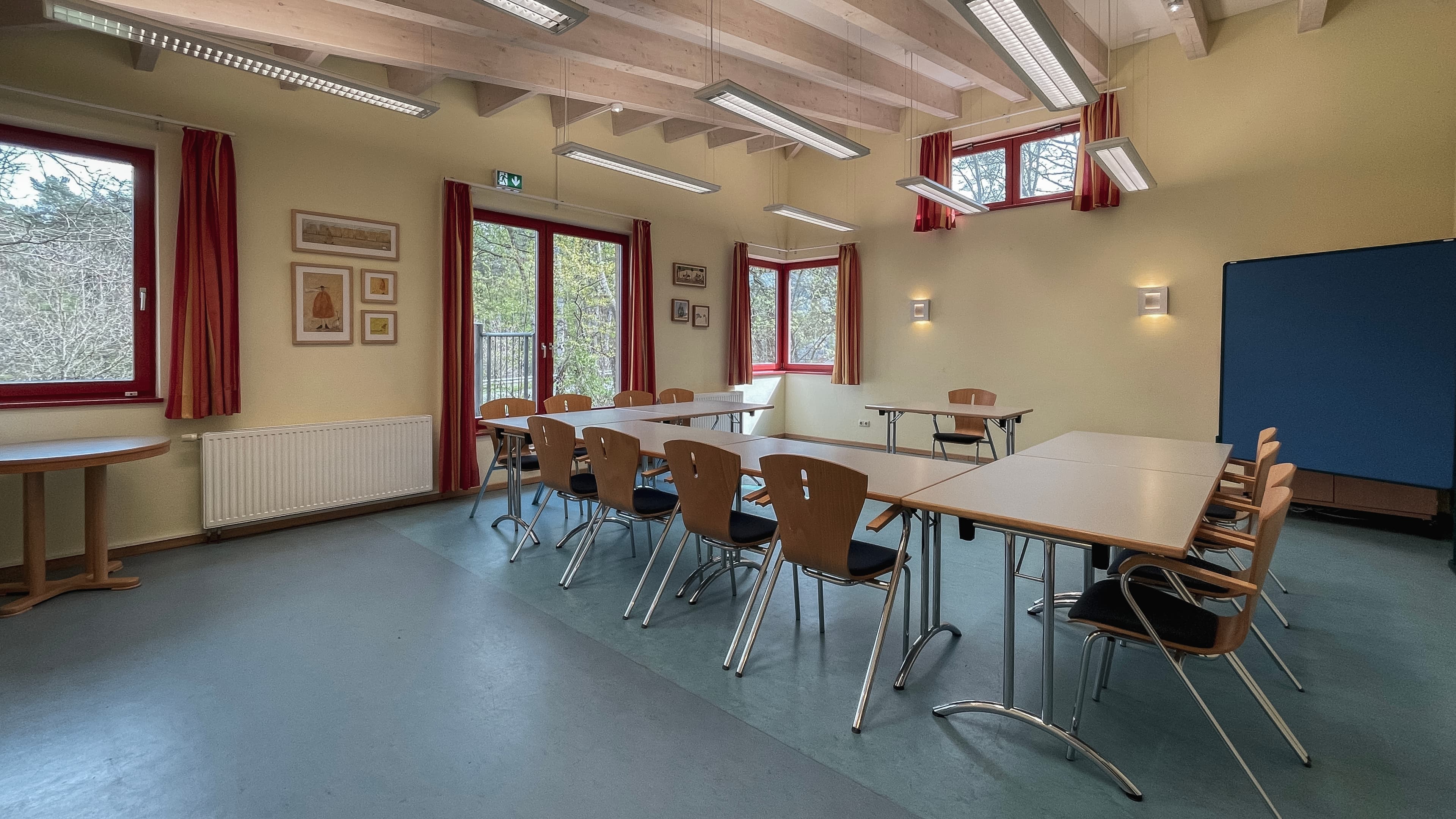 Außerdem stehen zwei Aufenthalts- und Tagungsräume sowie zwei Blockhütten zur Verfügung.