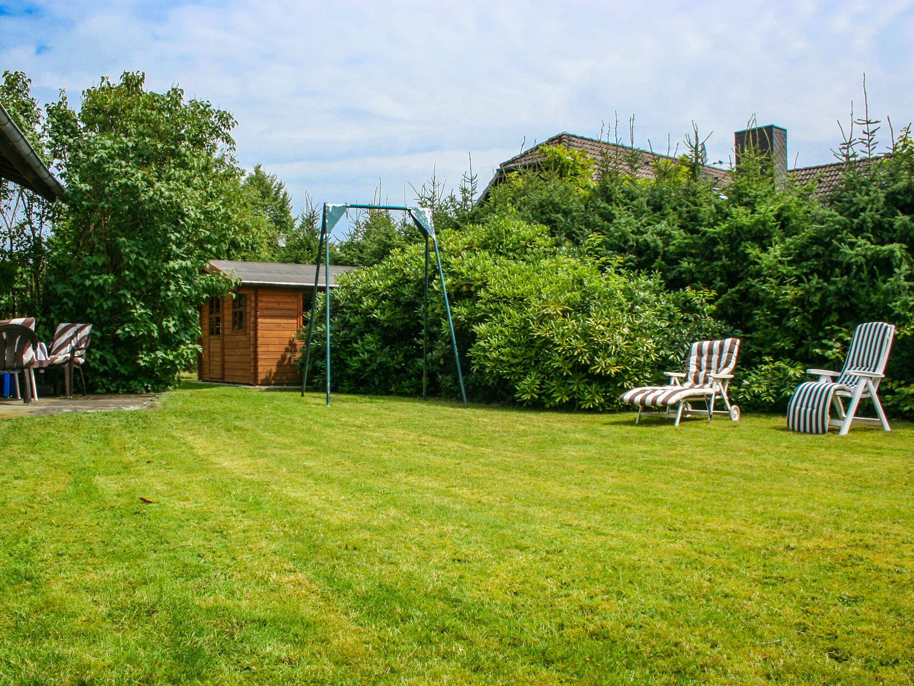 - Garten mit abschließbarem Gartenhaus zum Abstellen der Fahrräder und Gartenstühle, -tisch