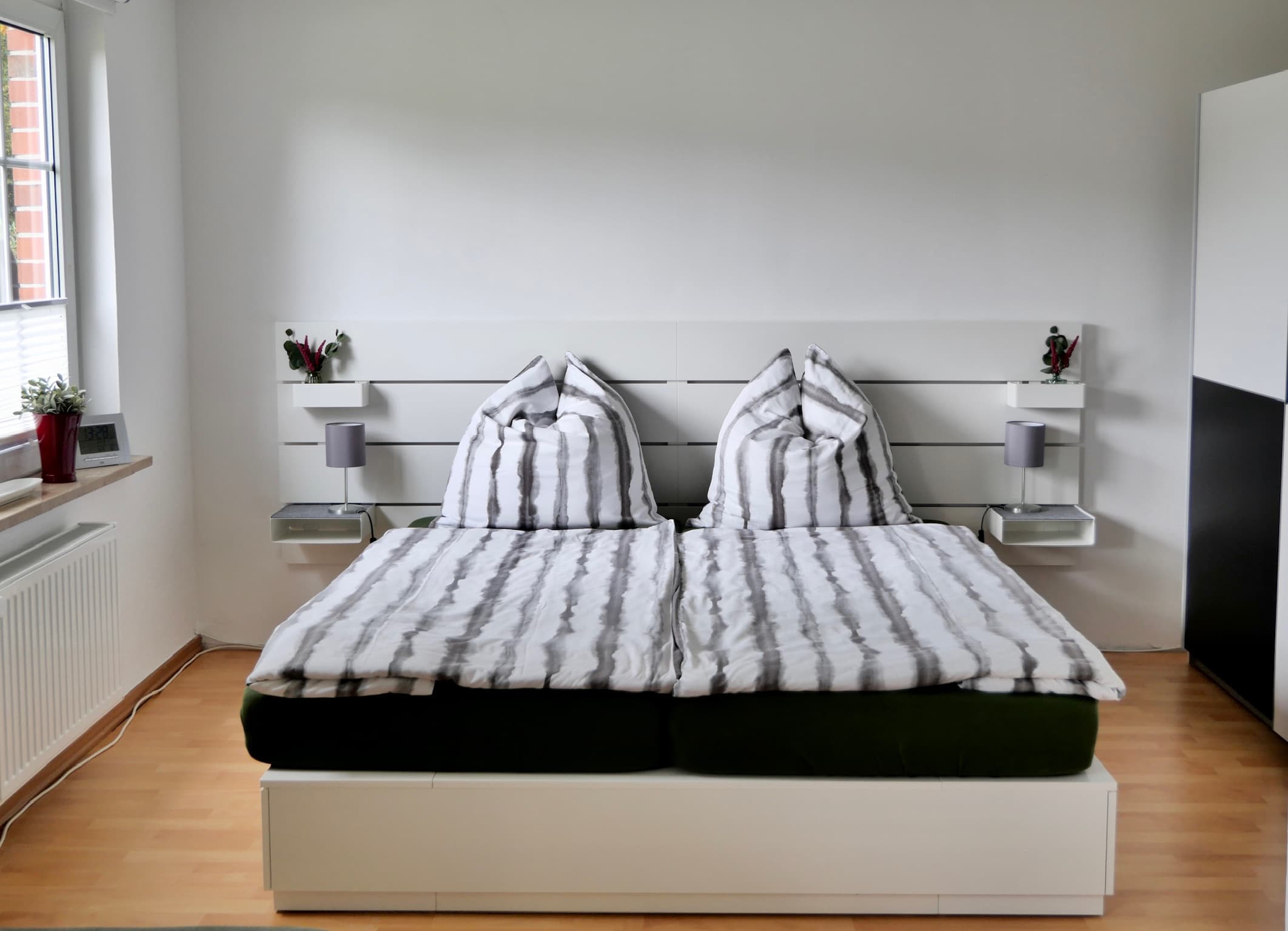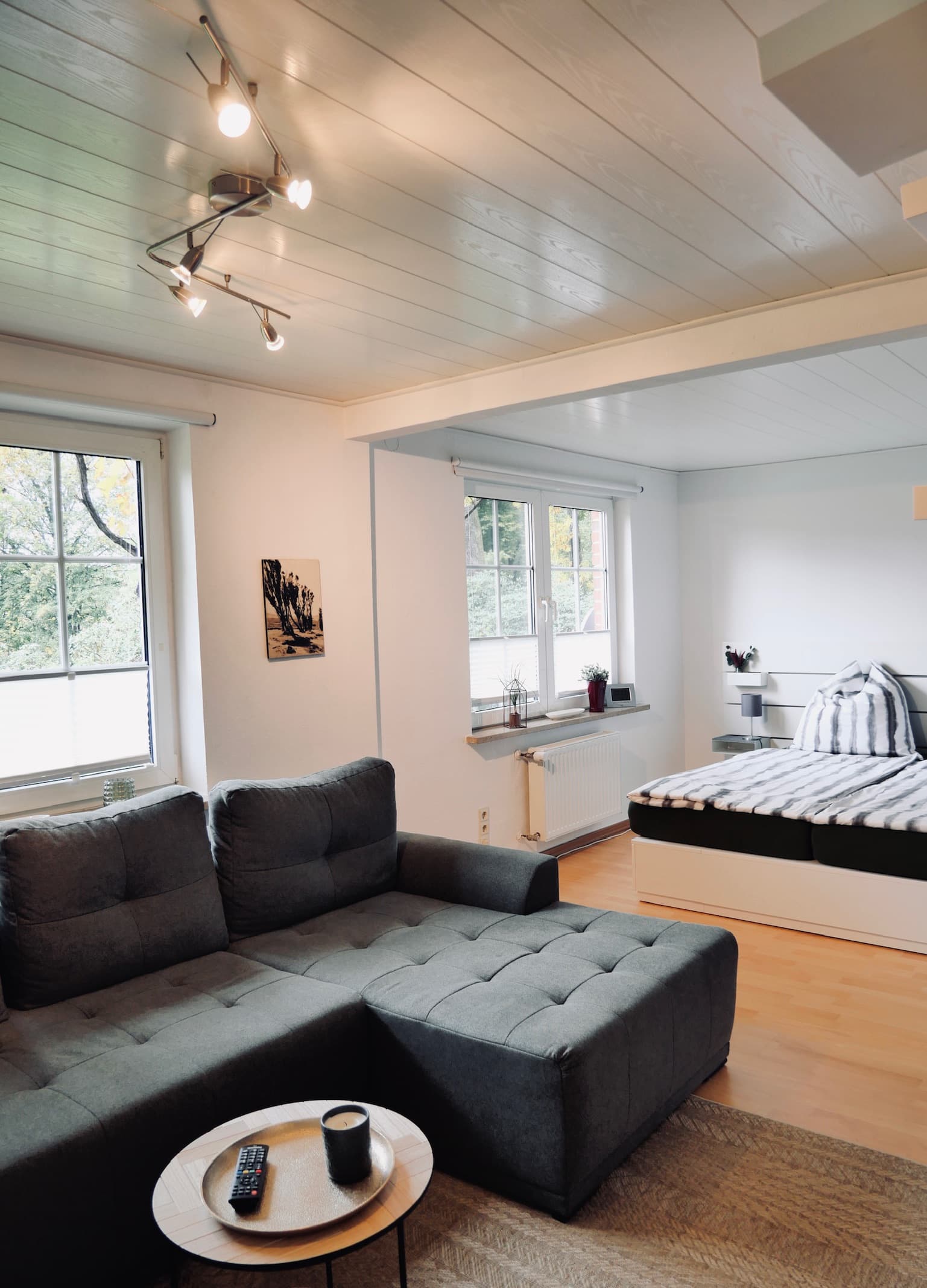 Wir bieten ihnen eine sonnige, modern eingerichtete Erdgeschosswohnung mit Blick auf Wiese und Teich.