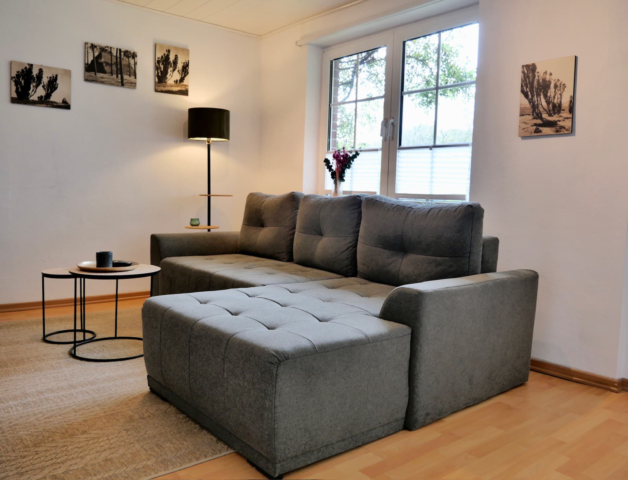 Die Ferienwohnung "Josef" liegt direkt am Heidschnucken-Wanderweg inmitten eines großzügigen Gartens im Bispinger Ortsteil Hützel.