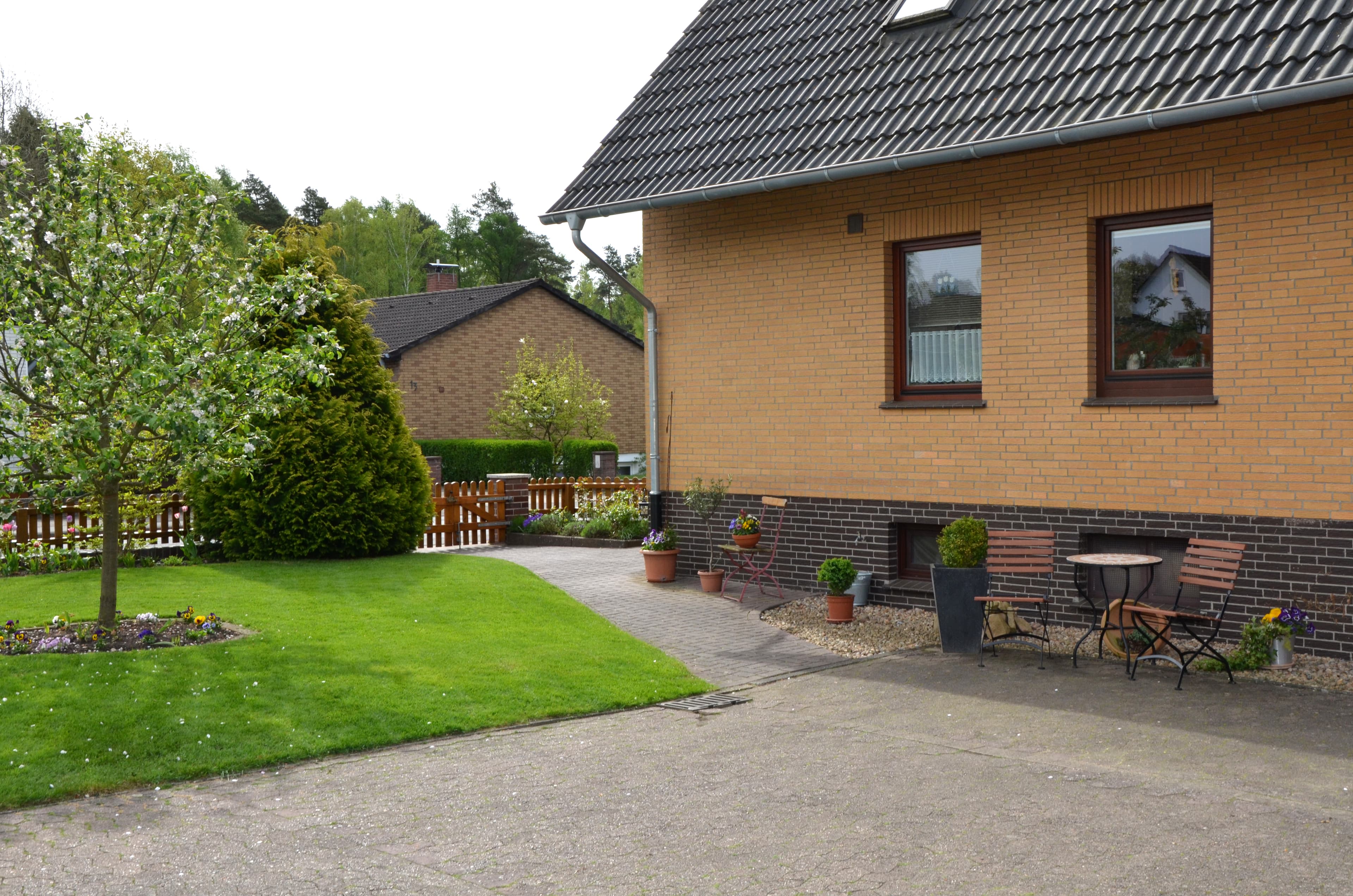 Im Außenbereich der Ferienwohnung steht Ihnen ein großer Garten mit Terrasse und Sitzecke zur Verfügung (Grillmöglichkeiten).
