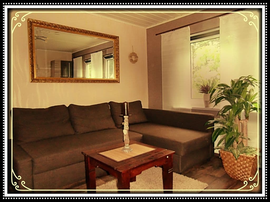 Das Wohnzimmer ist geschmackvoll in Braun/Creme eingerichtet. Es bietet ein bis maximal zwei Schlafmöglichkeiten auf dem gemütlichen, ausziehbaren Sofa (140x210 cm). Dieses dient auch als Sitzgelegenheit. Die Fenster sind durch Rollos zu verdunkeln. TV vorhanden, PS 3 vorhanden, CD/Radio und blu-ray Player vorhanden.