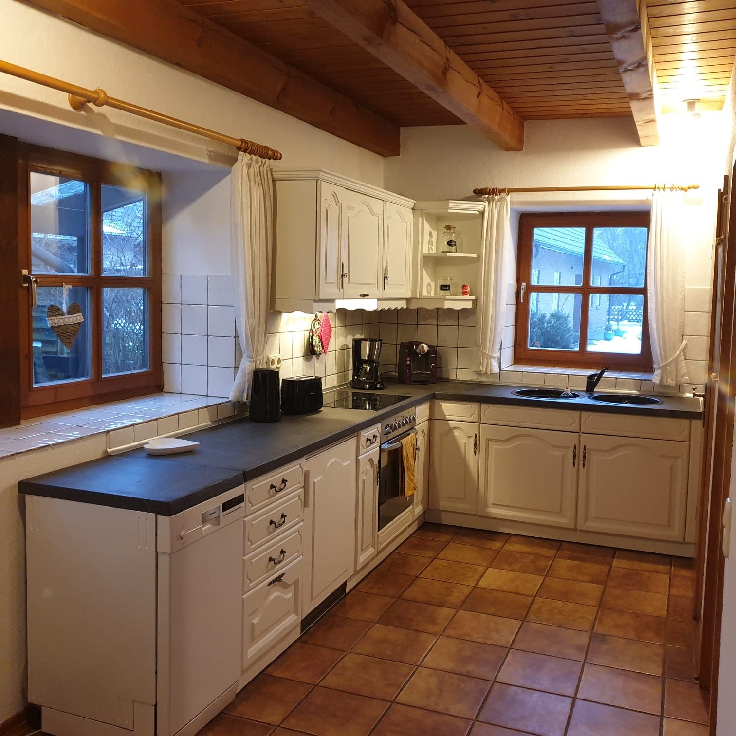 Wir bieten eine hübsche Doppelhaushälfte in einem Fachwerkhaus mit liebevoller Einrichtung aus neu und alt.