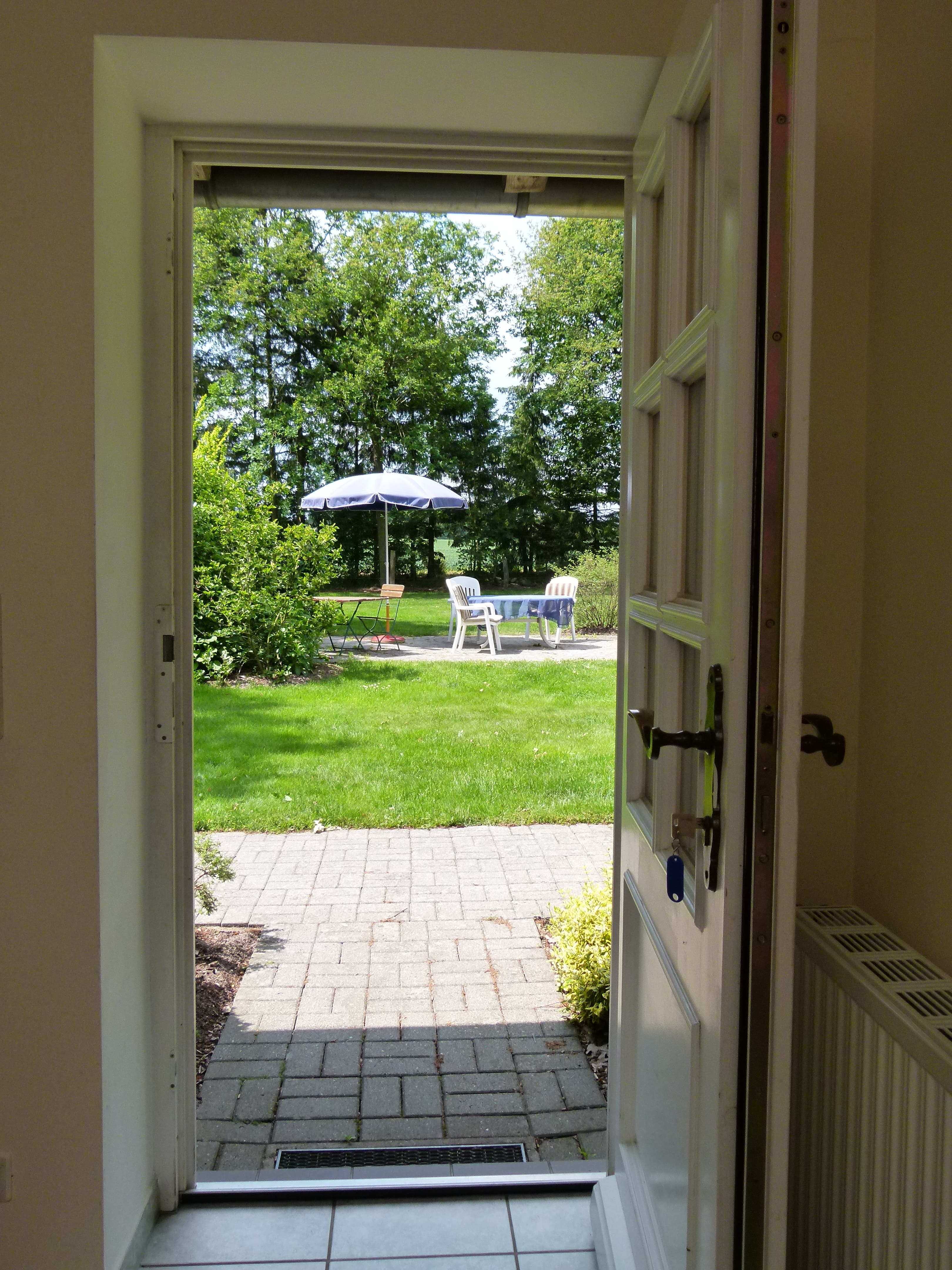 Von der angrenzenden Liegewiese mit Sitzecke und Grill haben Sie einen herrlichen Ausblick auf Wiesen, Feld und Wald.