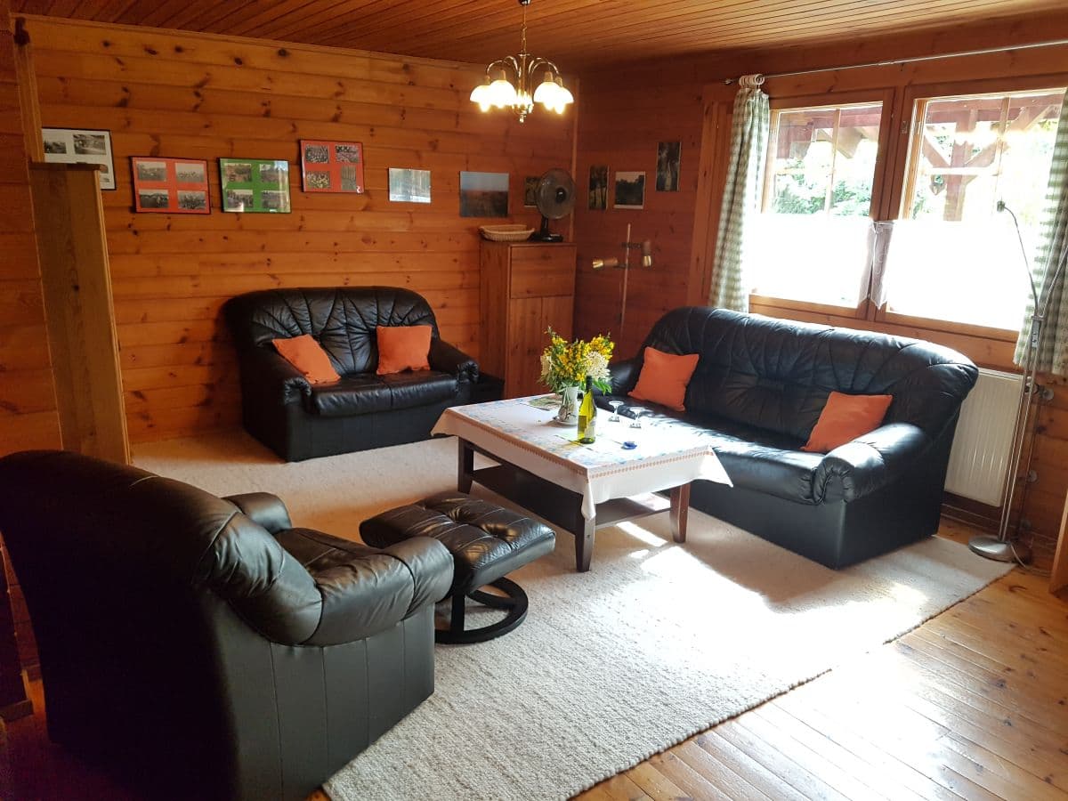 Die Ferienwohnung befindet sich im 1/2 Erdgeschoß unseres geräumigen finnischen Blockbohlenhauses. Holzhaus mit besonderem Charme.