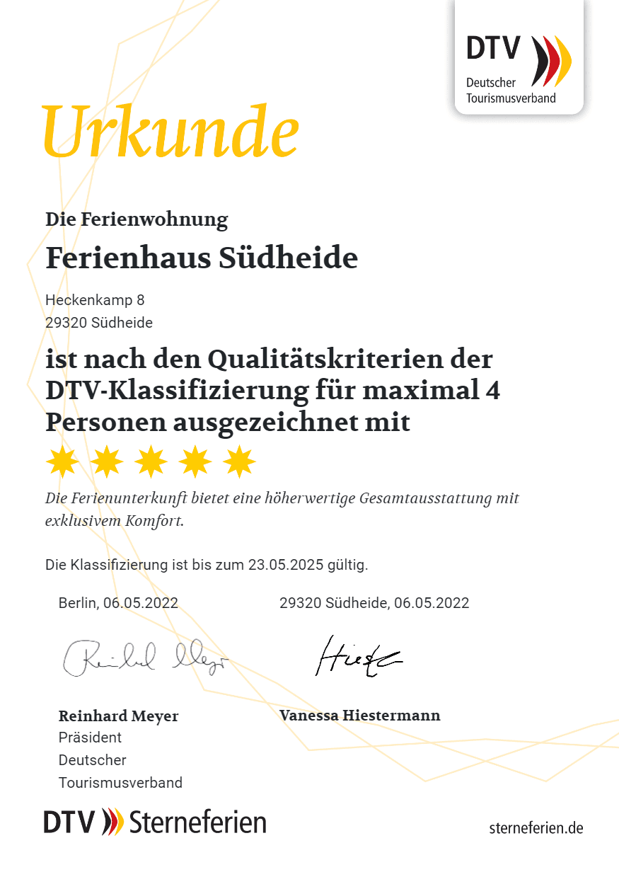Das Ferienhaus Südheide besticht durch seine moderne, ansprechende und hochwertige Ausstattung auf rund 86 m² Wohnfläche. Als 5-Sterne-Unterkunft erfüllt es höchste Ansprüche an Komfort und Service. Es ist nicht nur ein Ort der Ruhe, sondern auch ein idealer Ausgangspunkt, um die vielfältige Natur und die charmanten Orte der Lüneburger Heide zu erkunden. Erholung und Erlebnis sind hier je nach Wunsch möglich, egal ob Sie die unberührte Natur genießen oder die kulturellen und Freizeitmöglichkeiten der Region nutzen möchten.