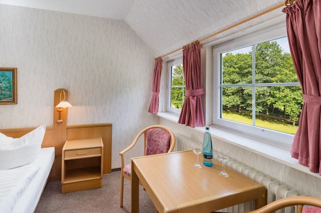 Alle Zimmer liegen in der ersten Etage und sind nur ohne Aufzug über das Treppenhaus zu erreichen.