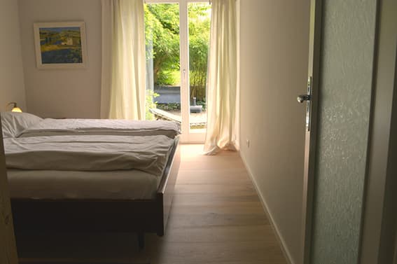 Die Wohnung ist unaufdringlich und stimmig eingerichtet. Dezente Wandfarben in der ganzen Wohnung. Ein 1,60 m breites Doppelbett in einem Schlafzimmer, ein 1,20 m breites Einzelbett im anderen. Es gibt eine neue Einbauküche mit Backofen und Geschirrspüler und allem, was man braucht.
