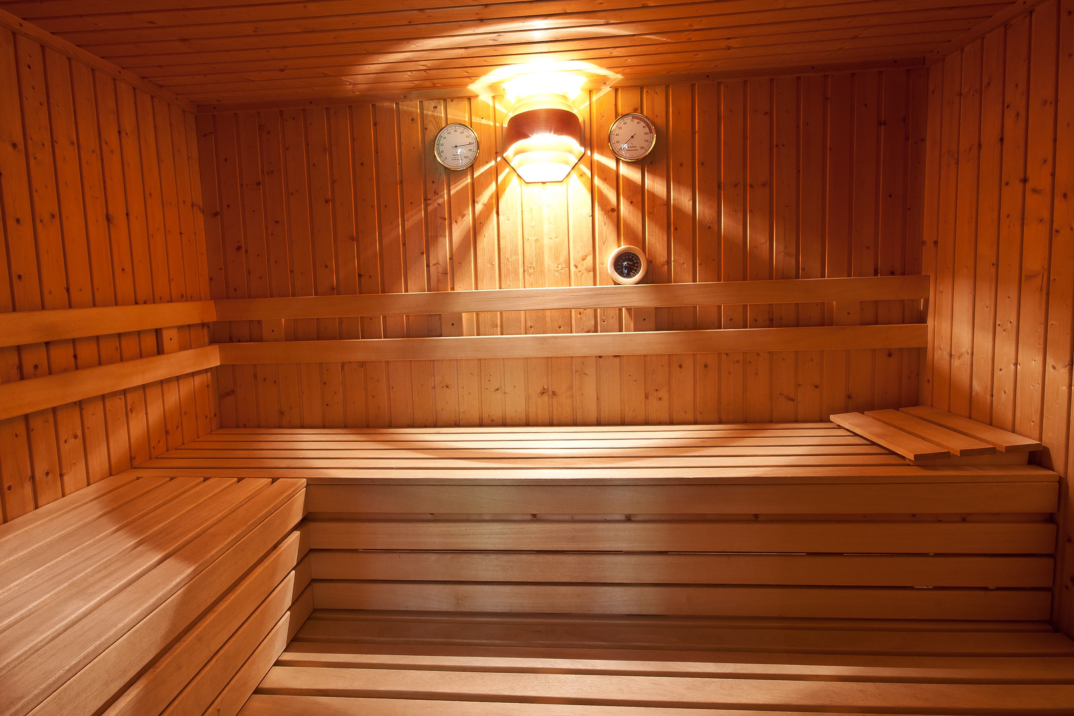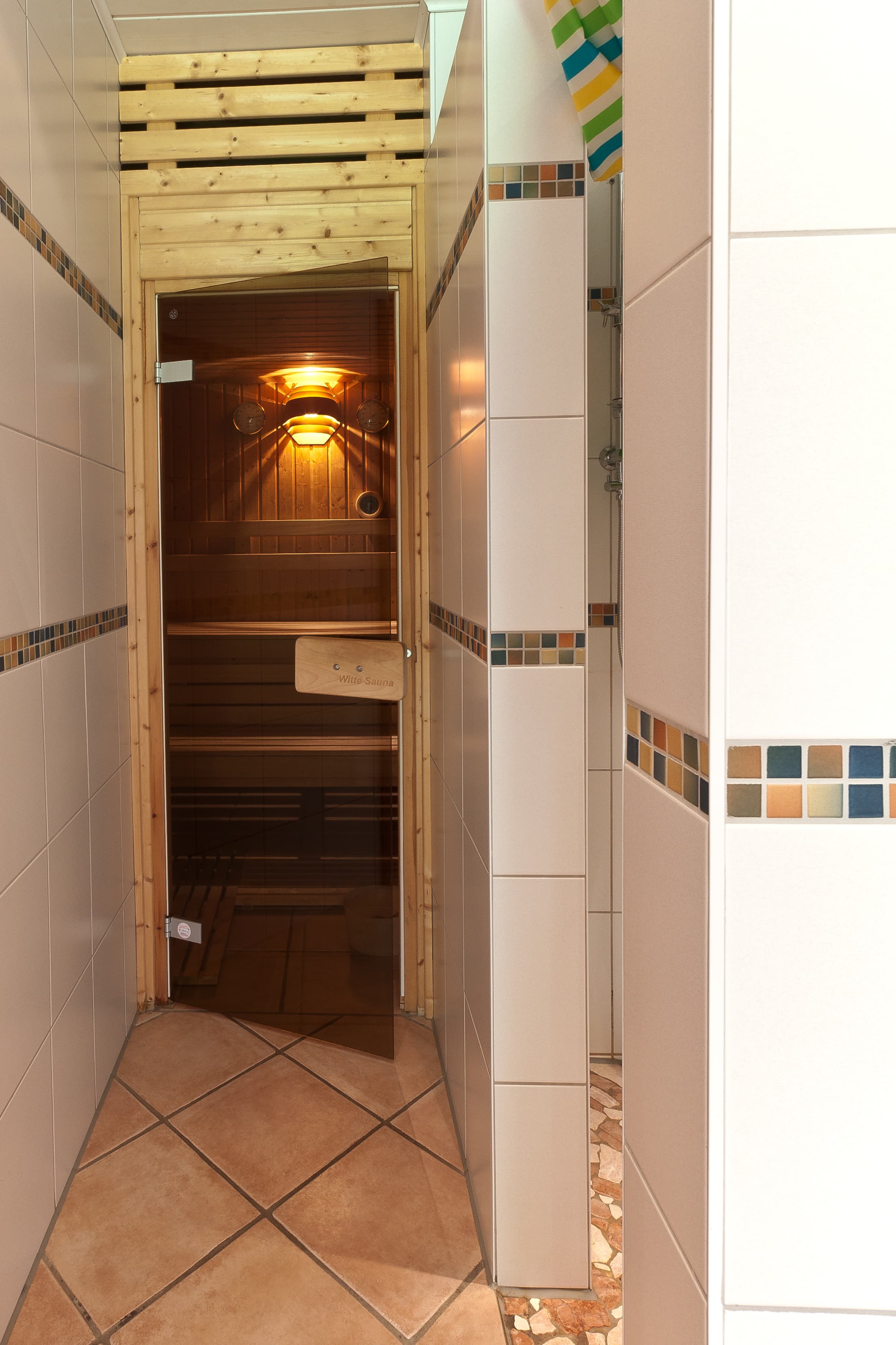 Bei schlechtem Wetter bietet die Sauna und Wellnessdusche Entspannung.