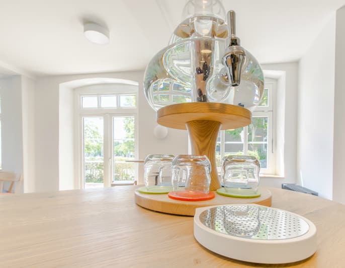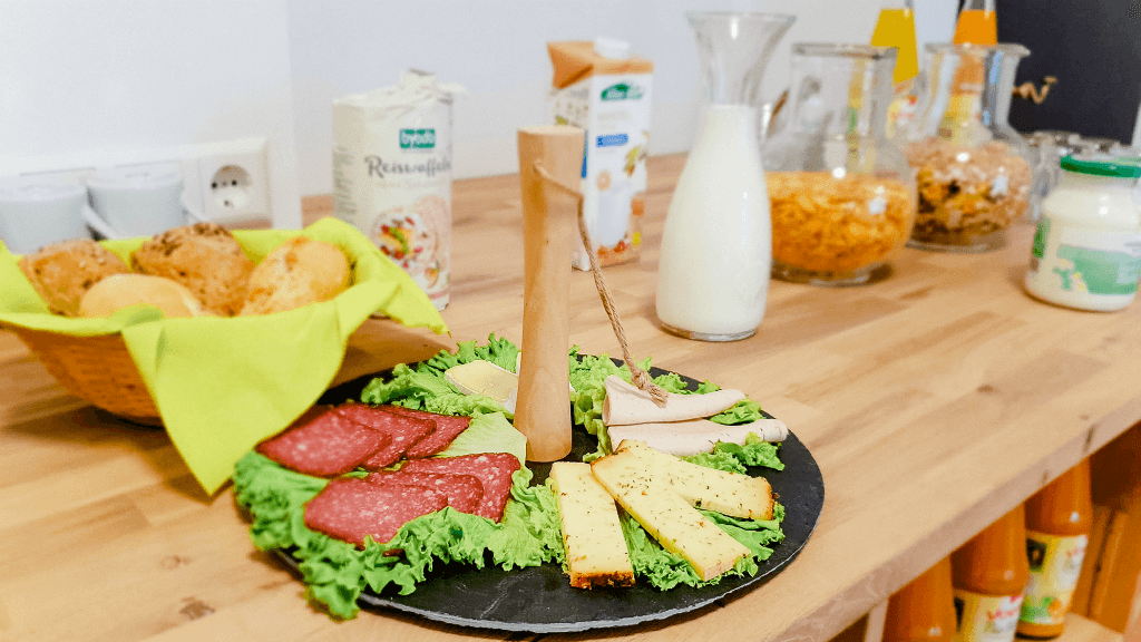 Aus Respekt vor dem Wert von Bio-Lebensmitteln wird auf das übliche „reichhaltige Frühstücksbuffet“ verzichtet. Stattdessen wird ein leckeres Frühstück, ausschließlich aus Bio-Zutaten freundlich am Platz serviert. Dieses garantiert einen guten Start in den Tag ohne Verschwendung von Nahrungsmitteln.