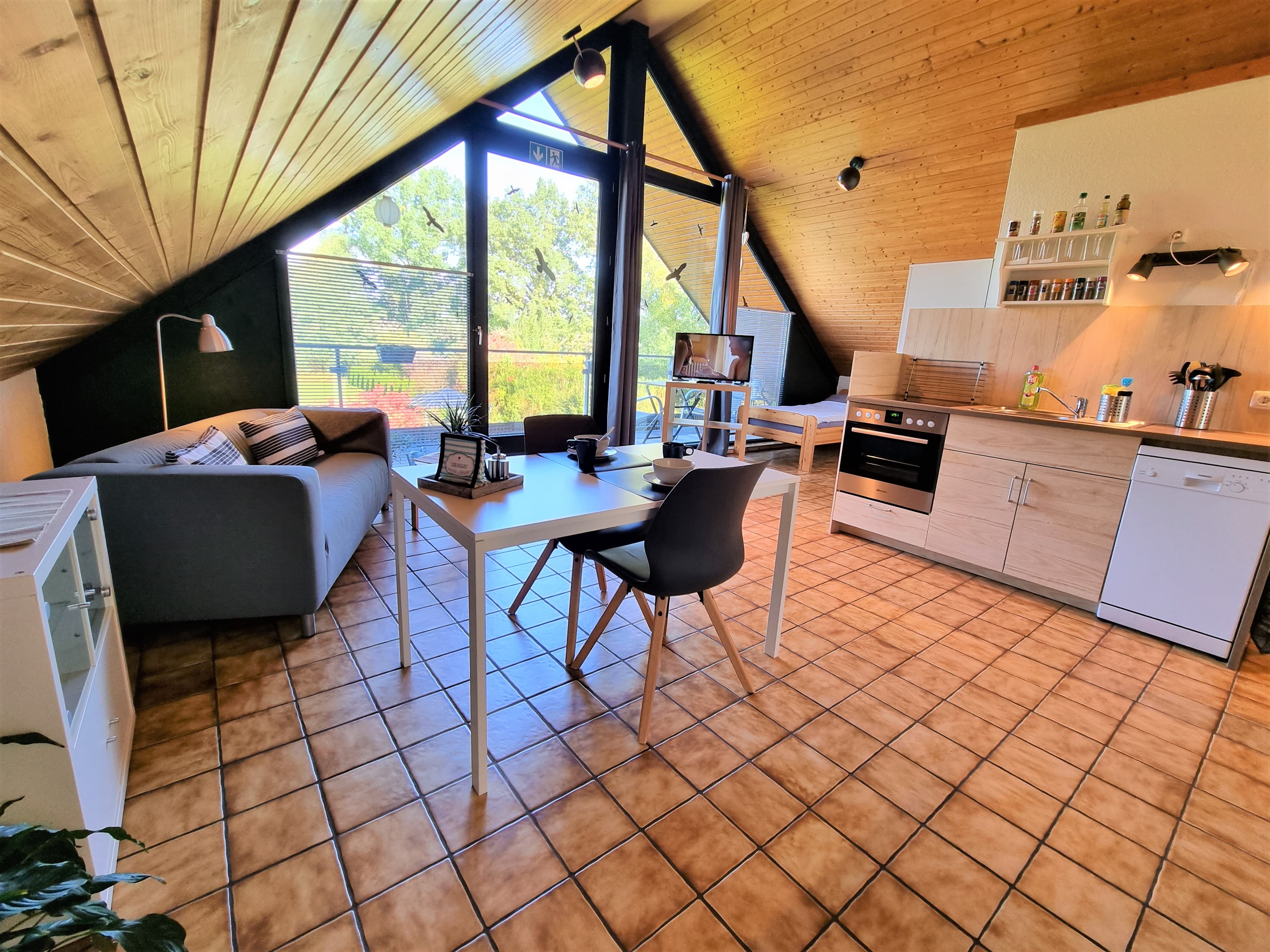Willkommen im DG-Appartement Gartenblick! Genießen Sie den Sommer in unserem modernen Appartement und erfreuen Sie sich an dem wunderschönen Blick vom Balkon in den großen Garten. Unser Appartement ist der perfekte Wohlfühlort für Ihren Urlaub.