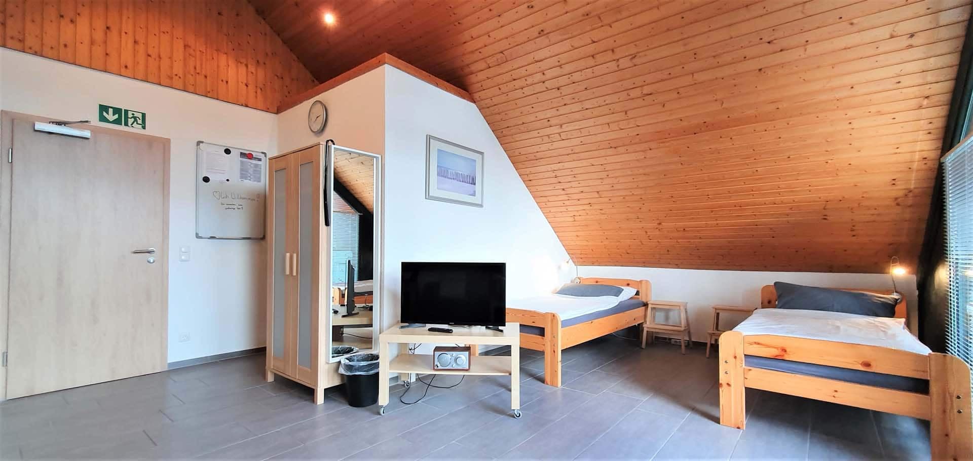 Schlafbereich befinden sich 2 Einzelbetten (90 x 200), Nachttisch und