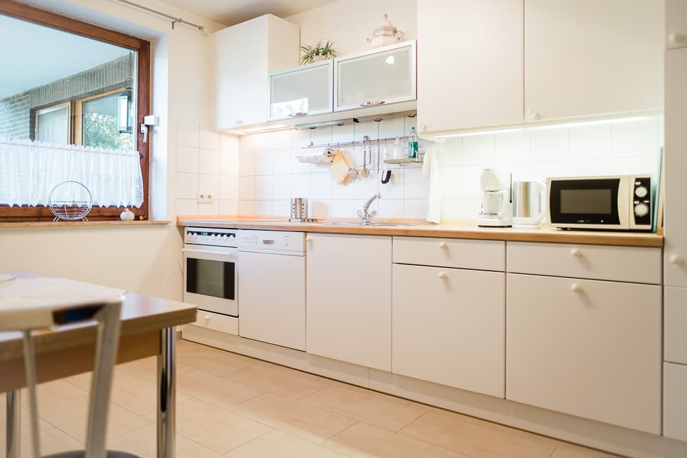 - komplett ausgestattete Küche mit Cerankochfeld, Backofen, Geschirrspülmaschine, Mikrowelle, Kühlschrank, Kaffeemaschine, Toaster, Eierkocher, Mixer und Wasserkocher
