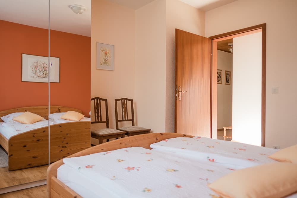 Die 65 qm große Wohnung bietet Platz für 2 - 4 Personen. Sie befindet sich im Erdgeschoss eines Einfamilienhauses mit separatem Eingang.