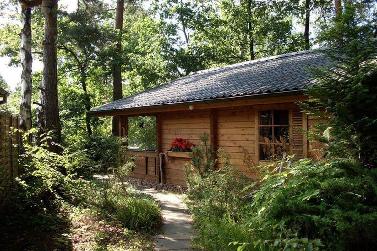 Gemütliches Holzhaus in bewaldeter Umgebung mit Garten und überdachter Veranda. Hier finden Sie Ruhe und Erholung in schöner Lage.