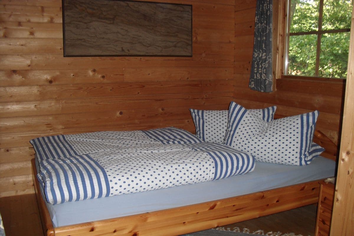 Gemütliches Holzhaus mit Wohnbereich und Küchenzeile, der Schlafraum ist durch einen Vorhang abzugrenzen. Ein komplett ausgestattetes Duschbad steht den Gästen im Haus zur Verfügung. Eine Veranda vor dem Häuschen lädt zum gemütlichen Verweilen ein.