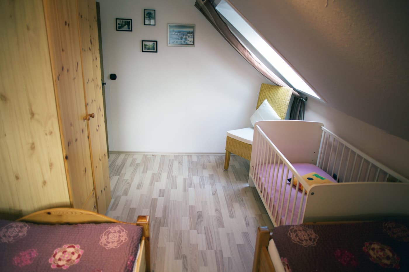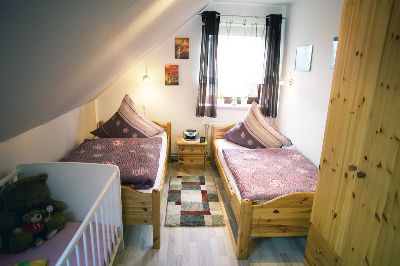 Neben einem Schlafzimmer mit Doppelbett, steht Ihnen ein weiteres Schlafzimmer mit 2 Einzelbetten sowie Kinderbett zur Verfügung.