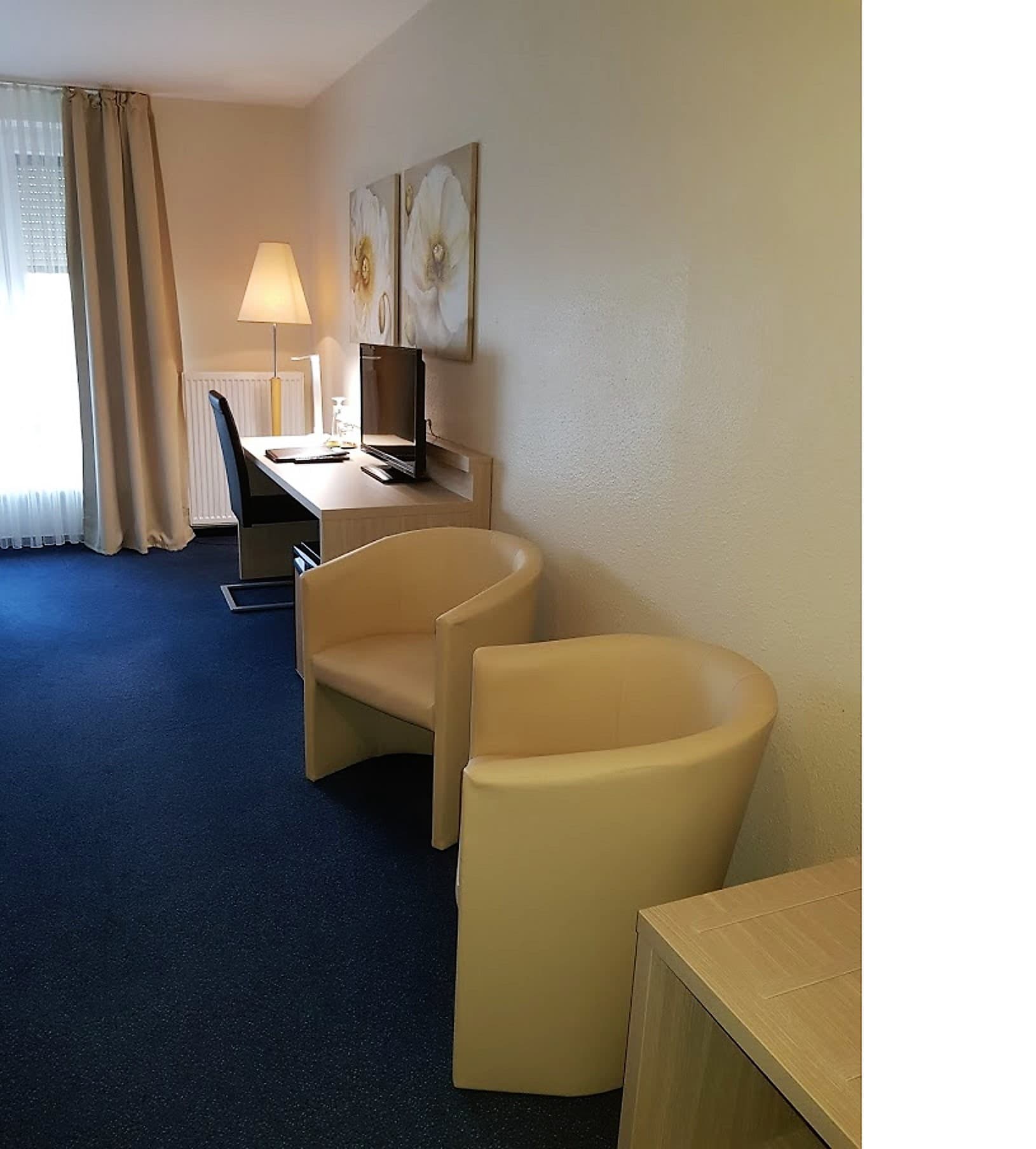Alle Zimmer sind mindestens 22 qm groß. Bad mit Dusche oder Badewanne, Föhn, WC, Kabel - TV, WLAN, Minibar, großes Frühstücksbüffet, kostenfreie Parkplätze.