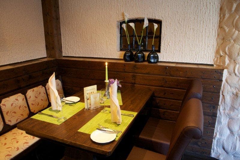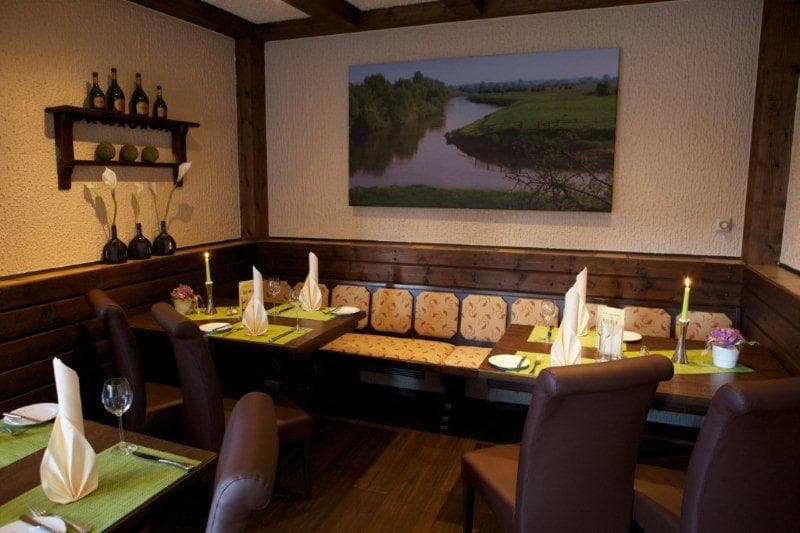 Stilvoll eingerichtetes italienisches Restaurant La Fontana mit Biergarten.