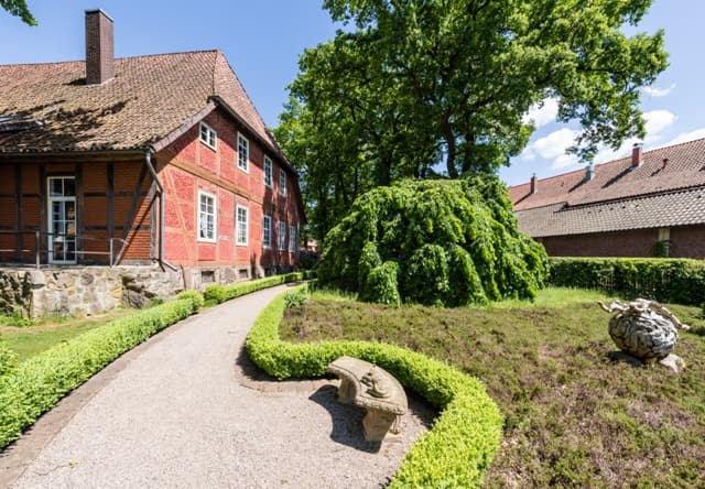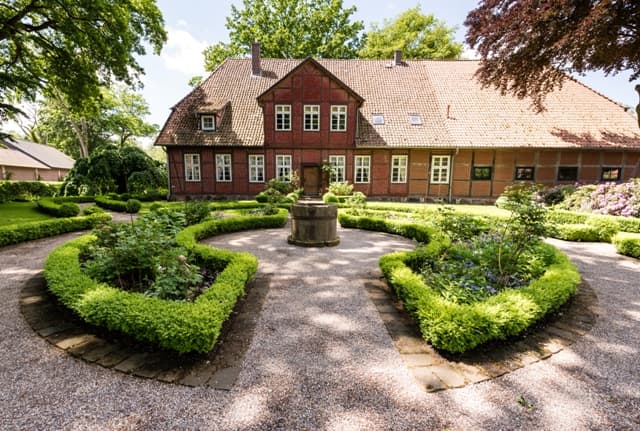 Der Hofherr persönlich nimmt Sie mit auf eine Reise in die Geschichte seiner Familie. Erstmals 1420 erwähnt, ist der Hof bis heute im Familienbesitz. Auch die Wasser- und Sägemühle gehörte dazu. Ziel dieser Führung ist es, ein Gefühl für das damalige Leben des „Müllern Herrn“ und seiner Familie zu bekommen. Lassen Sie sich von Karsten Springhorn architektonische Details an den Gebäuden zeigen, die den Charme der damaligen Zeit widerspiegeln. Auf dem Rundgang erfahren Sie Wissenswertes über das alte Wohnwirtschaftsgebäude, einem Vierständerbau aus dem Jahre 1809, die „ole“ Schün, die Schmiede, den Bauerngarten und die beeindruckende Empfangshalle des Haupthauses.