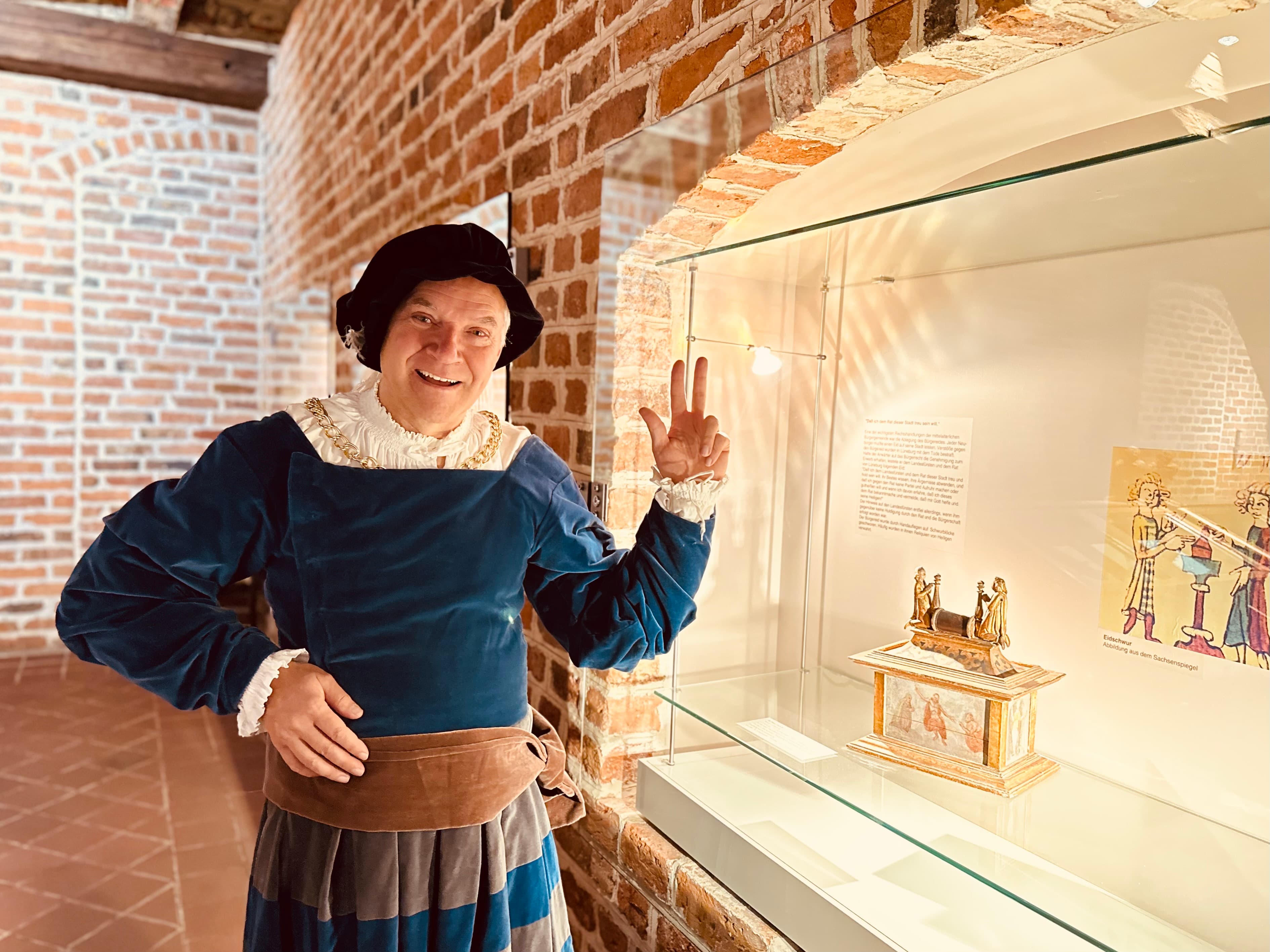 Nicht nur Geschichtsbücher berichten von diesem Umbruch, sondern auch die damalige Mode, Speis und Trank und anderes Alltägliches. Die Figur des Bürgermeister Witzendorff erzählt anschaulich aus diesen spannenden Jahren, erläutert die prunkvollen Stücke des Ratssilbers und die Vorteile des Hanse-Bündnis für Lüneburg. Erfahren Sie von den Krisen und Chancen, den Ängsten und Freuden der Lüneburger*innen und tauchen ein in diese Zeit des Auf- und Umbruchs.