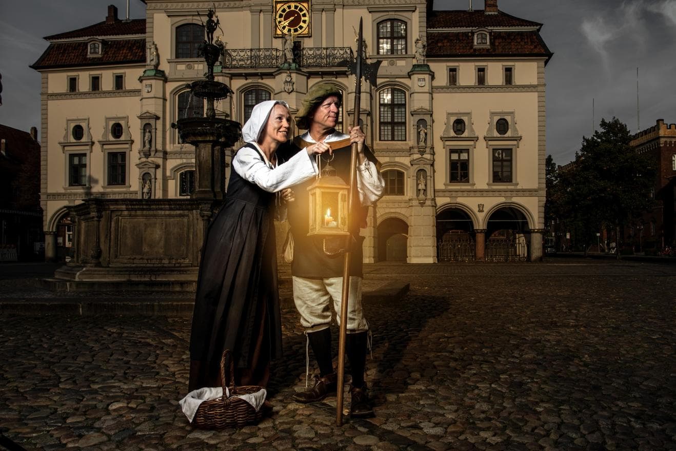 Ausgehend vom Marktplatz geht es mit dem Nachtwächter Claas voran ins alte Hafenviertel Lüneburgs.